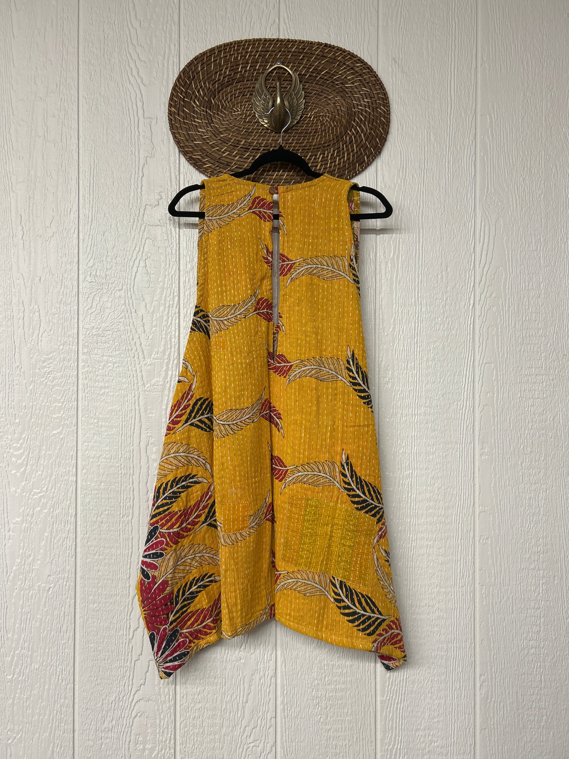 Our harmony mini dress is made from our vintage kantha stitched cotton sari.
