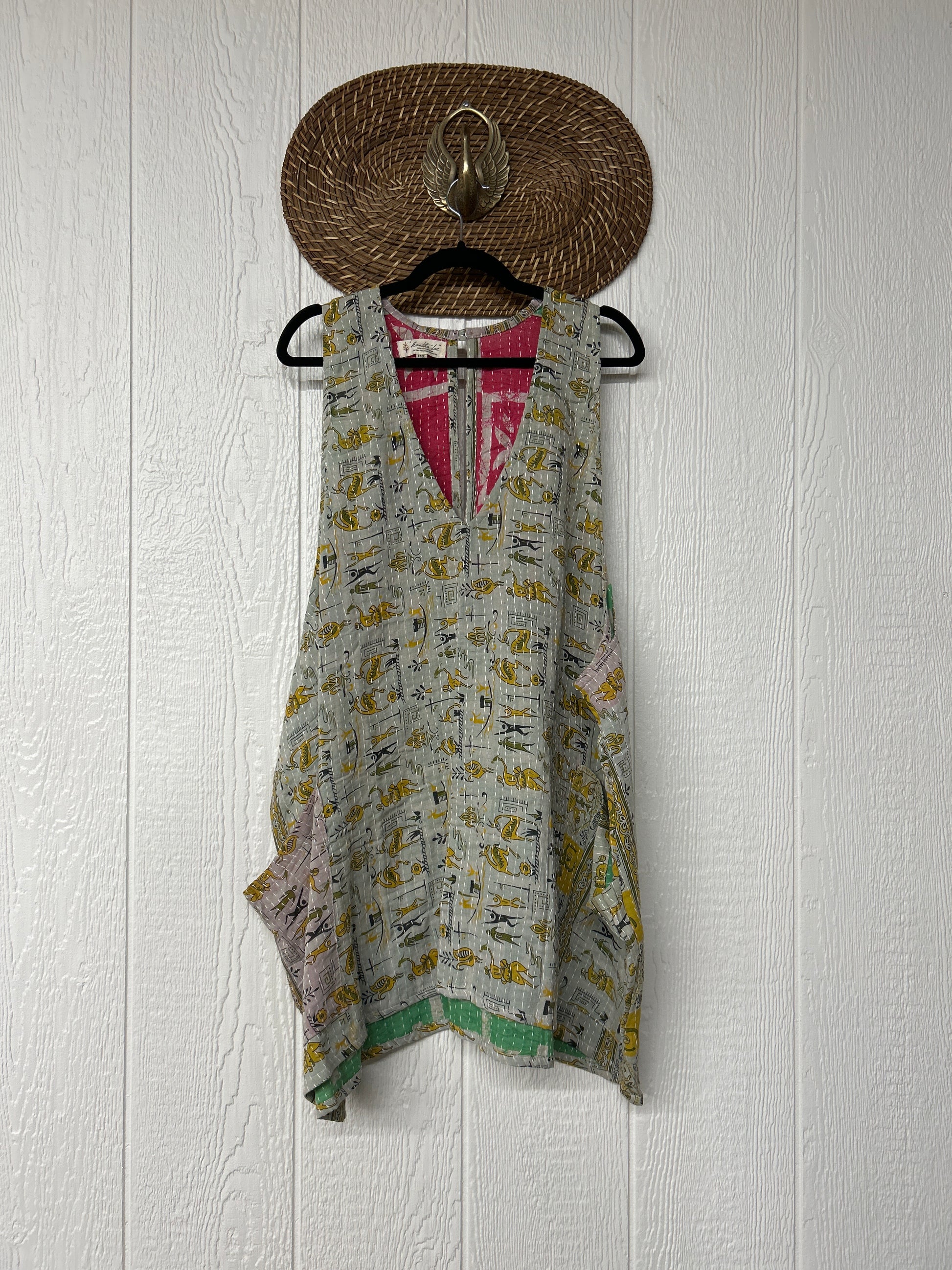 Our harmony mini dress is made from our vintage kantha stitched cotton sari.