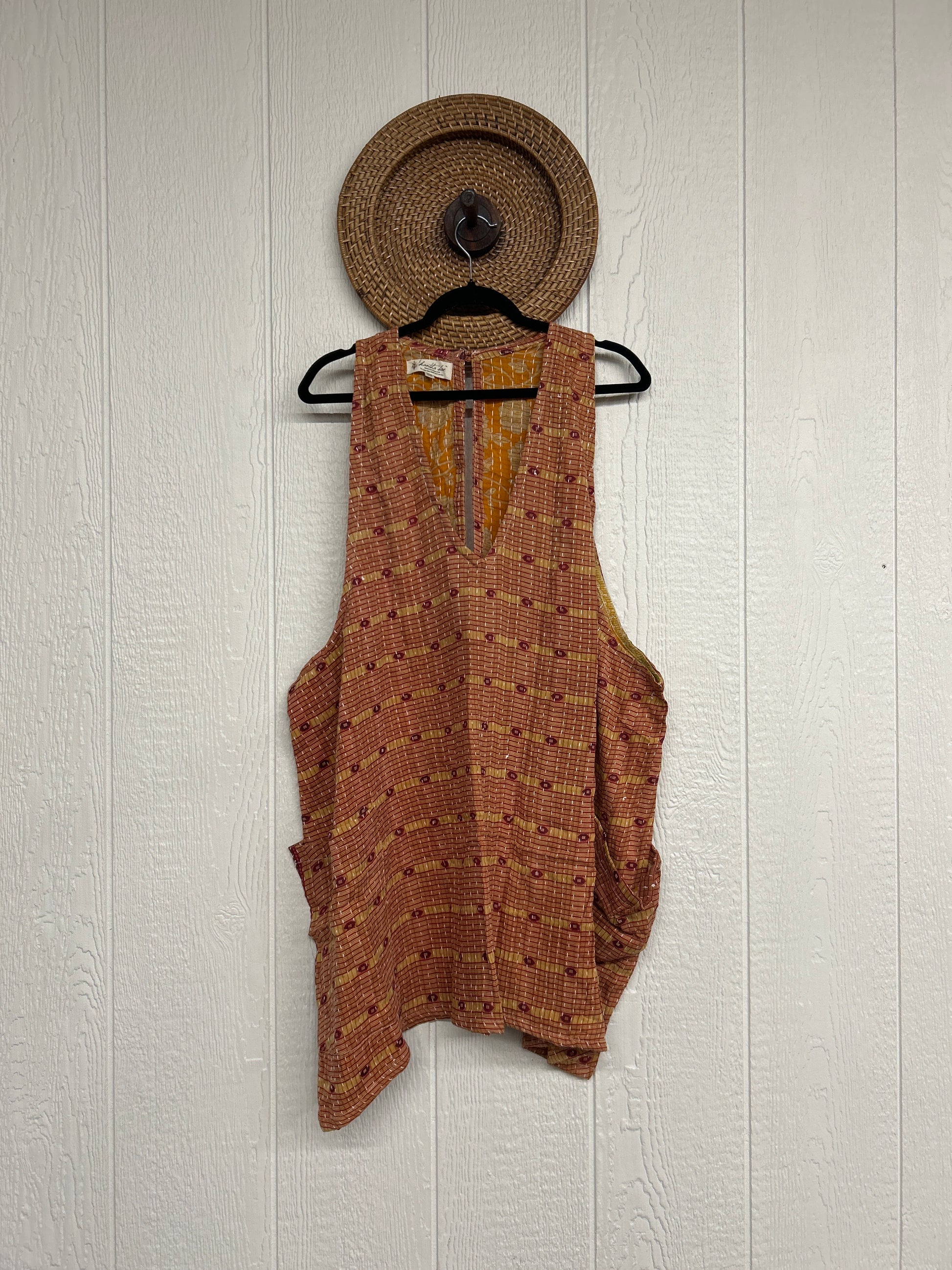 Disclosure: Our vintage styles have lived a full life before becoming the designs in our shop. Fabrics may have small threads or holes in the layers. Color inconsistency or small stains may be present. The saris are sewn together and extend the life of each design. Imperfections should be celebrated.