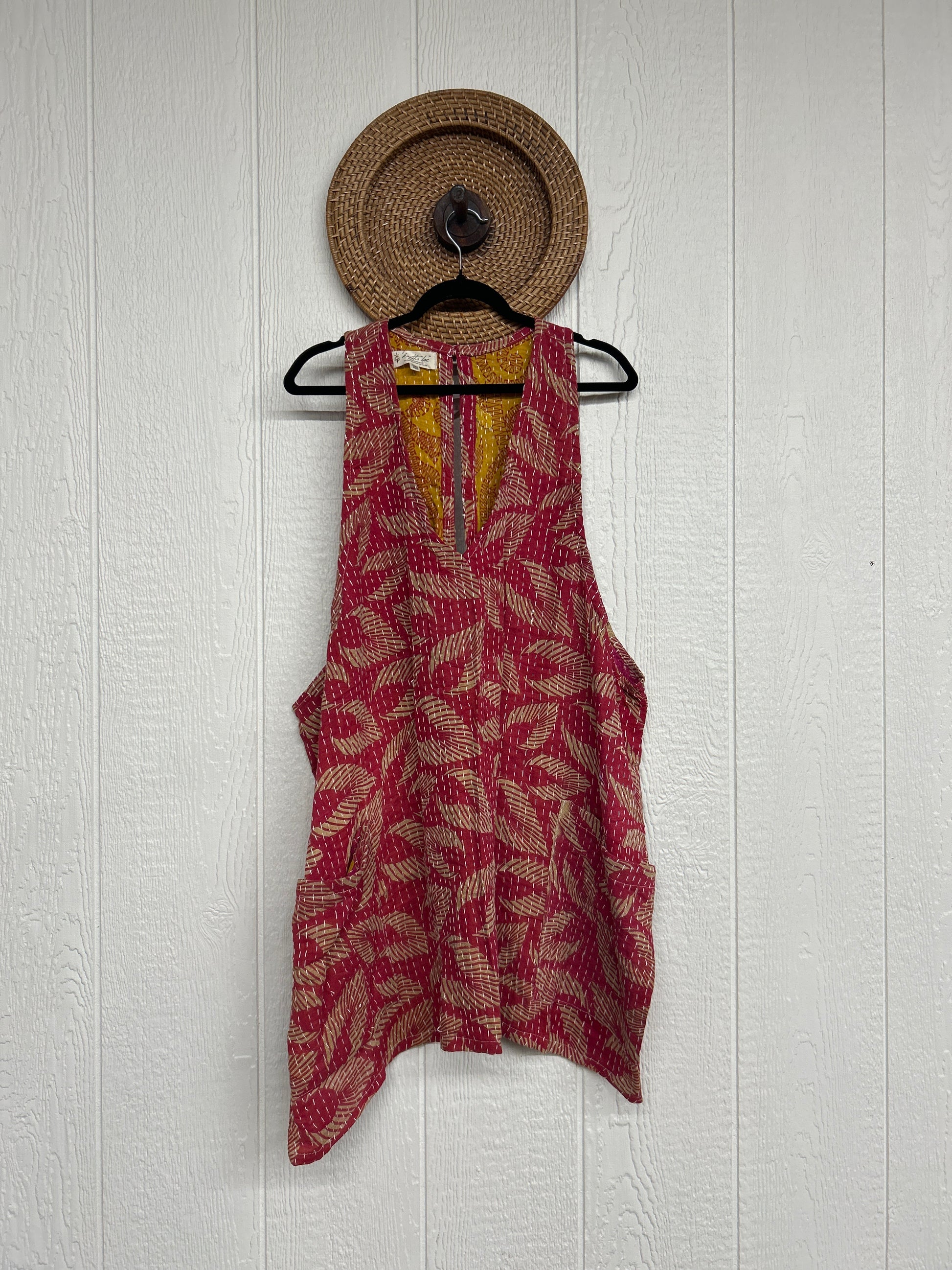 Our harmony mini dress is made from our vintage kantha stitched cotton sari.