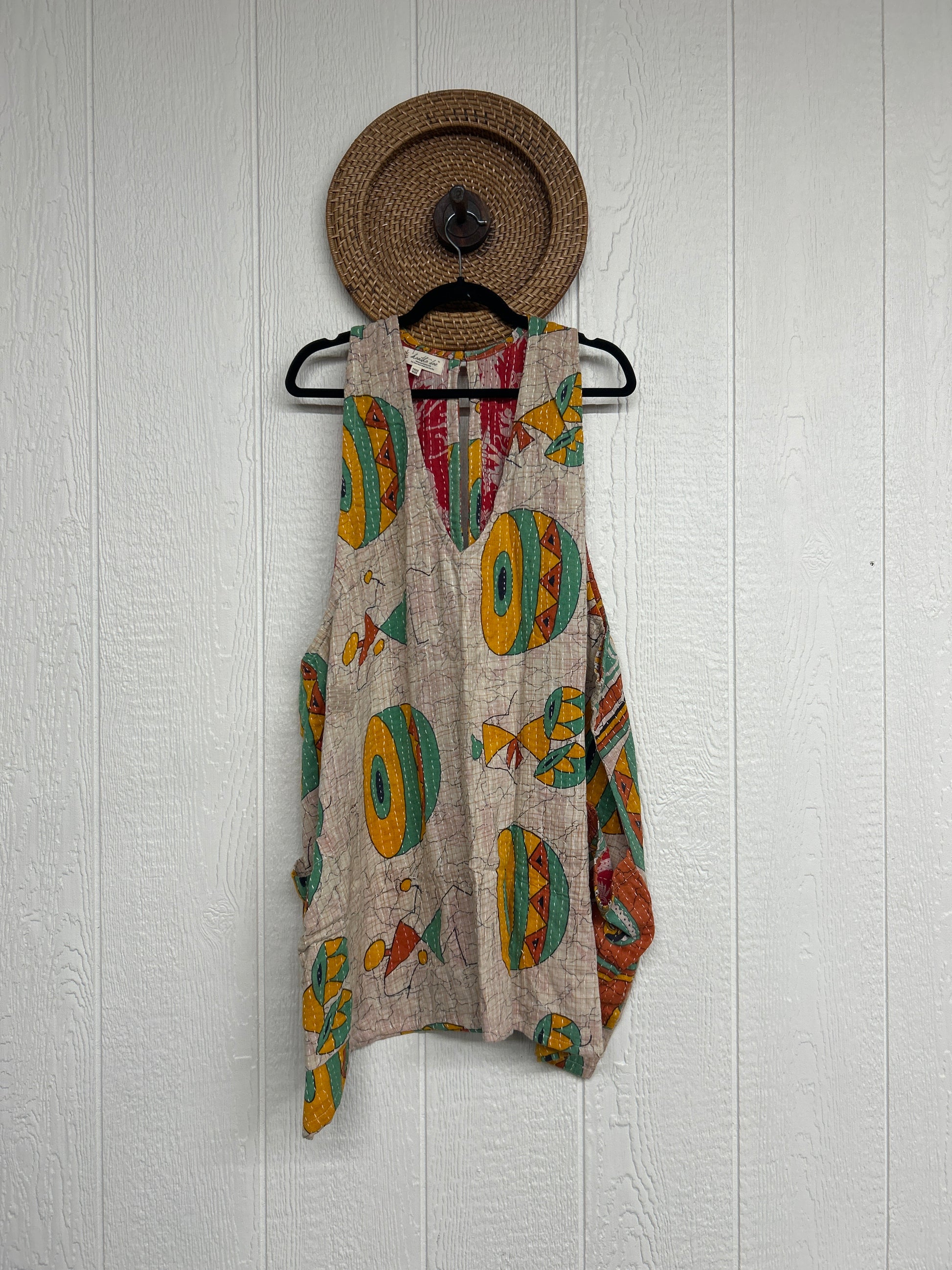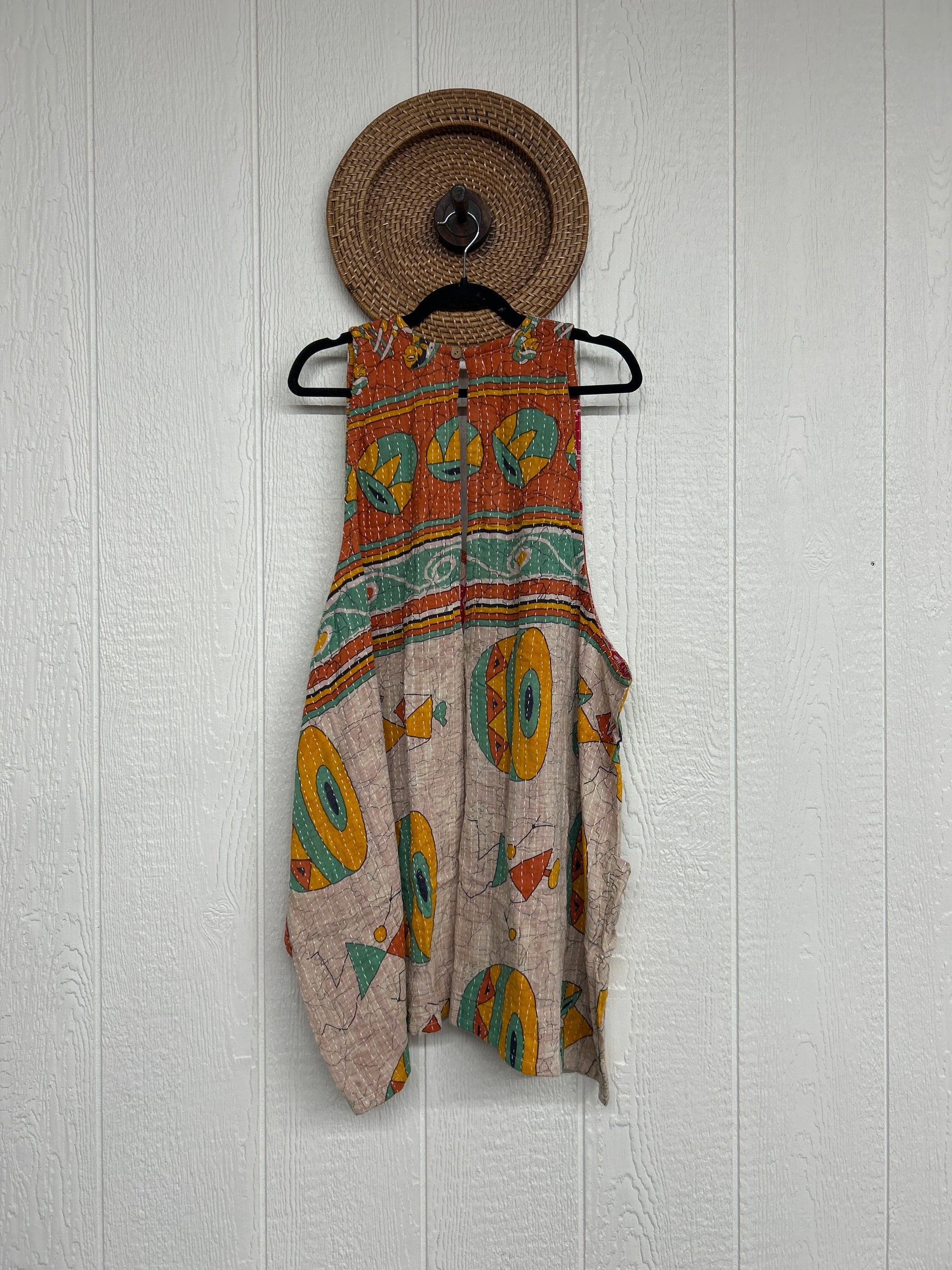 Our harmony mini dress is made from our vintage kantha stitched cotton sari.