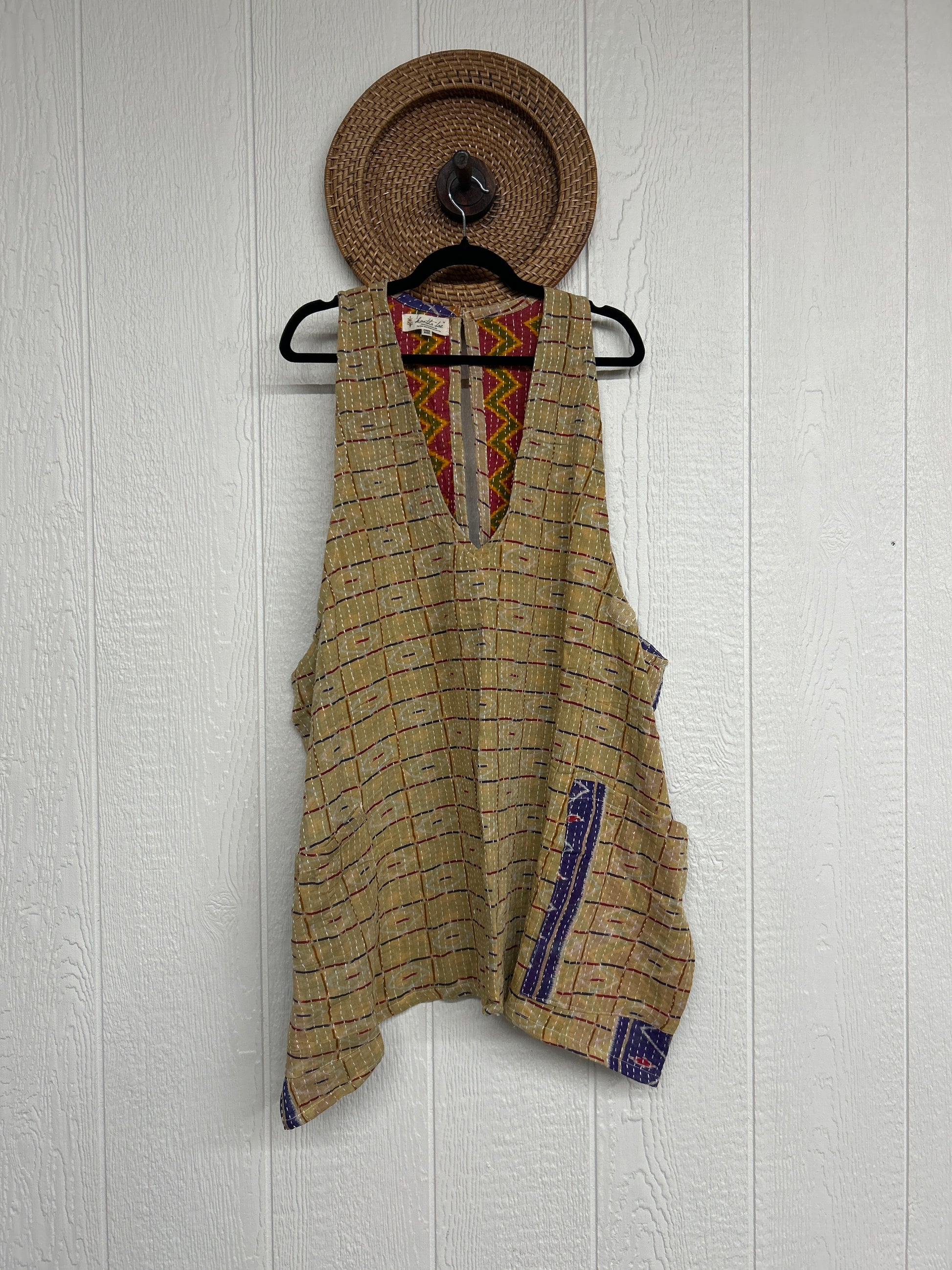 Disclosure: Our vintage styles have lived a full life before becoming the designs in our shop. Fabrics may have small threads or holes in the layers. Color inconsistency or small stains may be present. The saris are sewn together and extend the life of each design. Imperfections should be celebrated.