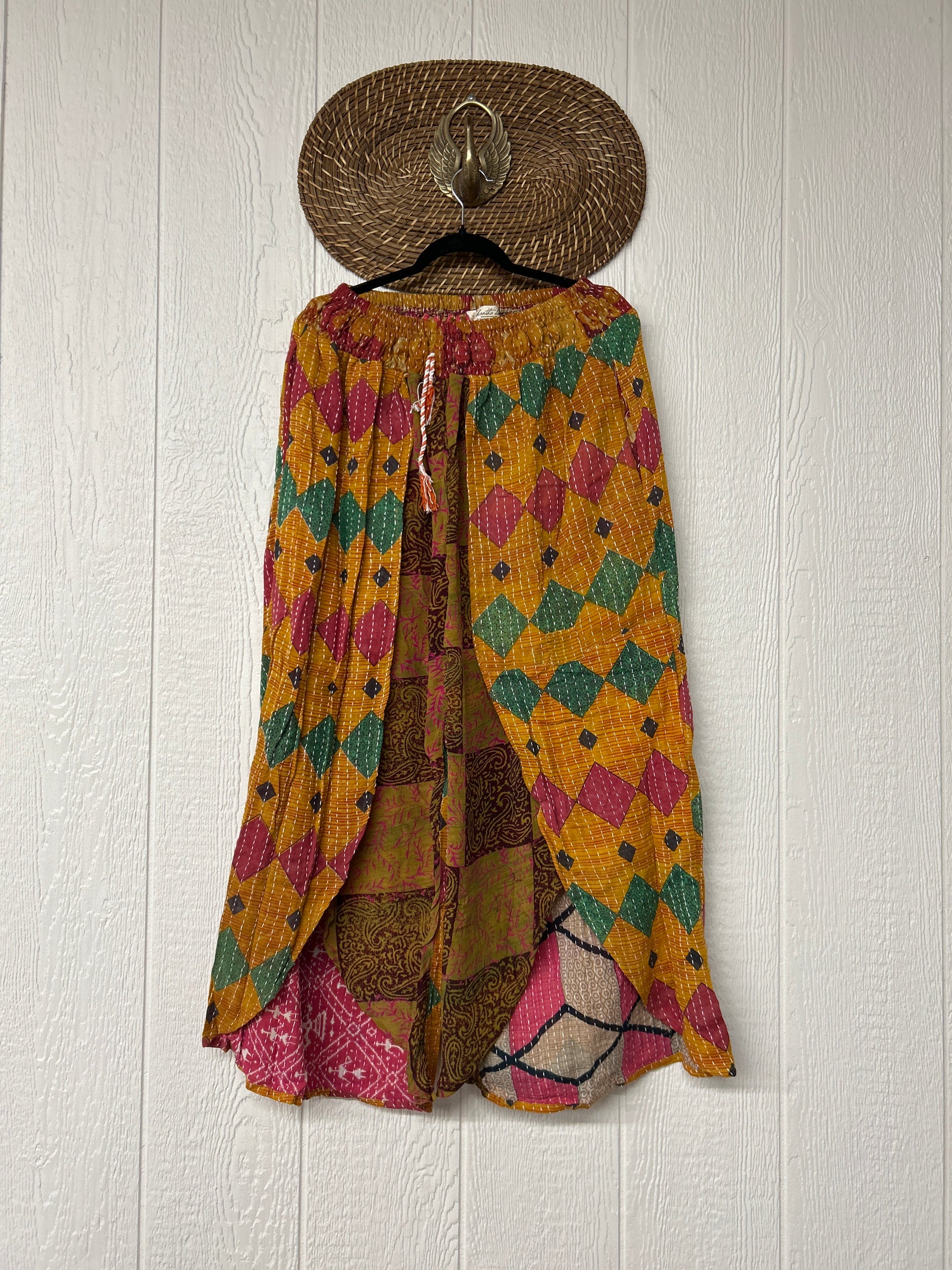 Crafted from our lux kantha stitched vintage cotton sari these dream pants feature a split tulip leg with a crepe silk inner panel, interior pockets & stretchy waistband with a drawstring.