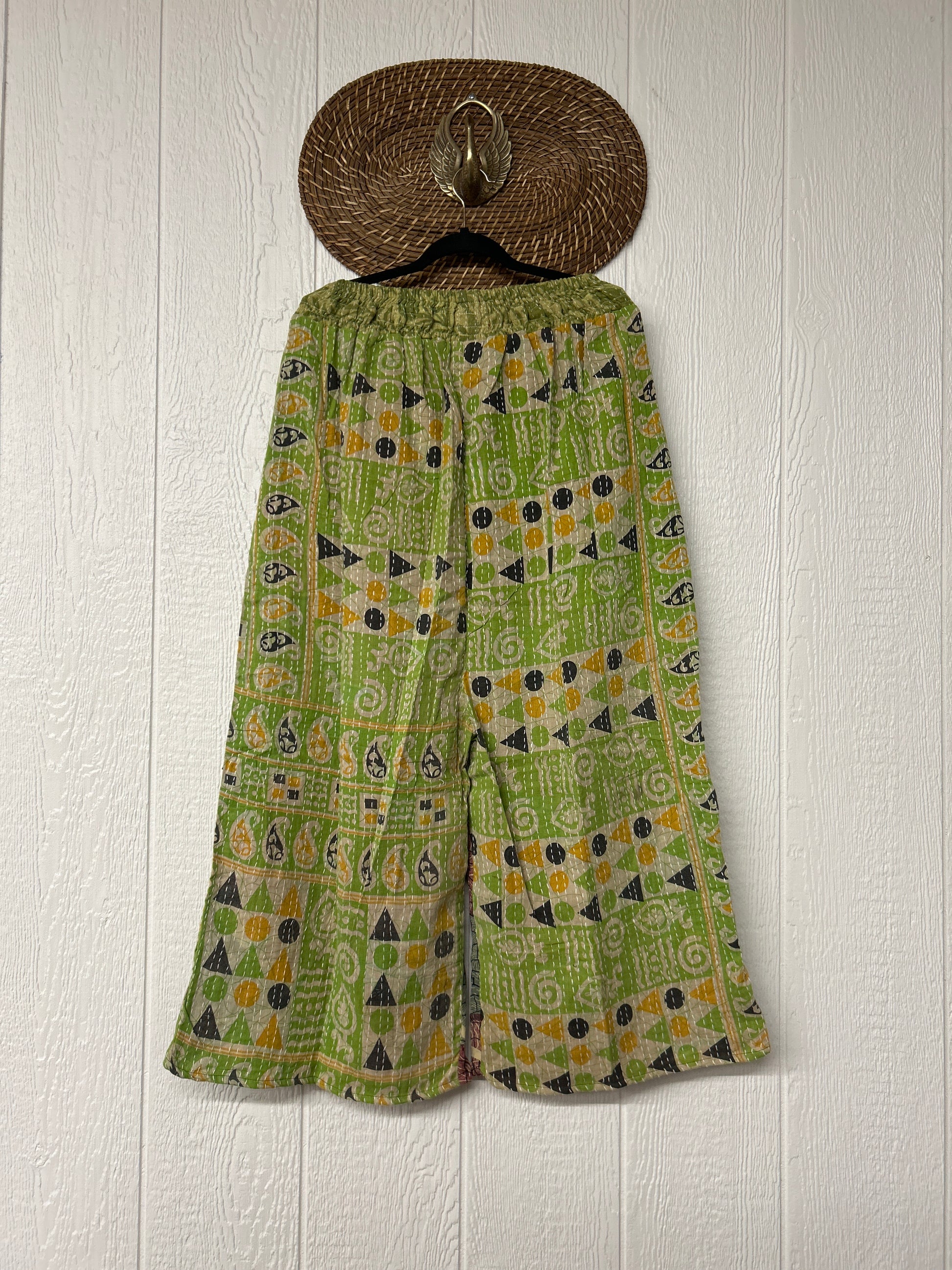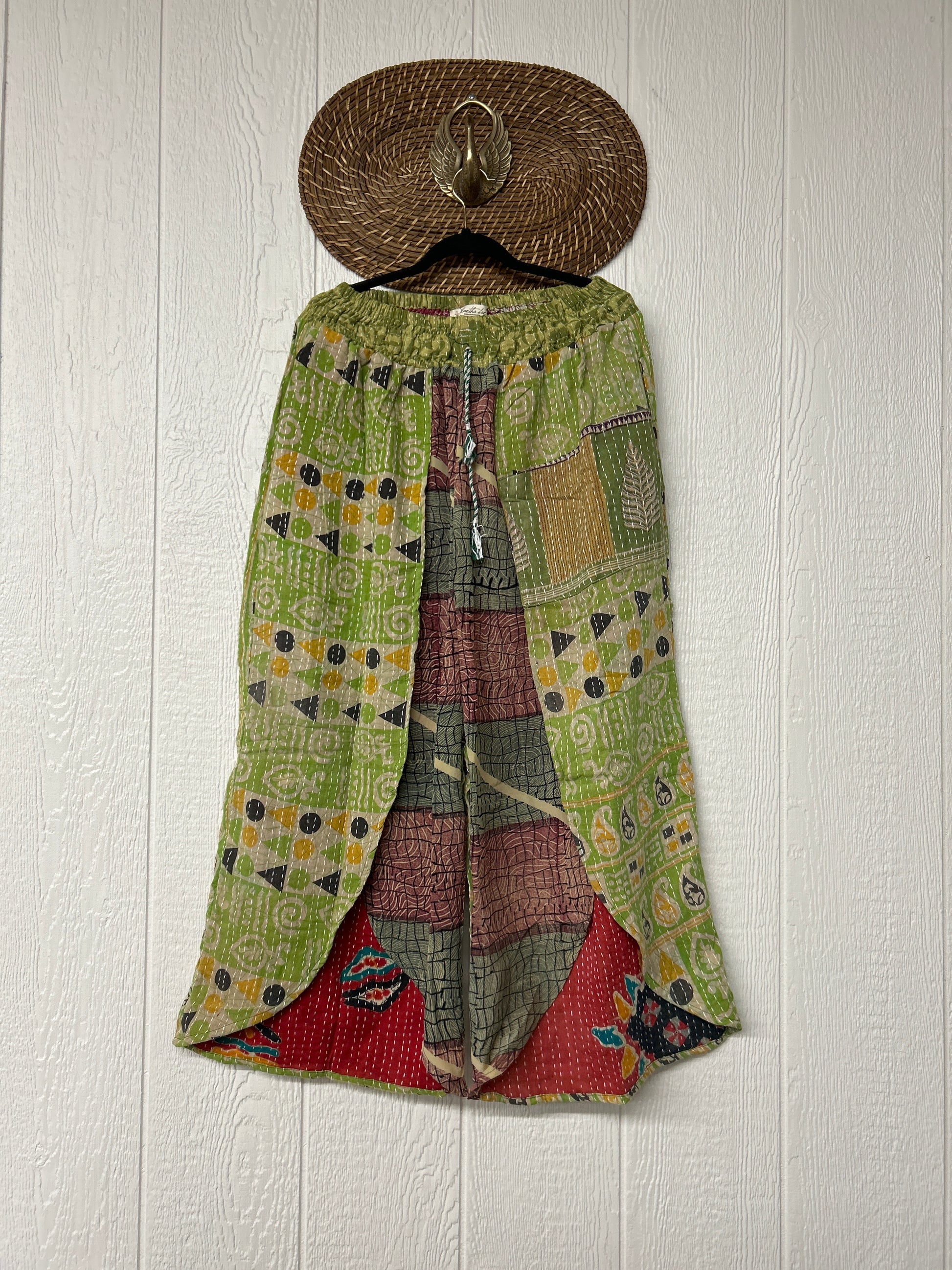 Crafted from our lux kantha stitched vintage cotton sari these dream pants feature a split tulip leg with a crepe silk inner panel, interior pockets & stretchy waistband with a drawstring.