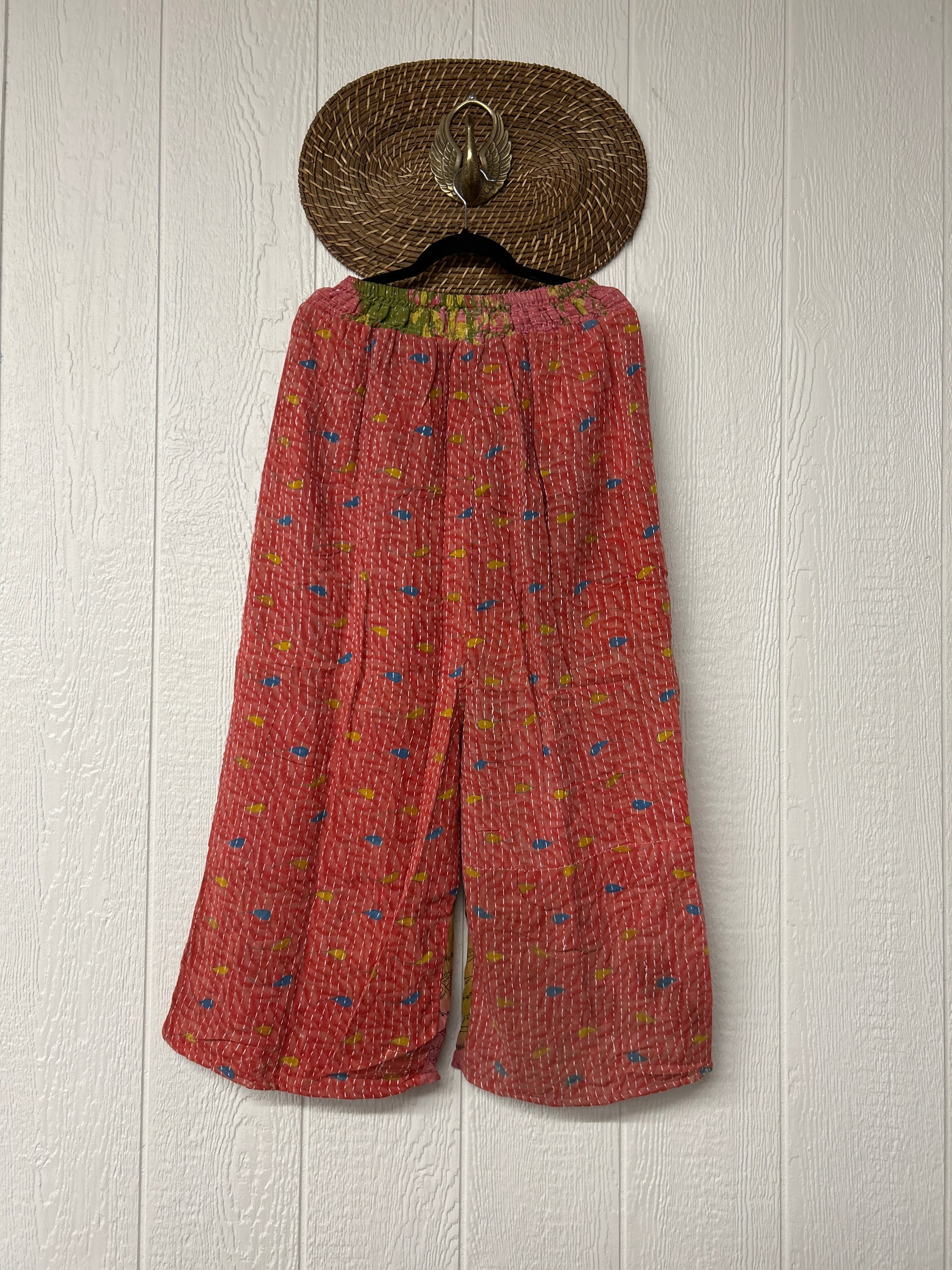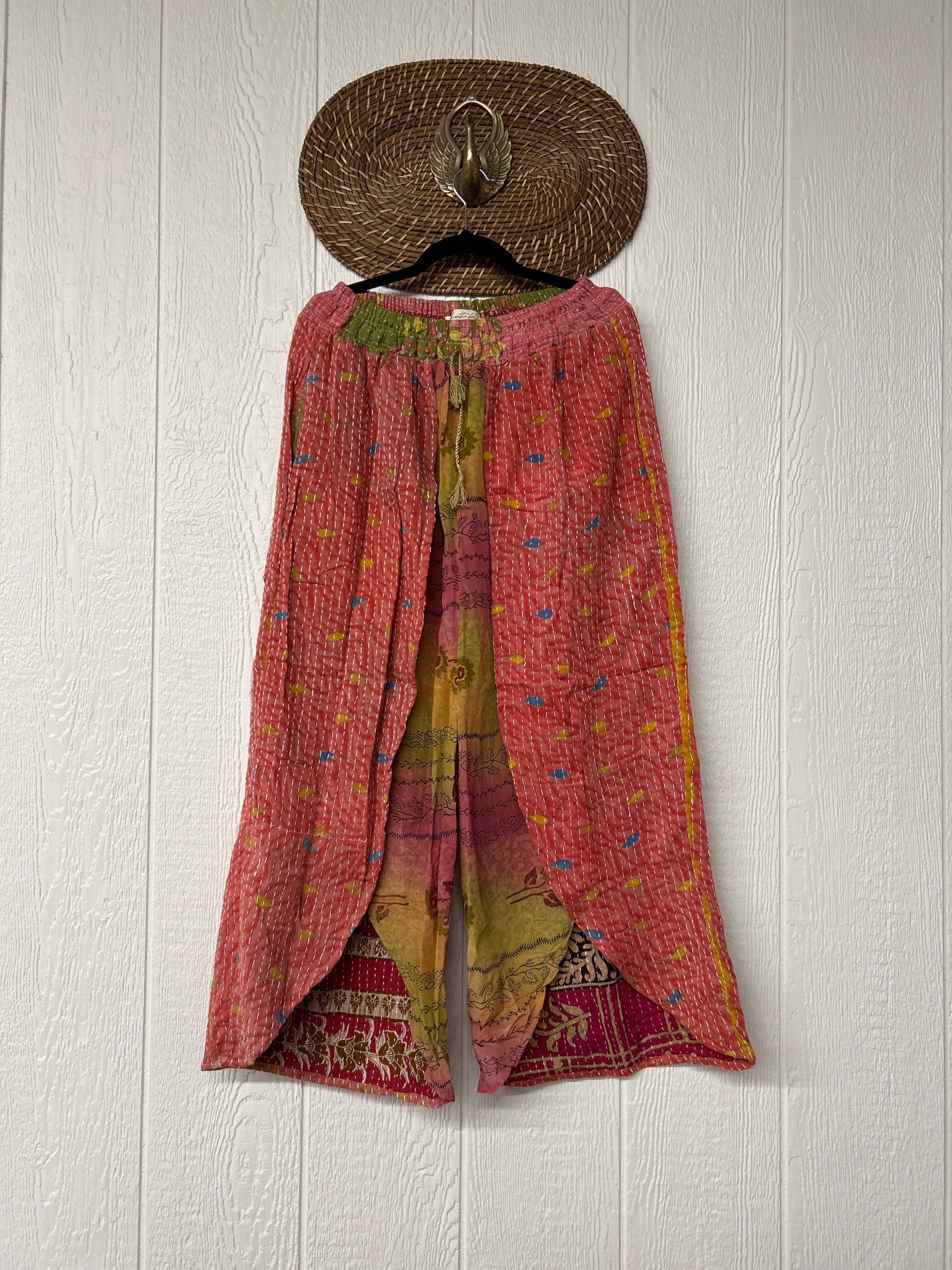 Crafted from our lux kantha stitched vintage cotton sari these dream pants feature a split tulip leg with a crepe silk inner panel, interior pockets & stretchy waistband with a drawstring.