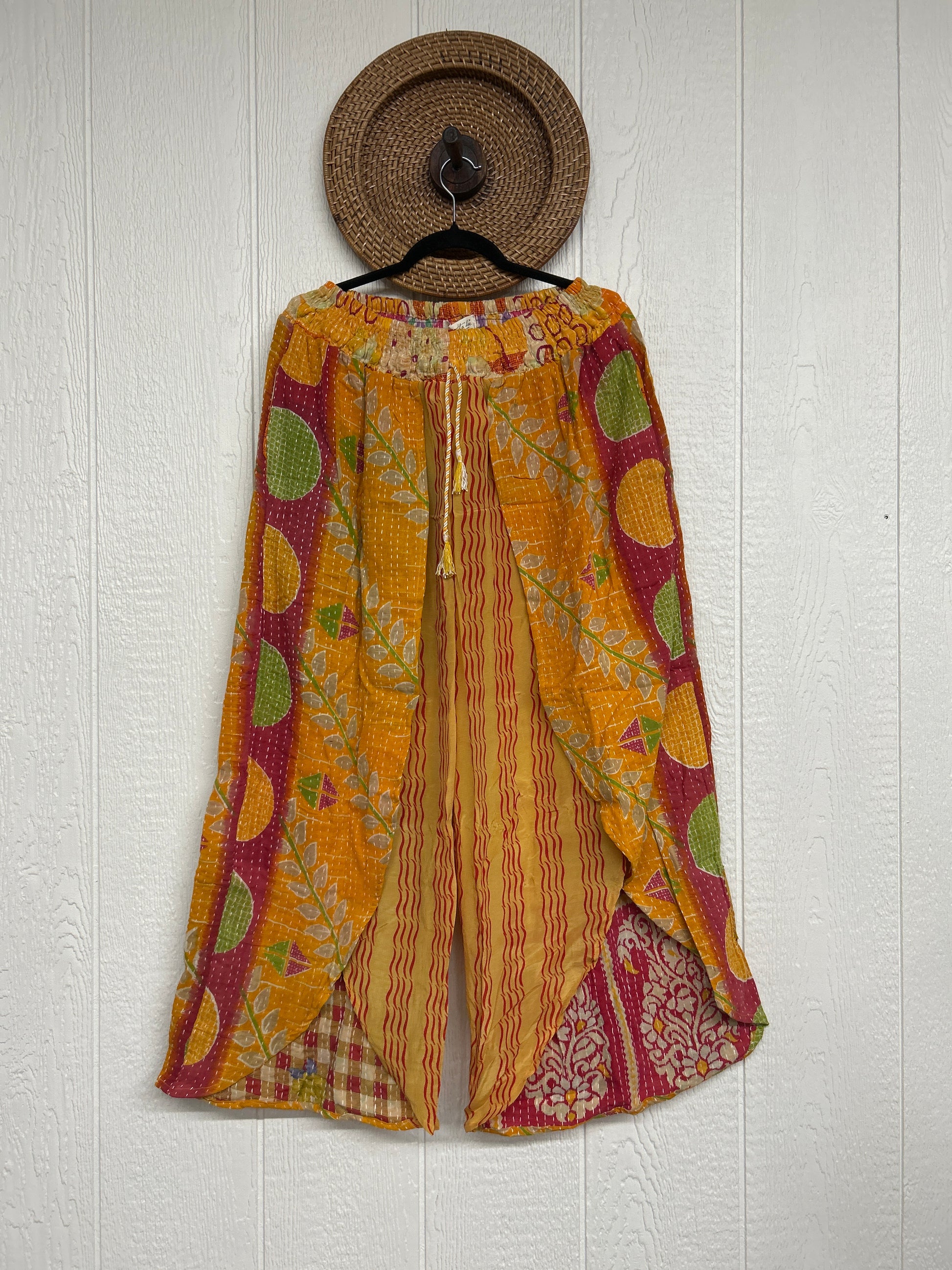 Crafted from our lux kantha stitched vintage cotton sari these dream pants feature a split tulip leg with a crepe silk inner panel, interior pockets & stretchy waistband with a drawstring.