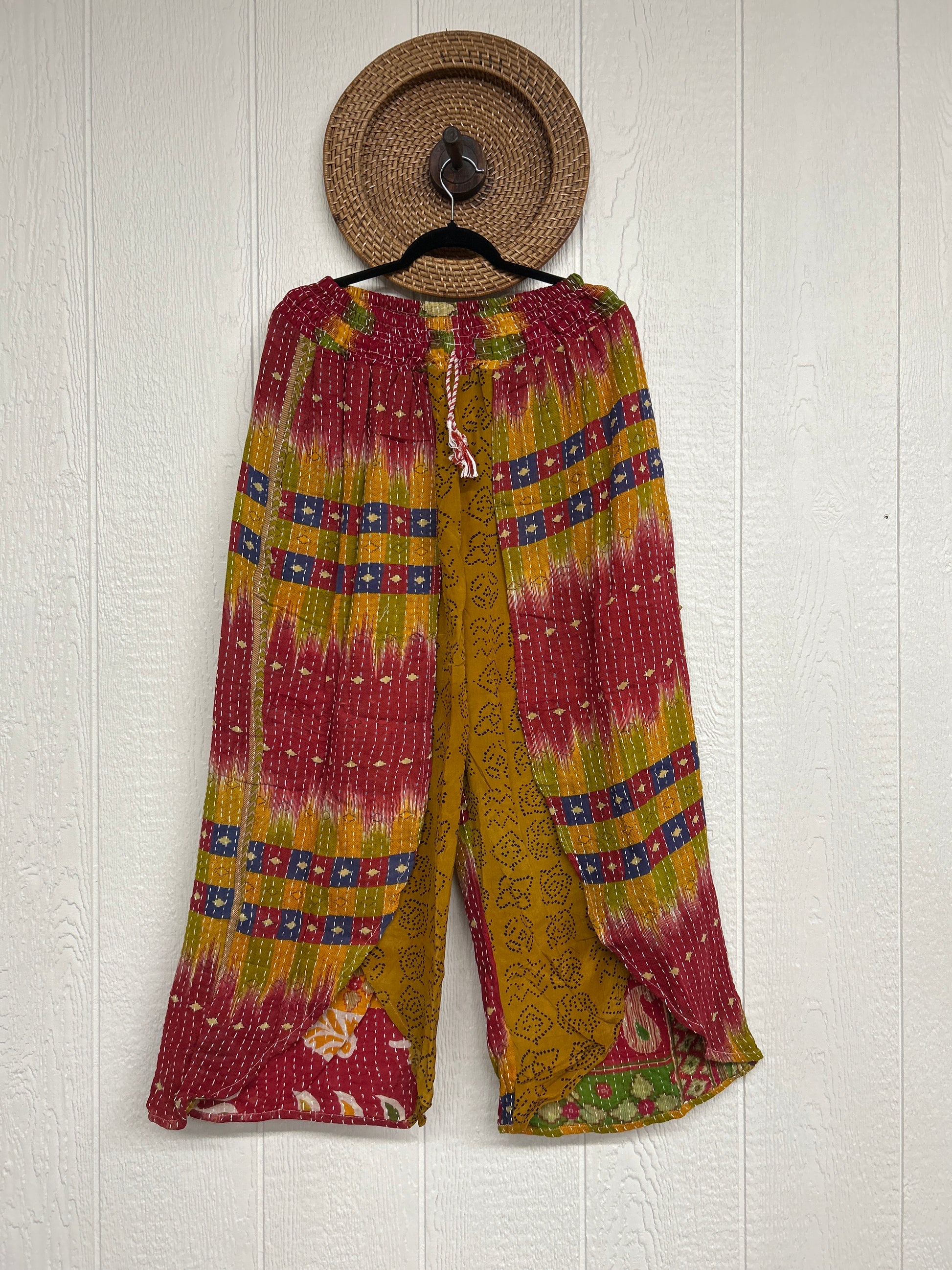 Crafted from our lux kantha stitched vintage cotton sari these dream pants feature a split tulip leg with a crepe silk inner panel, interior pockets & stretchy waistband with a drawstring.