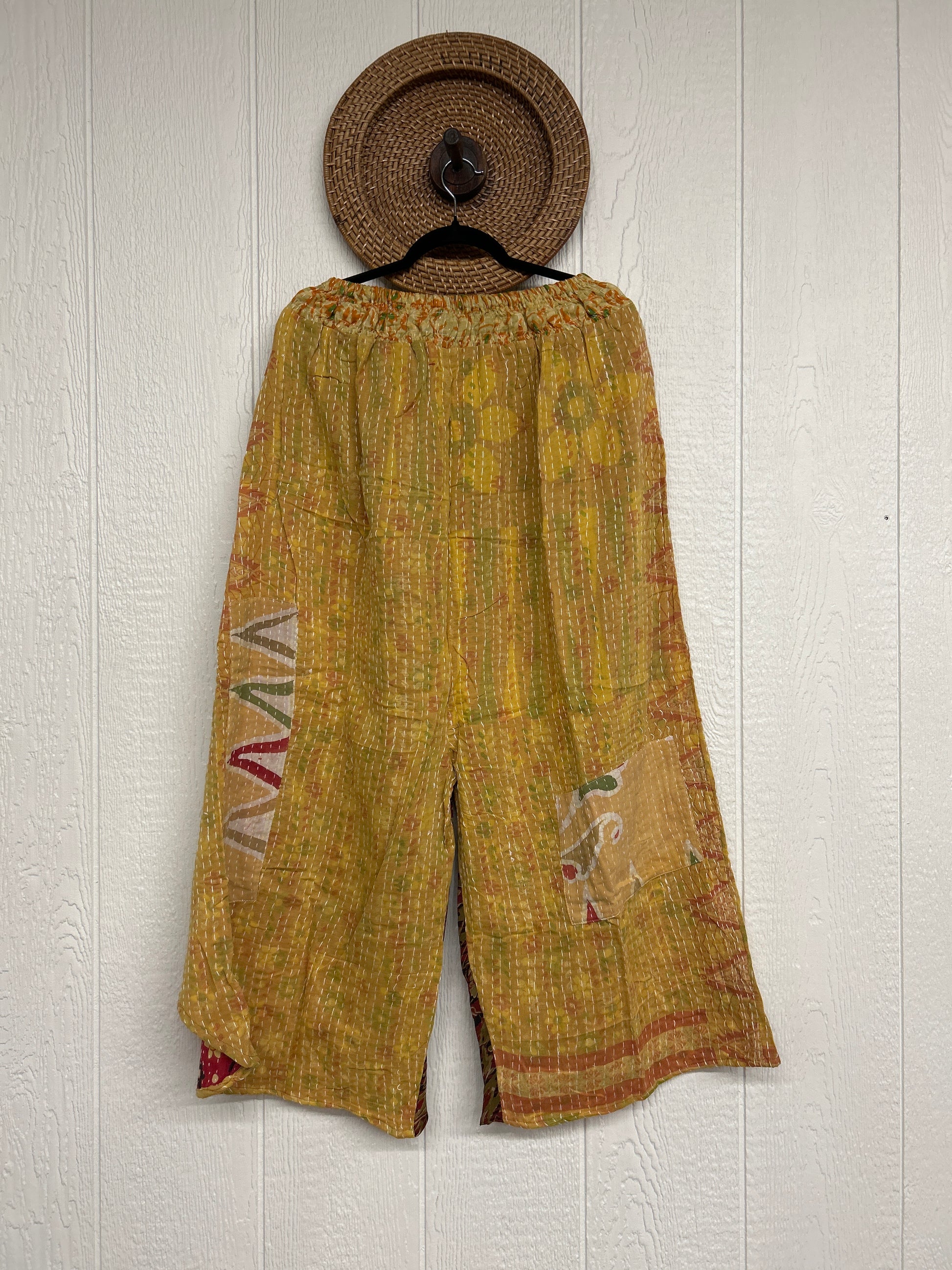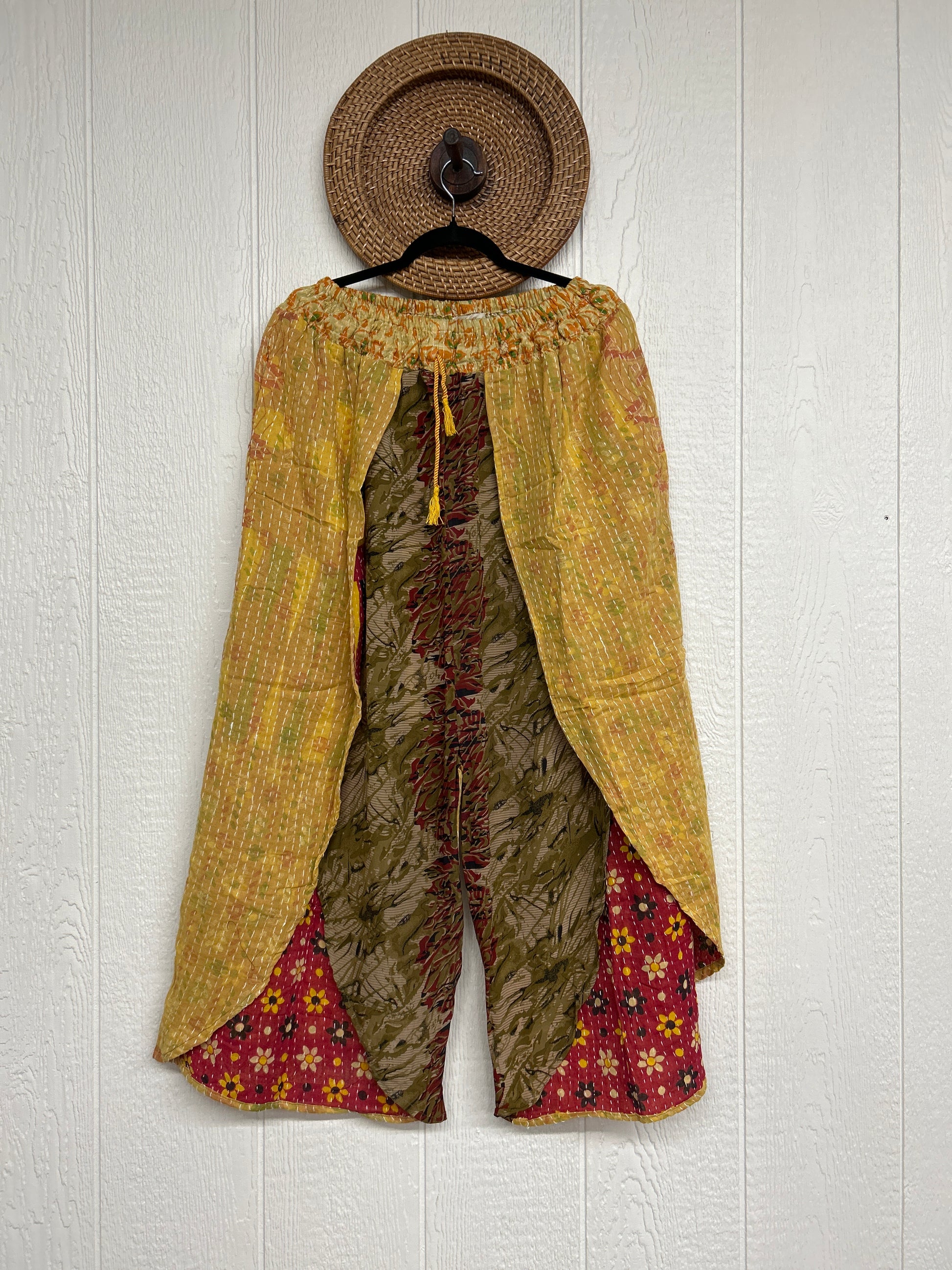 Crafted from our lux kantha stitched vintage cotton sari these dream pants feature a split tulip leg with a crepe silk inner panel, interior pockets & stretchy waistband with a drawstring.