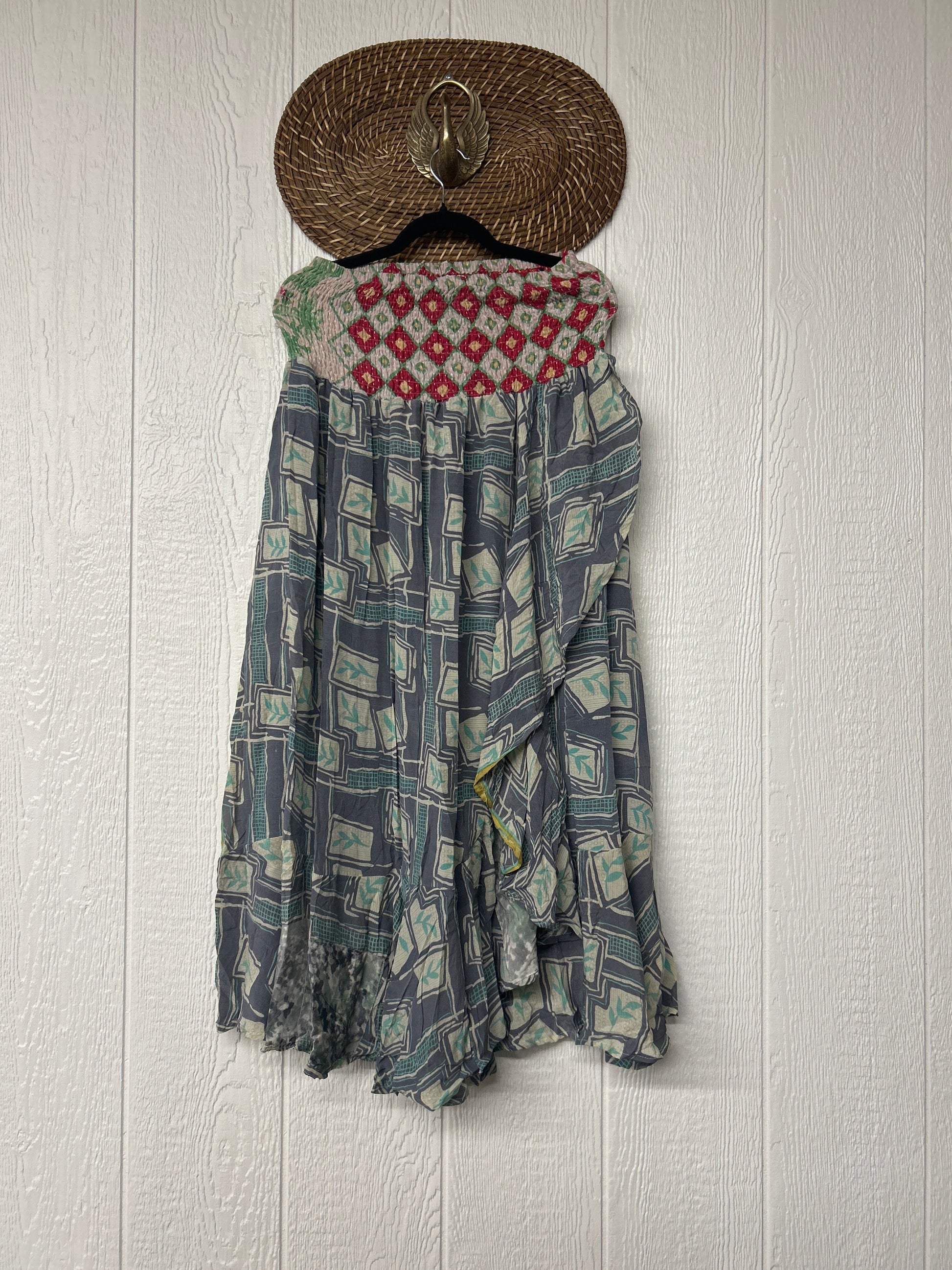 Disclosure: Our vintage styles have lived a full life before becoming the designs in our shop. Fabrics may have small threads or holes in the layers. Color inconsistency or small stains may be present. The saris are sewn together and extend the life of each design. Imperfections should be celebrated