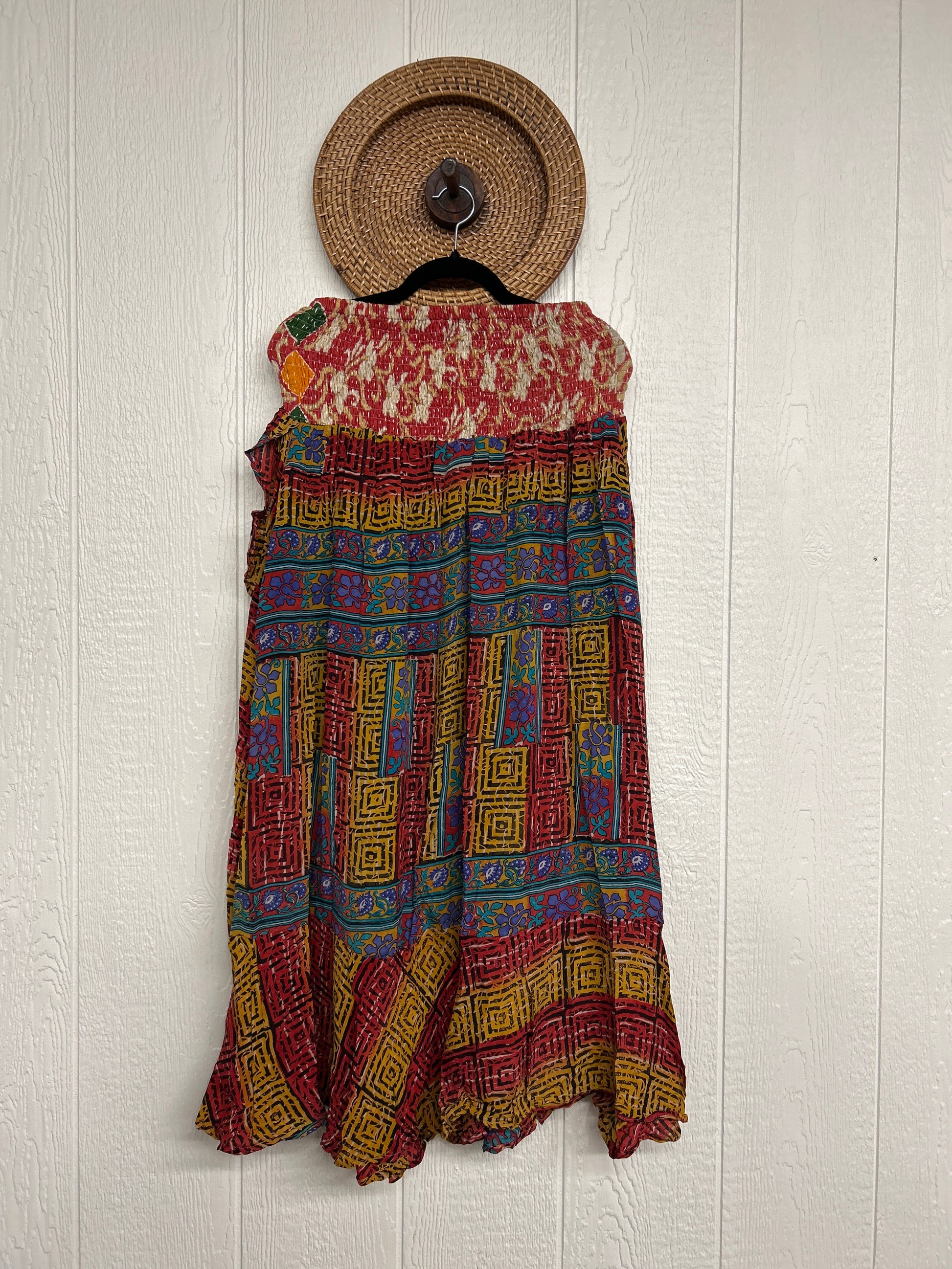 Disclosure: Our vintage styles have lived a full life before becoming the designs in our shop. Fabrics may have small threads or holes in the layers. Color inconsistency or small stains may be present. The saris are sewn together and extend the life of each design. Imperfections should be celebrated