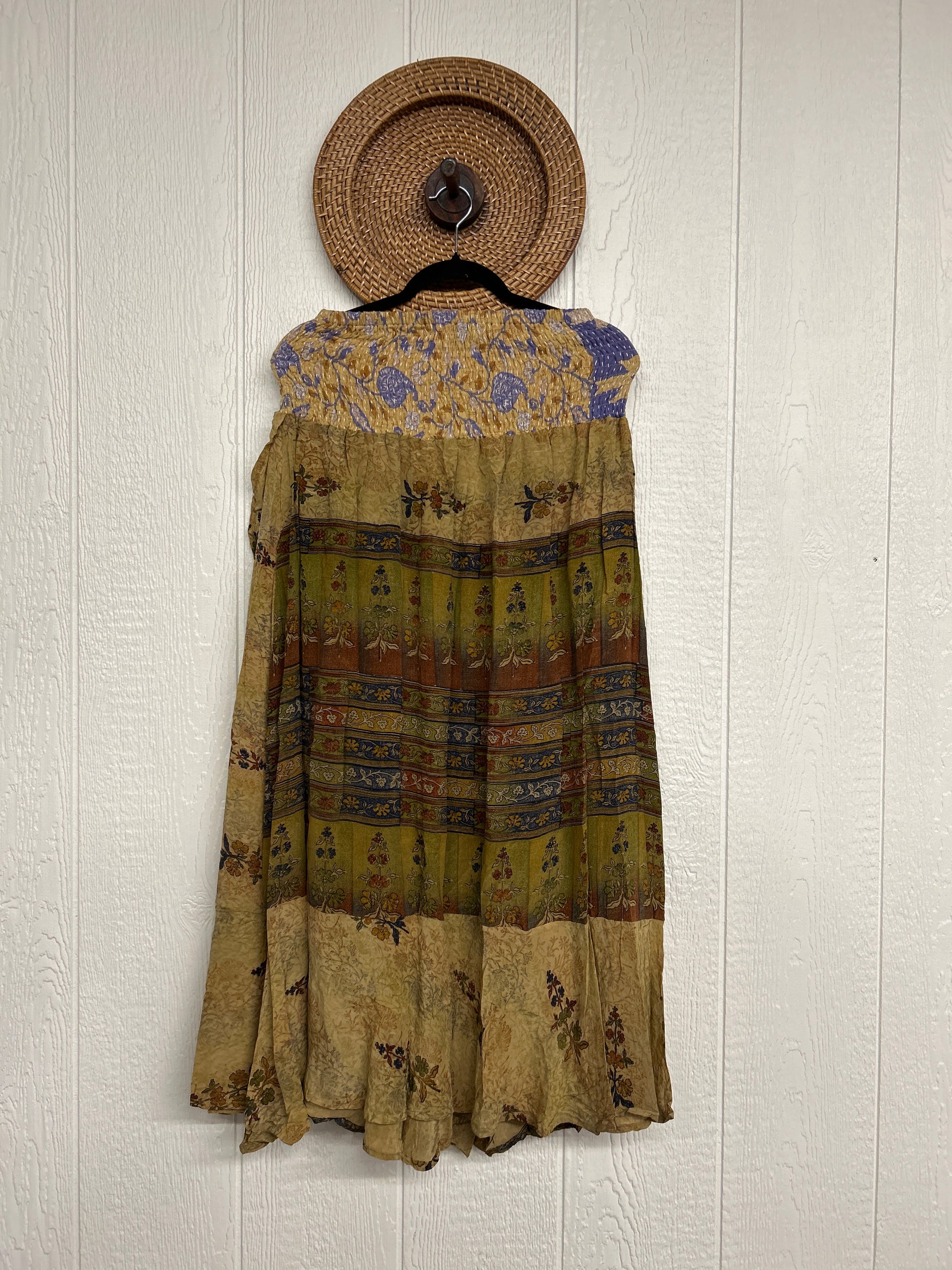 Disclosure: Our vintage styles have lived a full life before becoming the designs in our shop. Fabrics may have small threads or holes in the layers. Color inconsistency or small stains may be present. The saris are sewn together and extend the life of each design. Imperfections should be celebrated