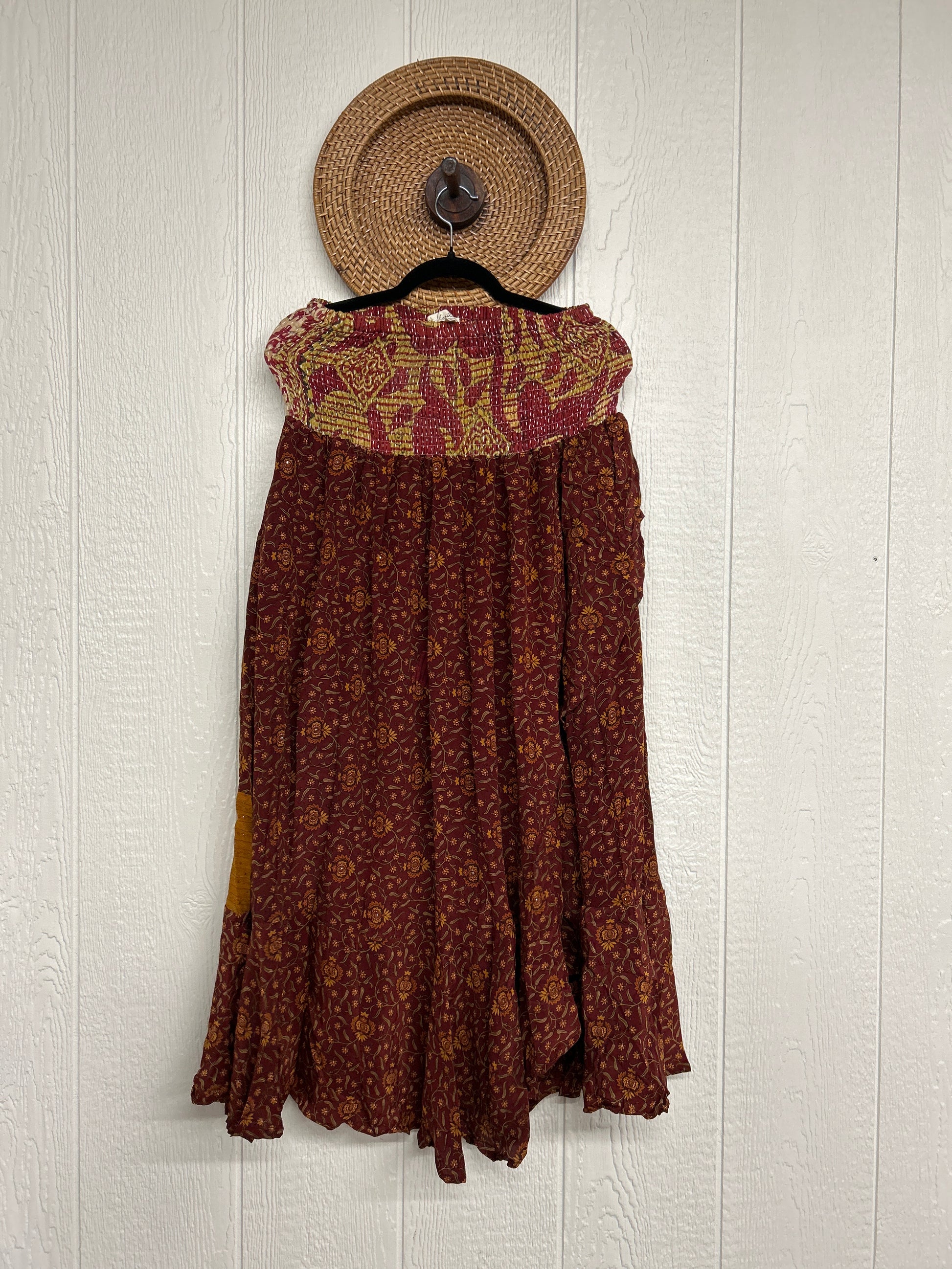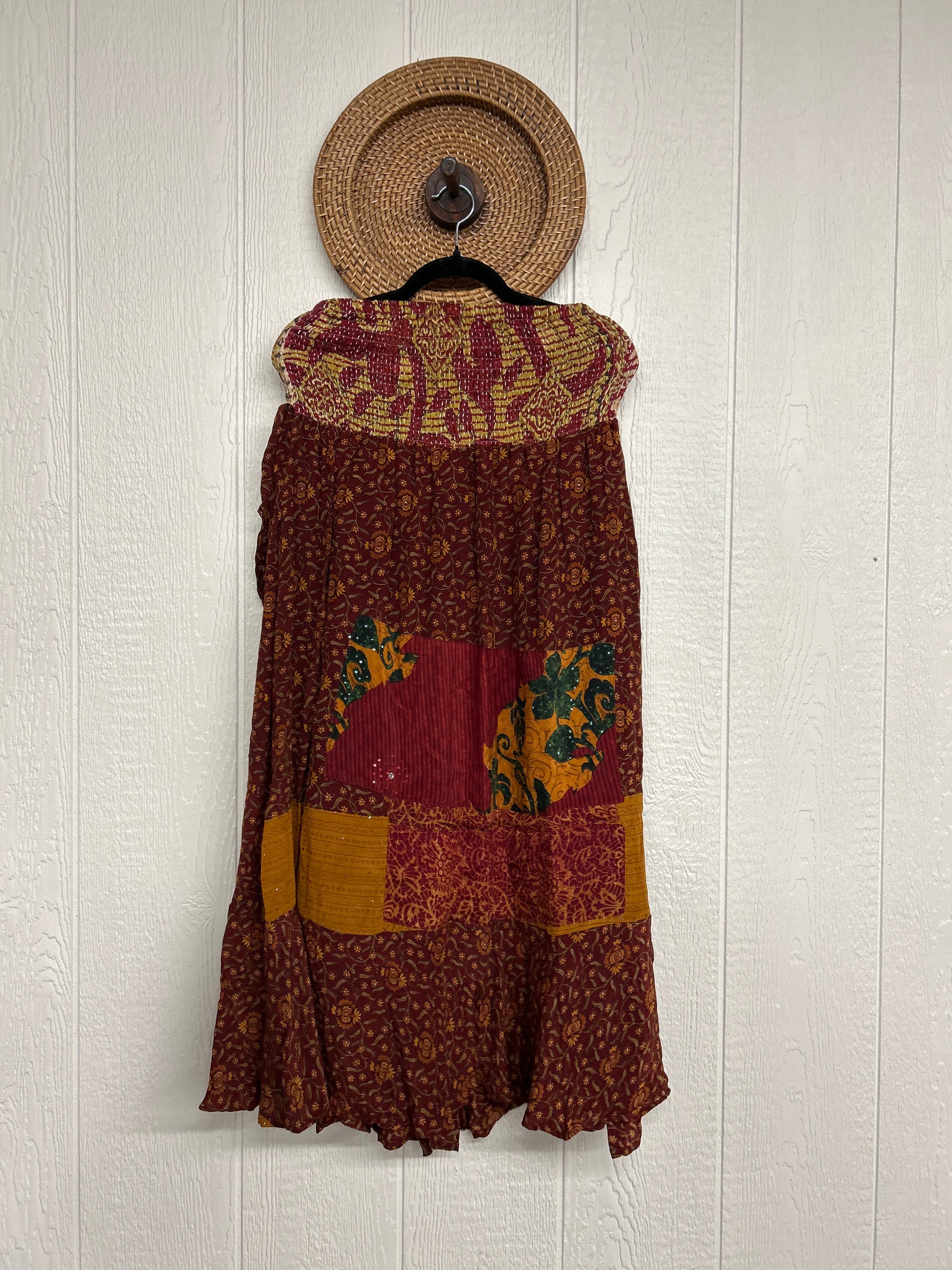 Disclosure: Our vintage styles have lived a full life before becoming the designs in our shop. Fabrics may have small threads or holes in the layers. Color inconsistency or small stains may be present. The saris are sewn together and extend the life of each design. Imperfections should be celebrated