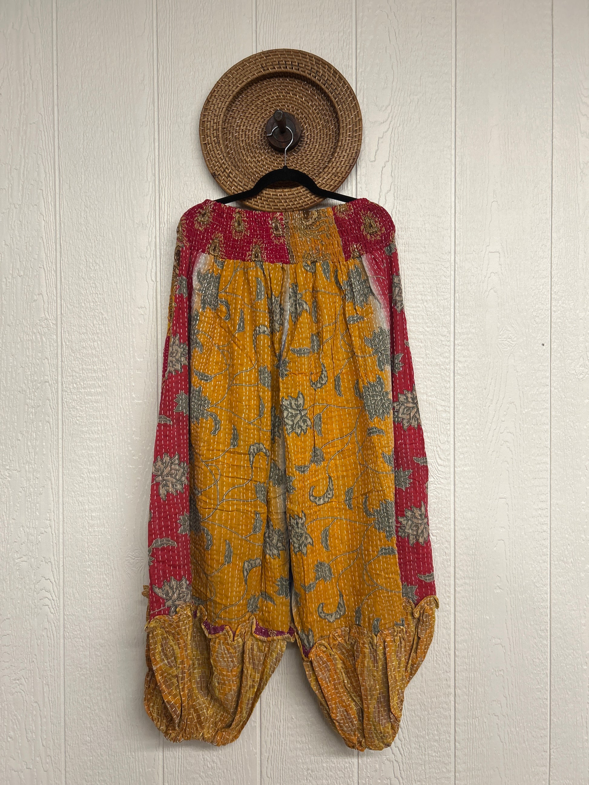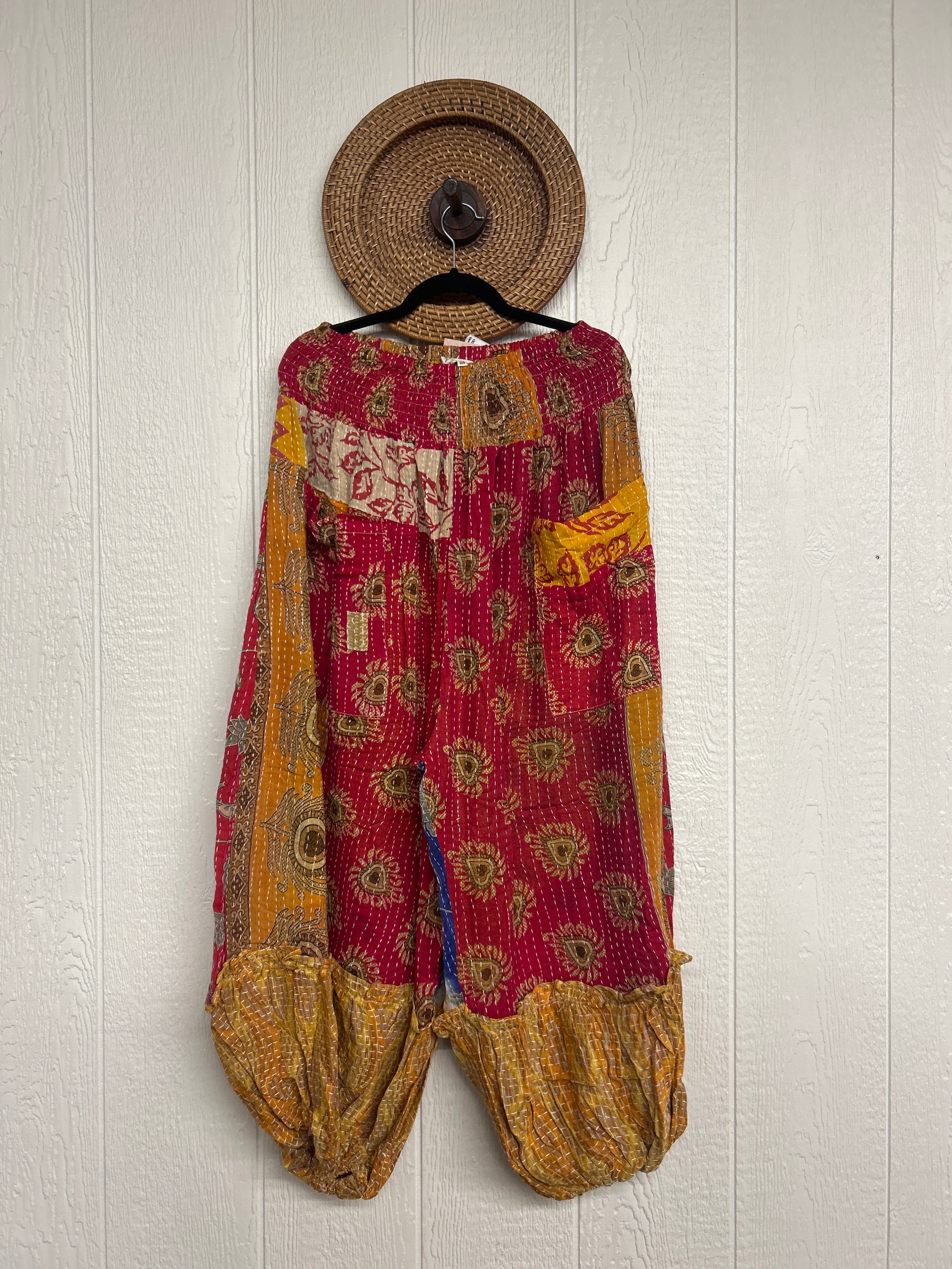 Crafted from our ultra lux kantha stitched vintage cotton sari these pants feature exterior slouchy pockets, a stretchy waistband and an elastic ankle opening. Dress these dream pants up or down to become the ultimate vibe!