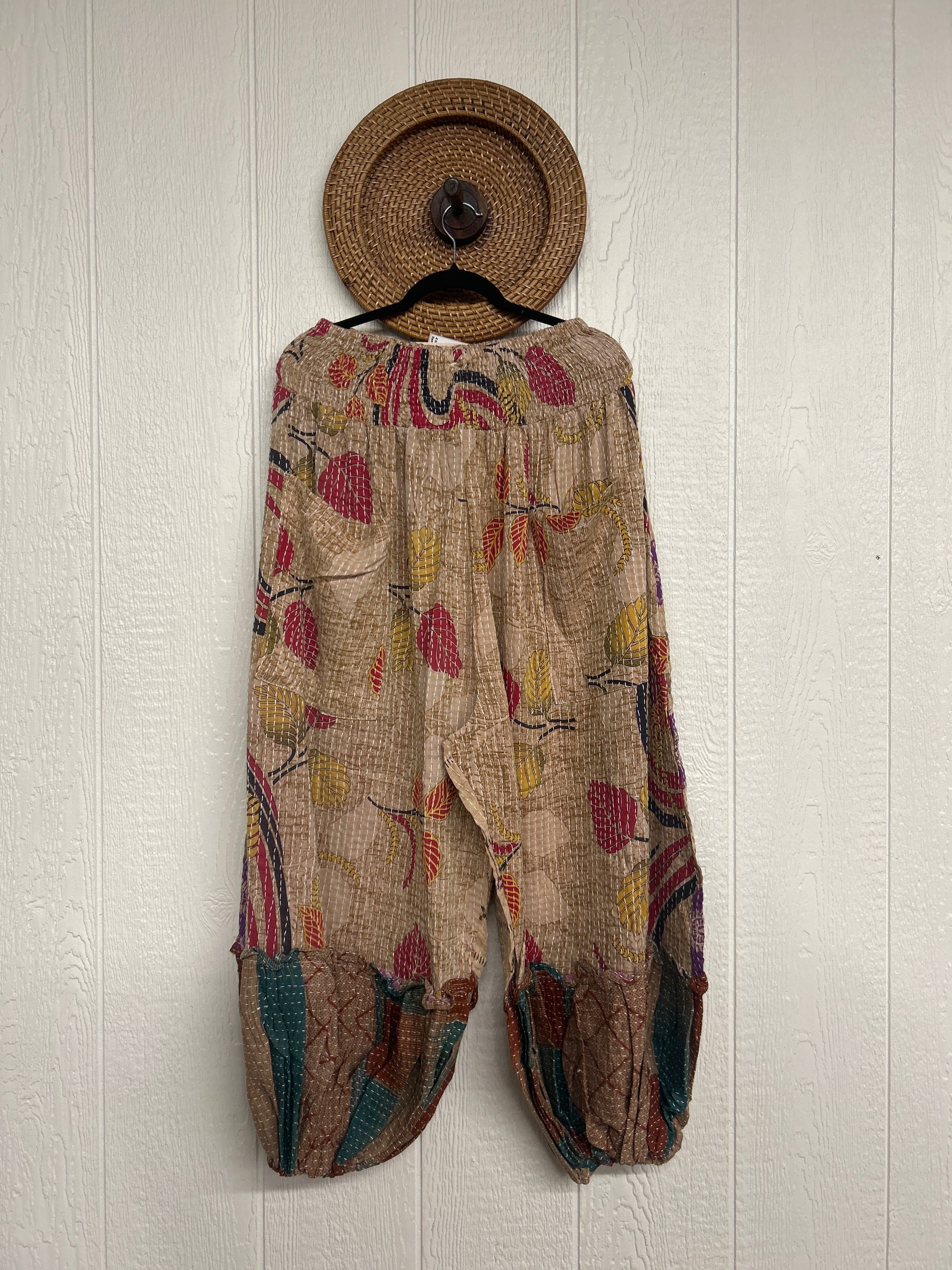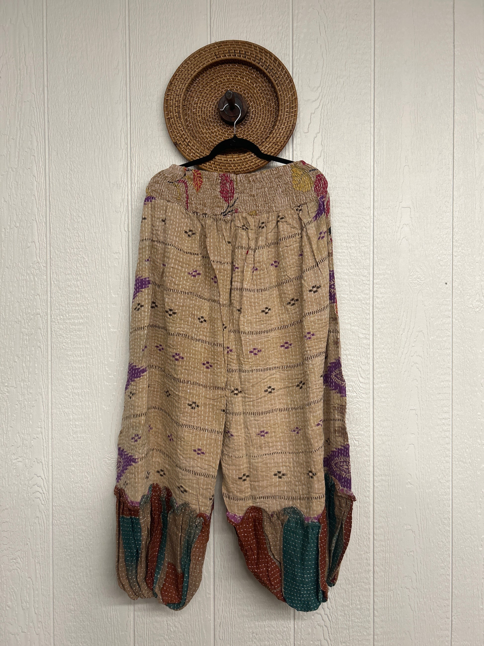 Crafted from our ultra lux kantha stitched vintage cotton sari these pants feature exterior slouchy pockets, a stretchy waistband and an elastic ankle opening. Dress these dream pants up or down to become the ultimate vibe!