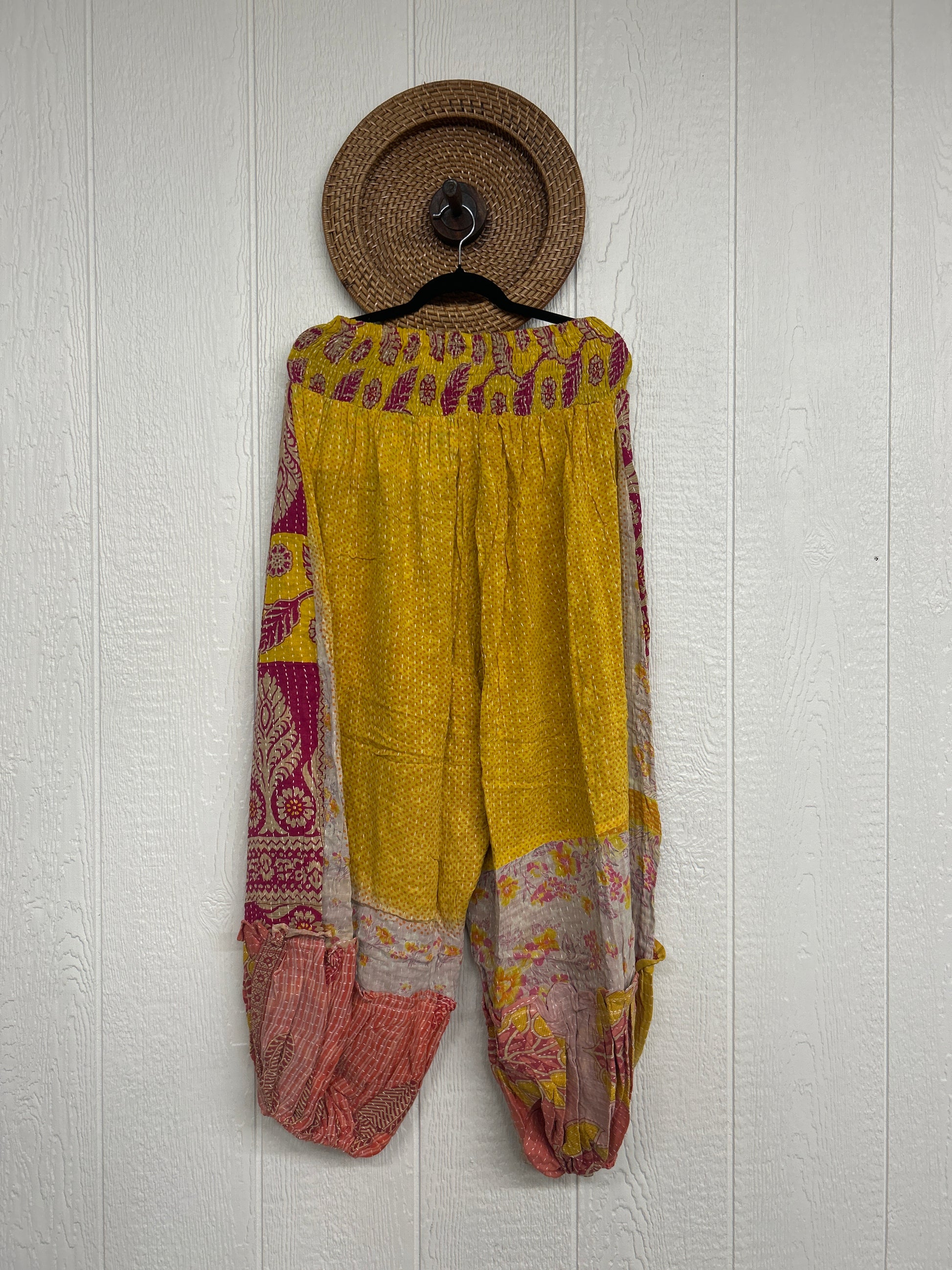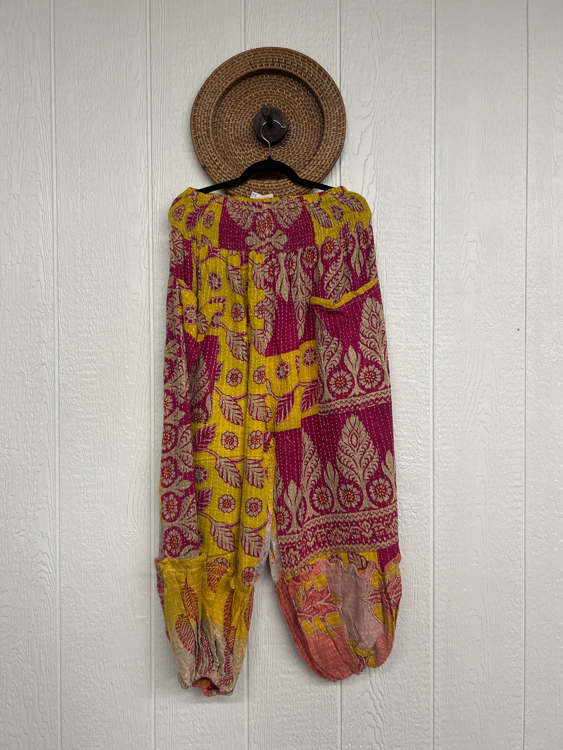 Crafted from our ultra lux kantha stitched vintage cotton sari these pants feature exterior slouchy pockets, a stretchy waistband and an elastic ankle opening. Dress these dream pants up or down to become the ultimate vibe!