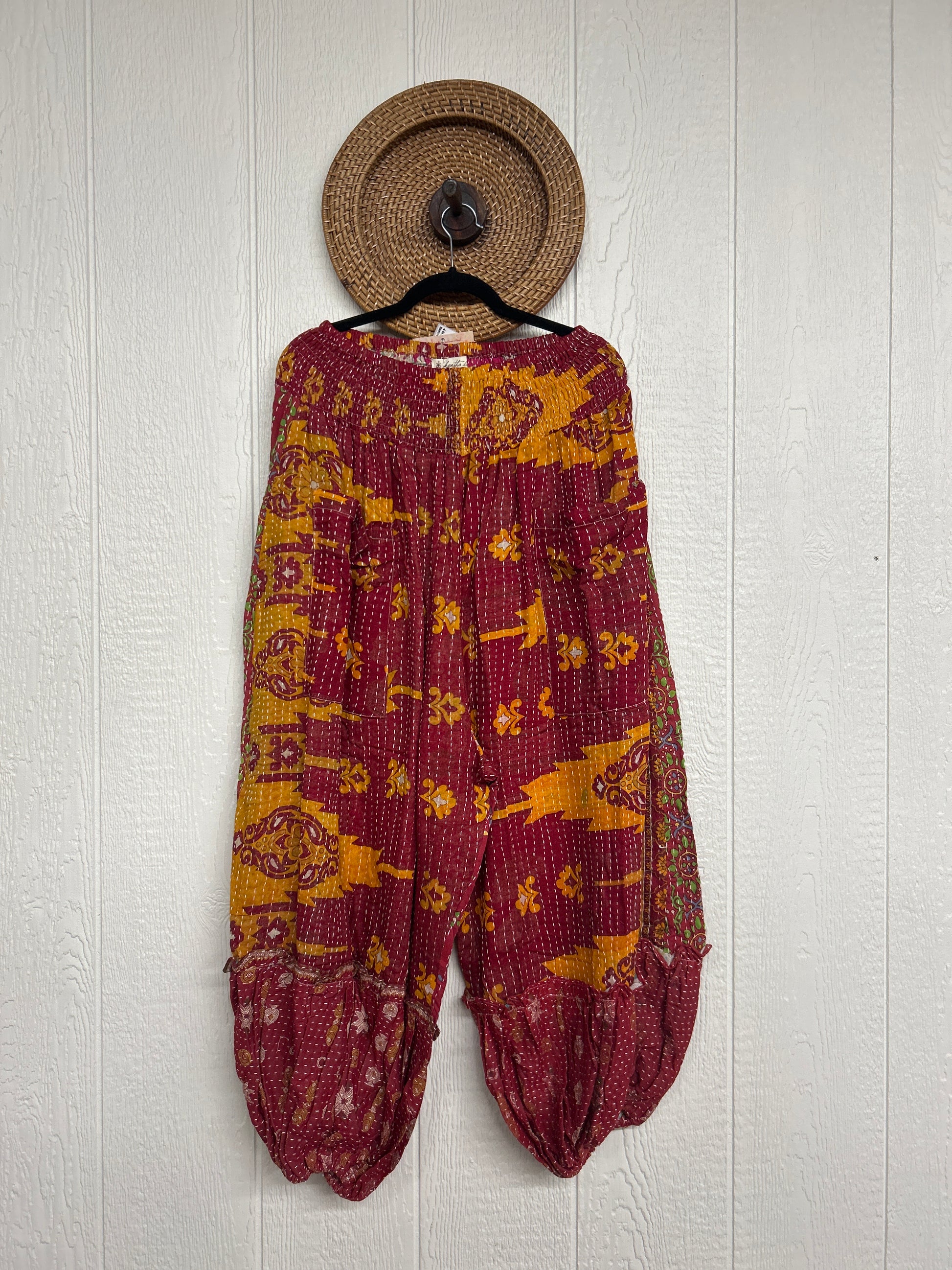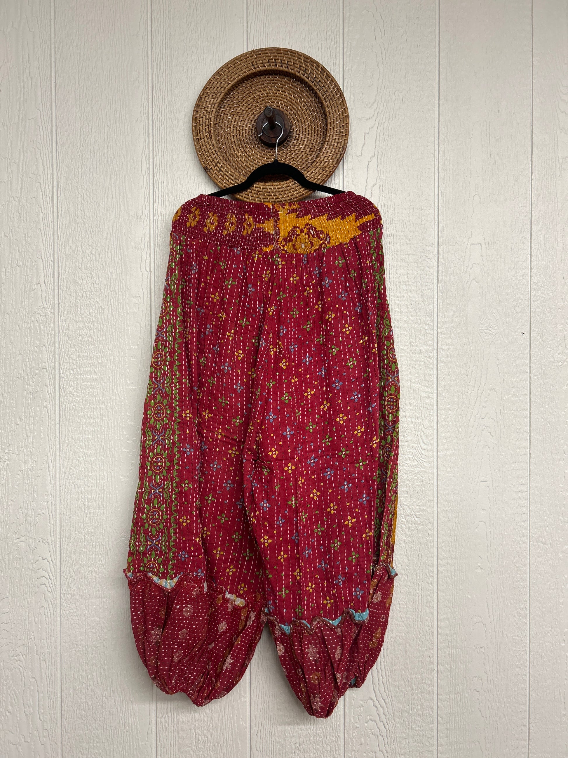Crafted from our ultra lux kantha stitched vintage cotton sari these pants feature exterior slouchy pockets, a stretchy waistband and an elastic ankle opening. Dress these dream pants up or down to become the ultimate vibe!