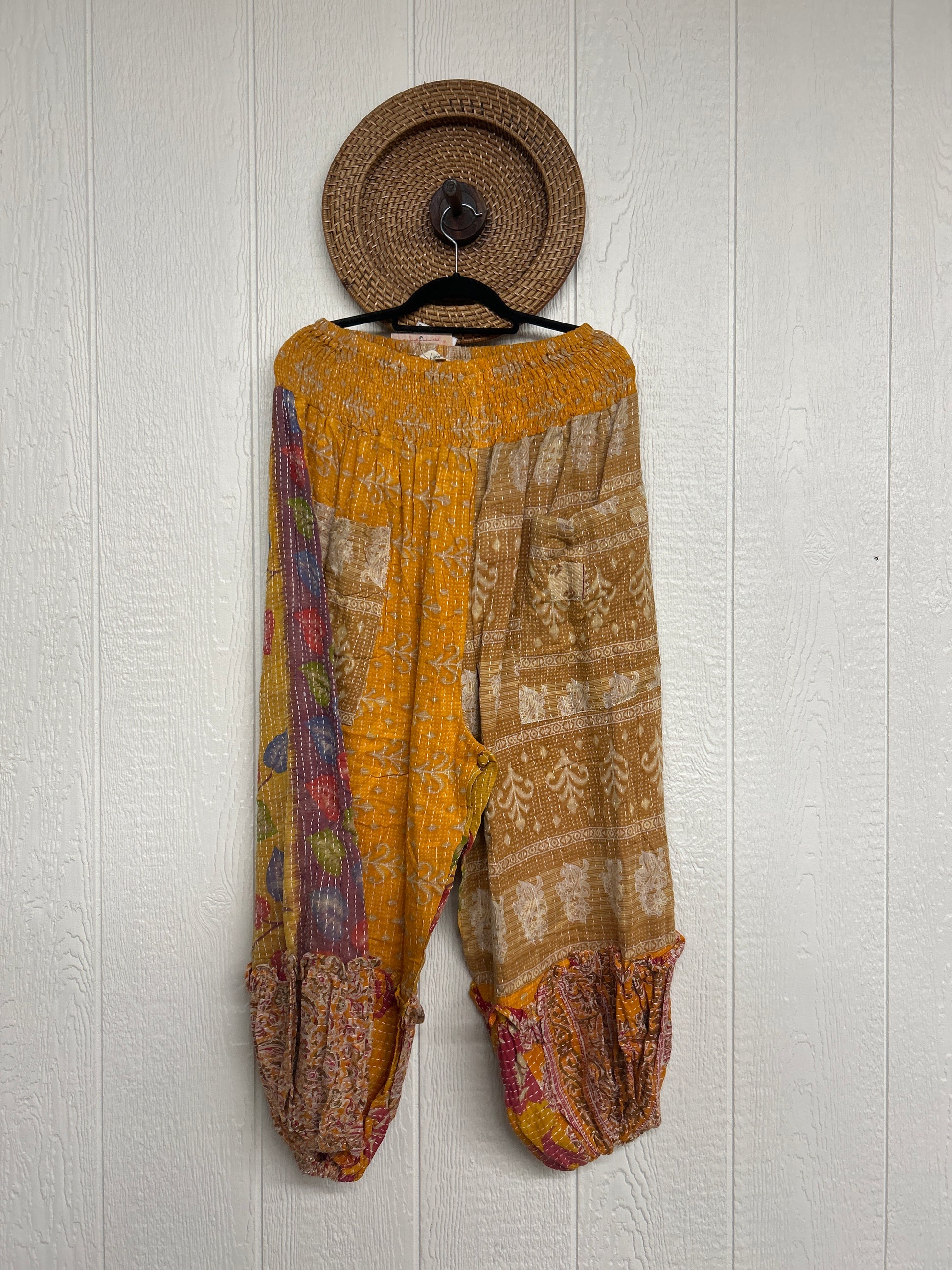 Crafted from our ultra lux kantha stitched vintage cotton sari these pants feature exterior slouchy pockets, a stretchy waistband and an elastic ankle opening. Dress these dream pants up or down to become the ultimate vibe!