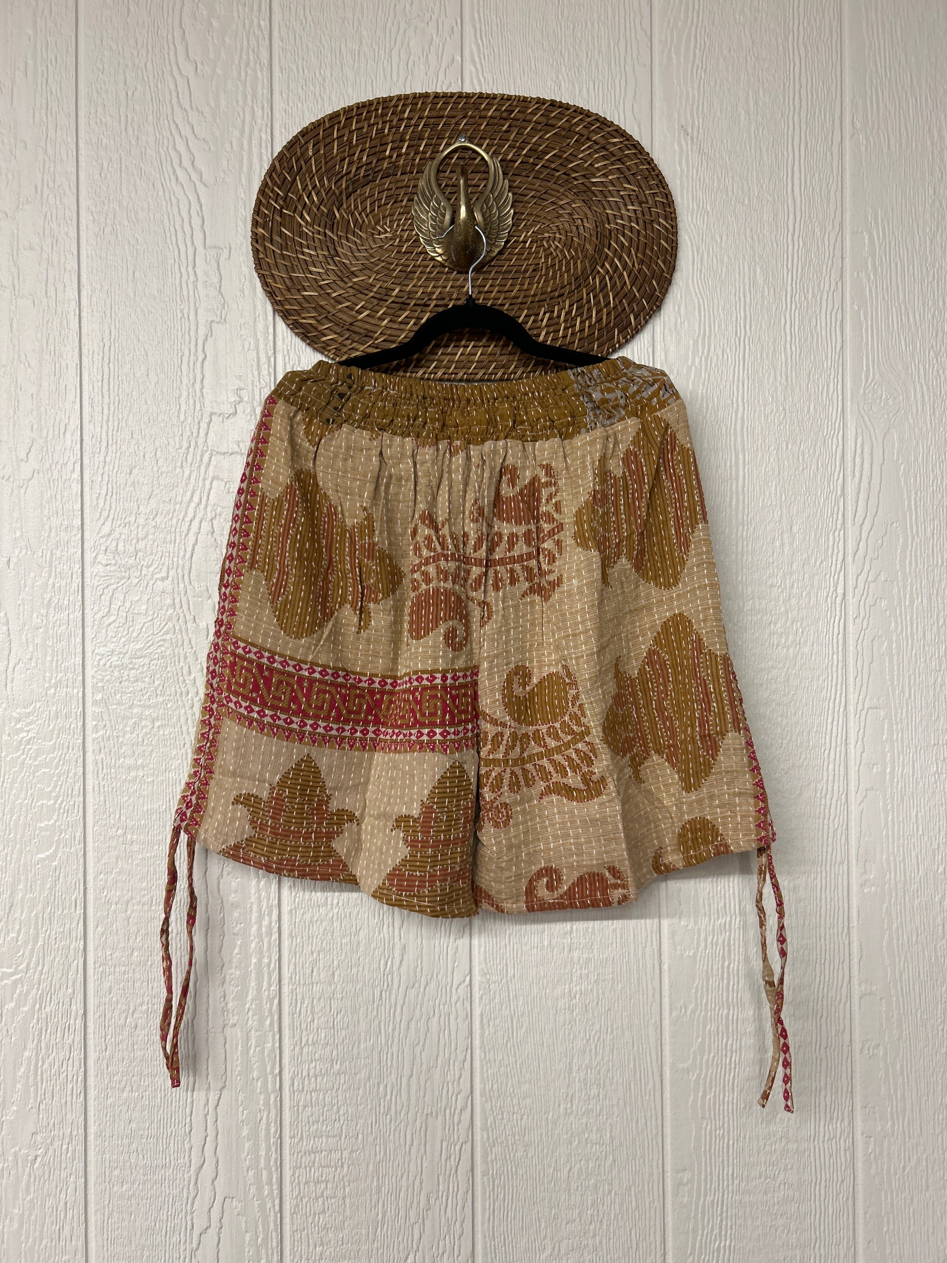 Crafted from our ultra lux vintage cotton Kantha stitched sari. Features interior pockets, a smocked waistband that is soft against the skin with an adjustable drawstring. This fully customizable piece also has a cinch drawstring on the outer leg so you can make the shorts longer or shorter. We are obsessed!