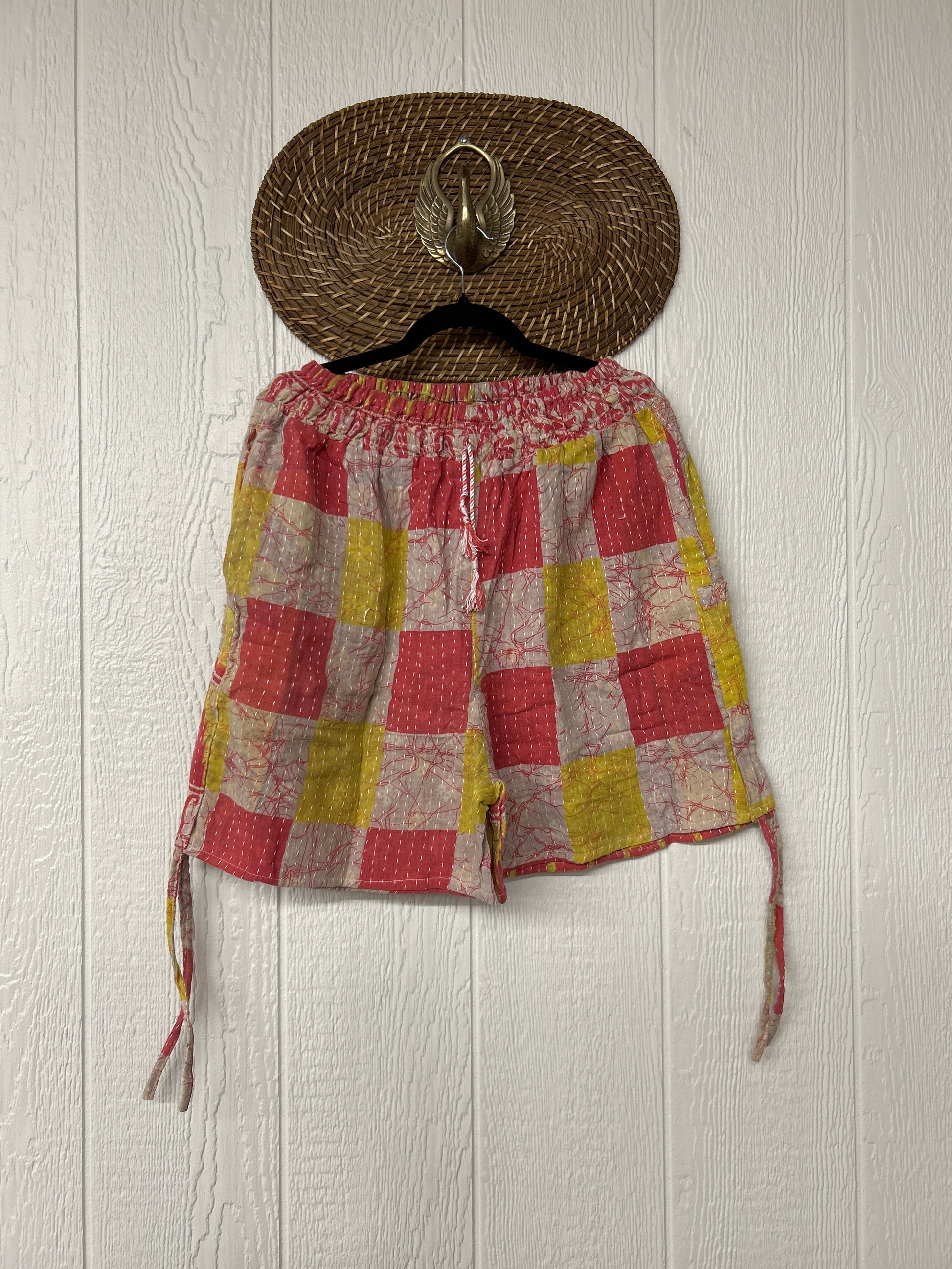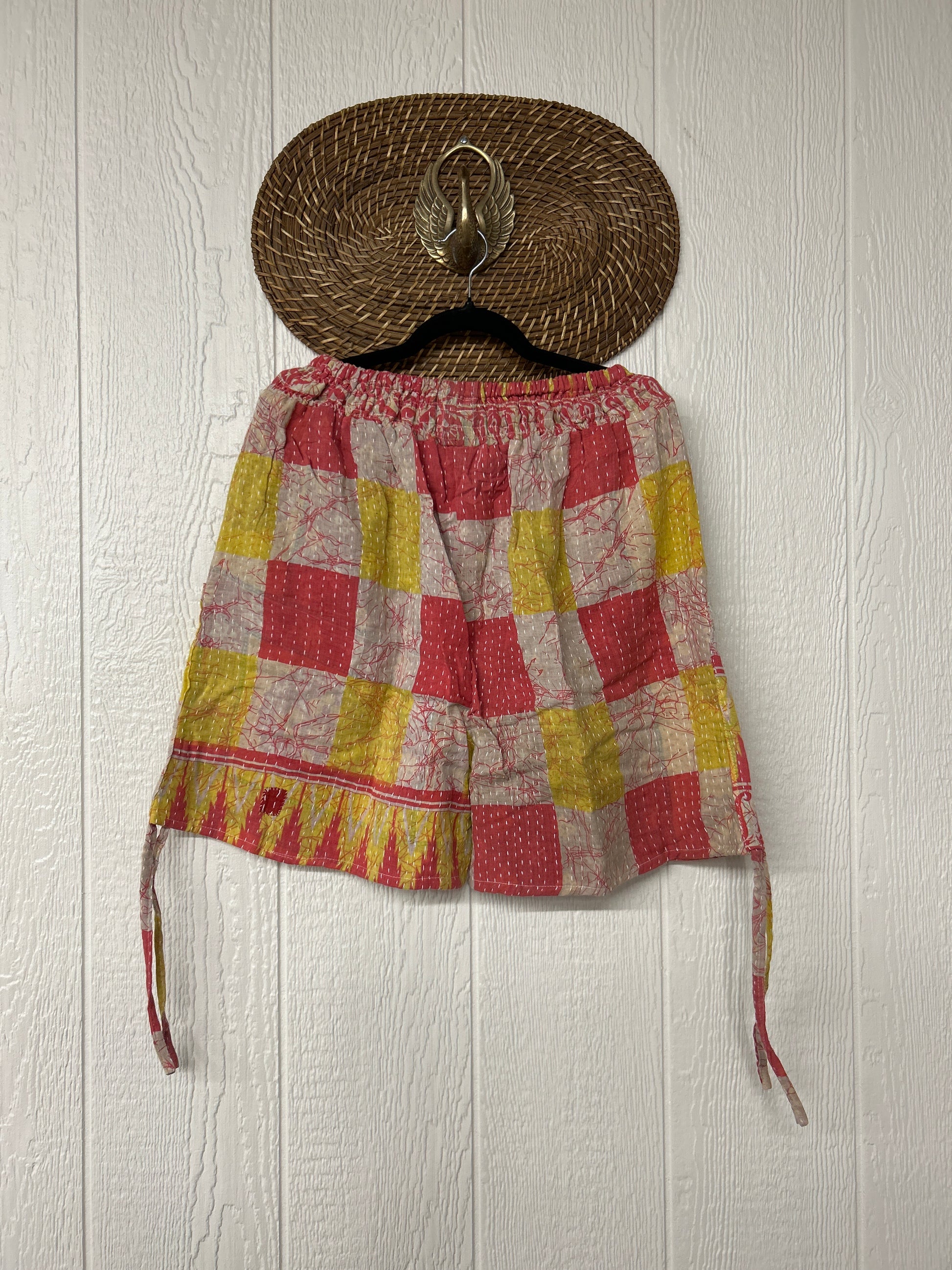 Crafted from our ultra lux vintage cotton Kantha stitched sari. Features interior pockets, a smocked waistband that is soft against the skin with an adjustable drawstring. This fully customizable piece also has a cinch drawstring on the outer leg so you can make the shorts longer or shorter. We are obsessed!