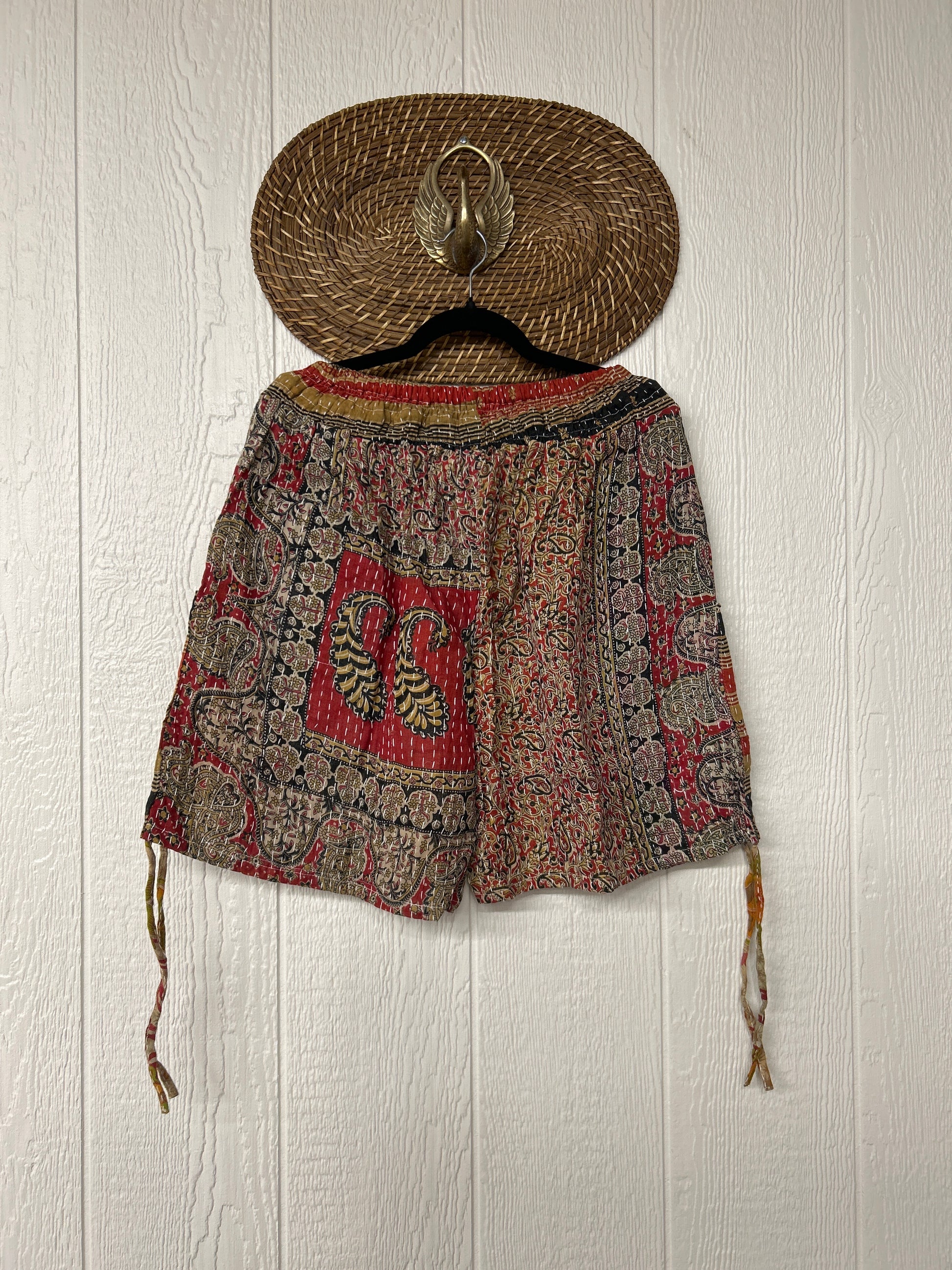 Crafted from our ultra lux vintage cotton Kantha stitched sari. Features interior pockets, a smocked waistband that is soft against the skin with an adjustable drawstring. This fully customizable piece also has a cinch drawstring on the outer leg so you can make the shorts longer or shorter. We are obsessed!