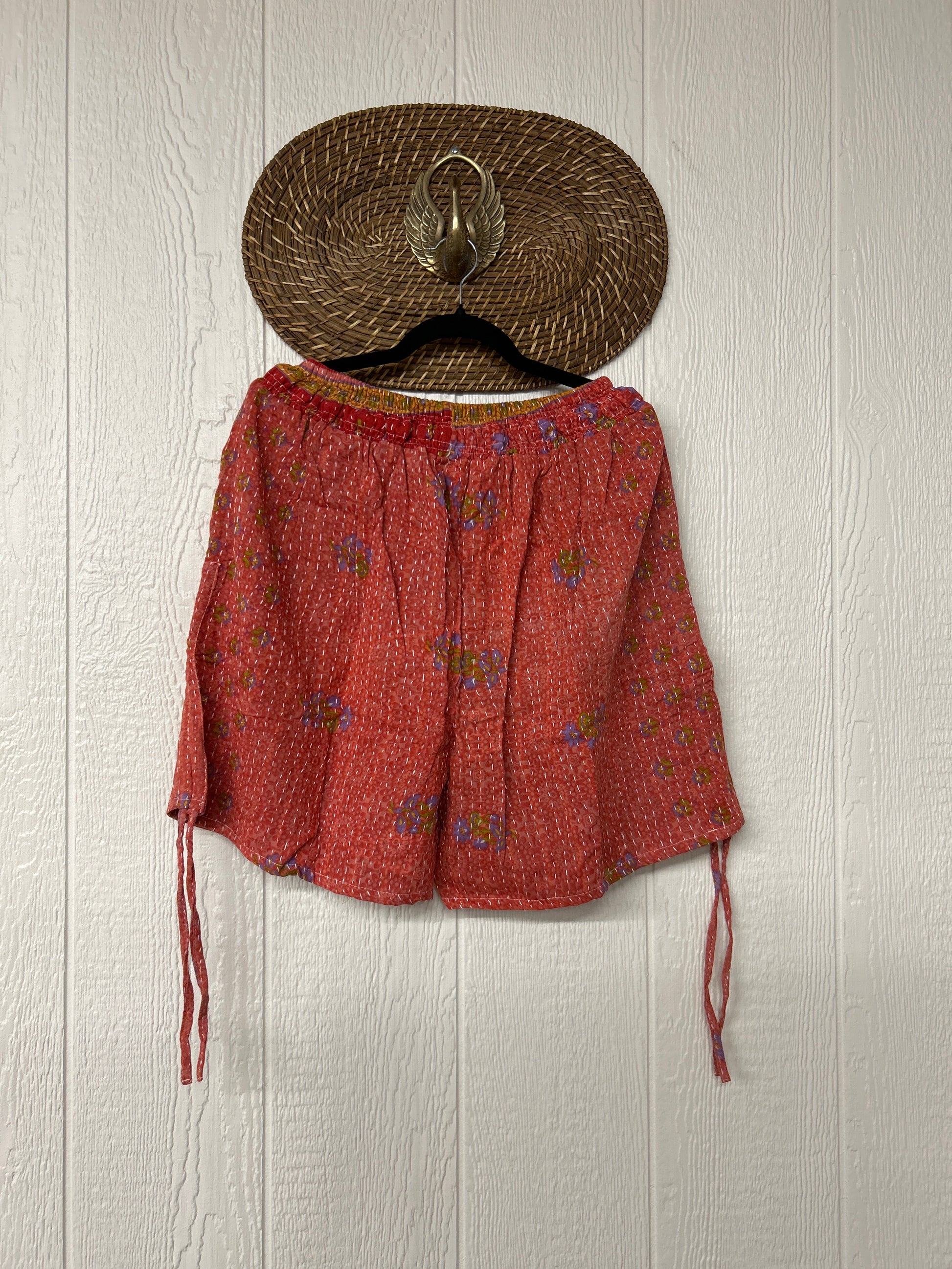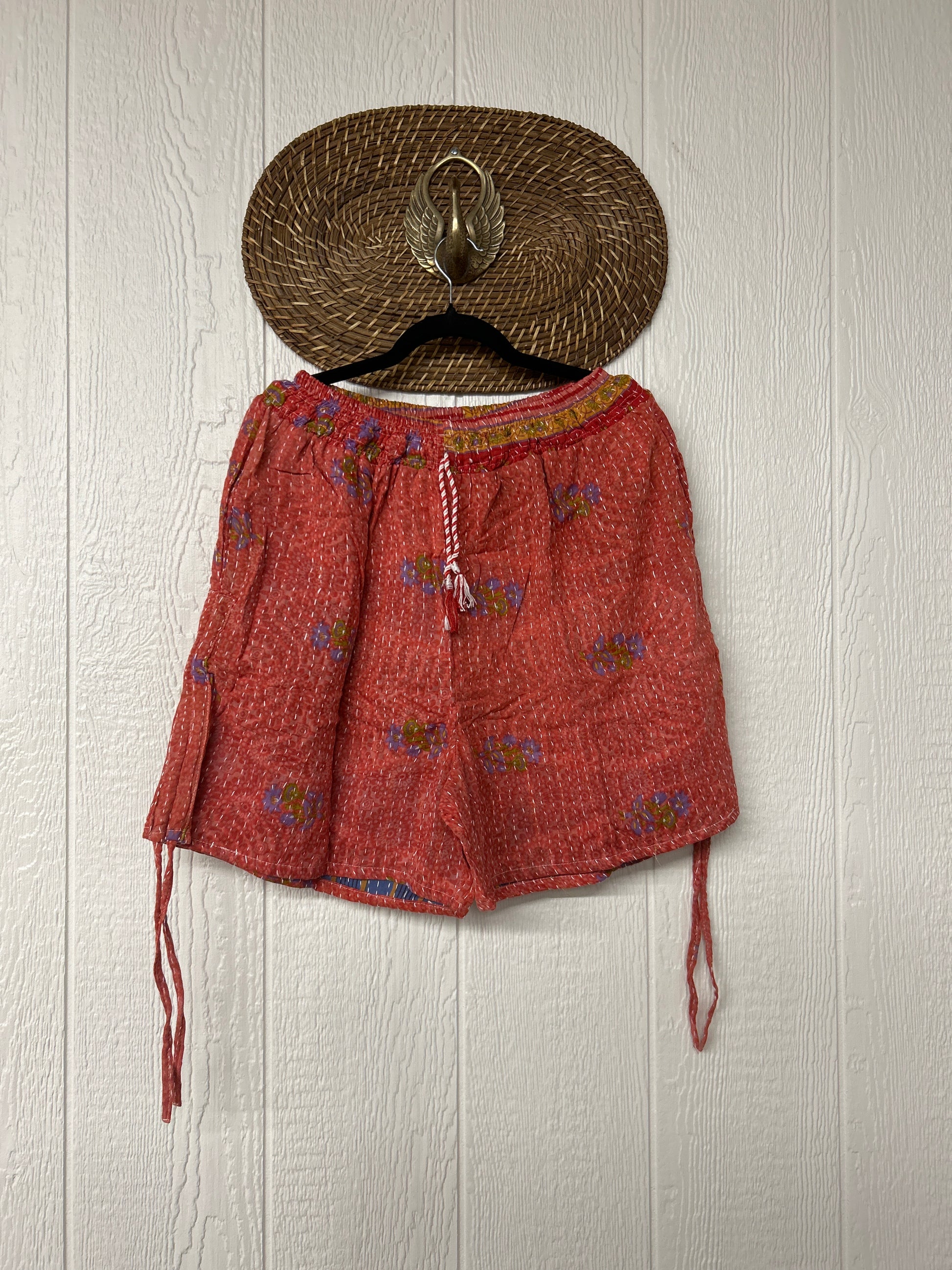 Crafted from our ultra lux vintage cotton Kantha stitched sari. Features interior pockets, a smocked waistband that is soft against the skin with an adjustable drawstring. This fully customizable piece also has a cinch drawstring on the outer leg so you can make the shorts longer or shorter. We are obsessed!