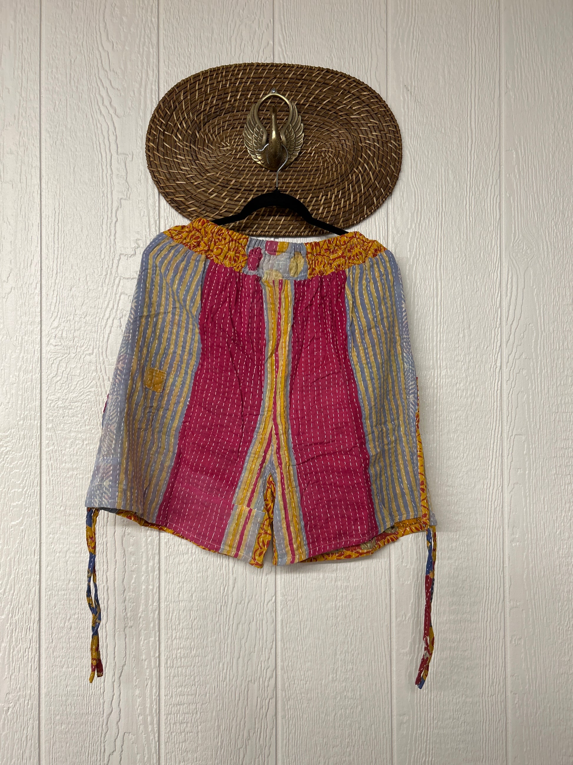 Crafted from our ultra lux vintage cotton Kantha stitched sari. Features interior pockets, a smocked waistband that is soft against the skin with an adjustable drawstring. This fully customizable piece also has a cinch drawstring on the outer leg so you can make the shorts longer or shorter. We are obsessed!