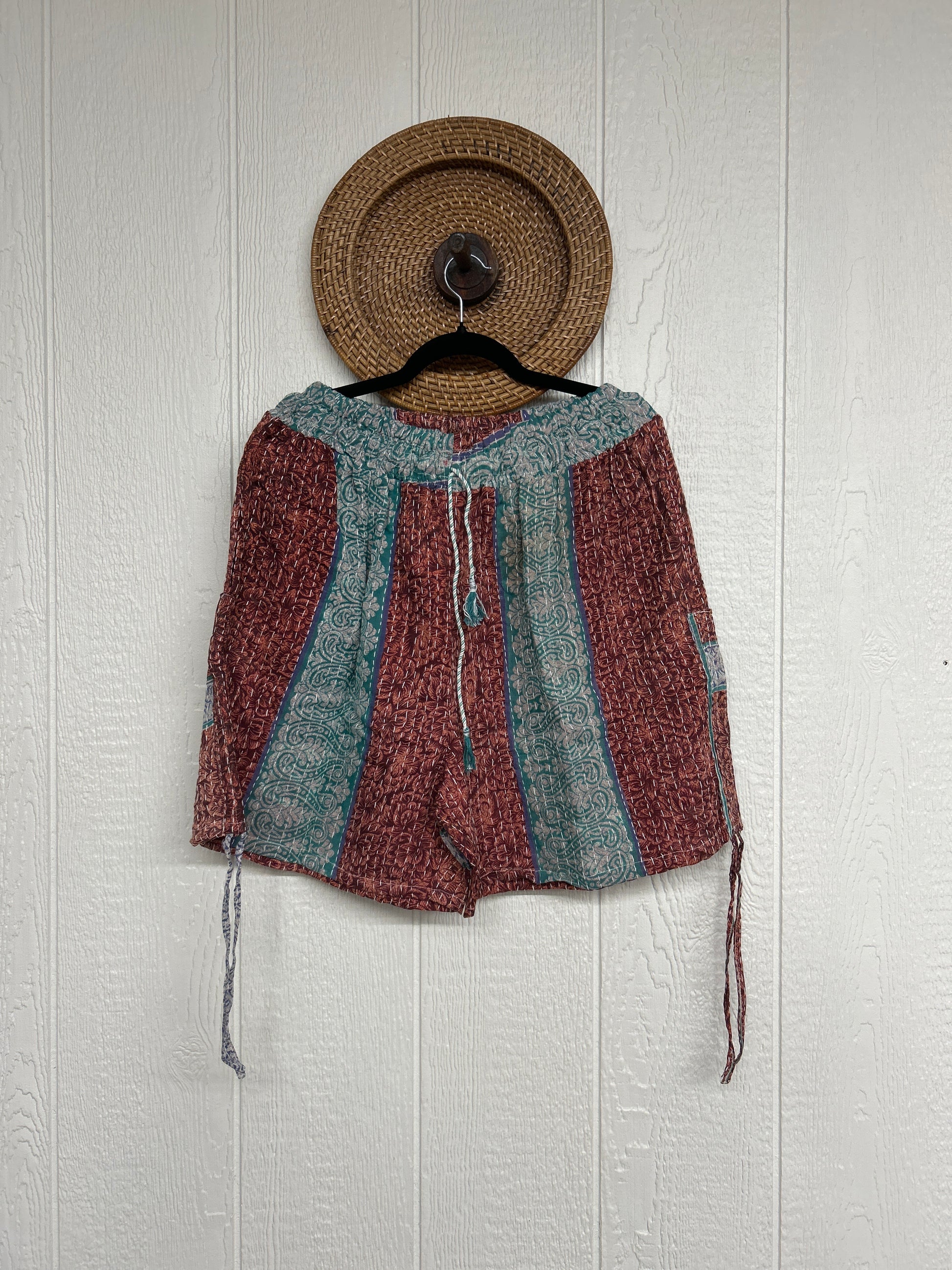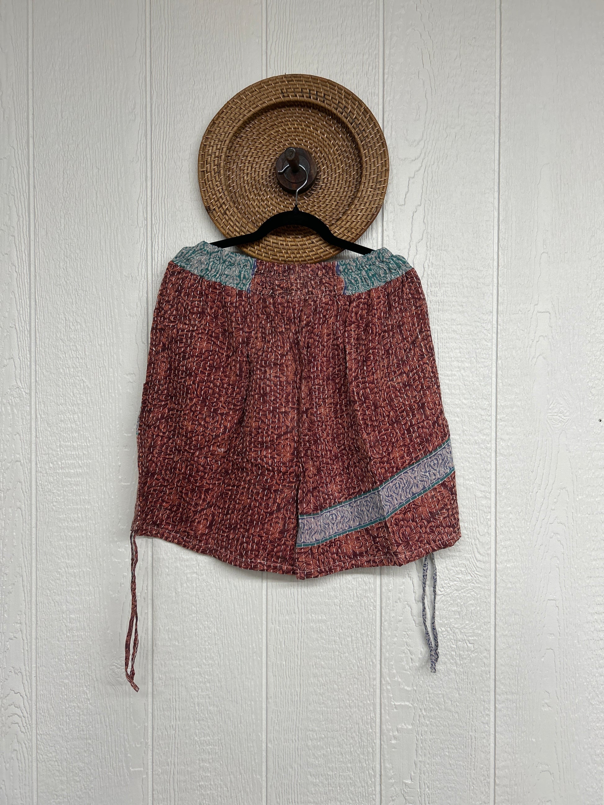 Crafted from our ultra lux vintage cotton Kantha stitched sari. Features interior pockets, a smocked waistband that is soft against the skin with an adjustable drawstring. This fully customizable piece also has a cinch drawstring on the outer leg so you can make the shorts longer or shorter. We are obsessed!