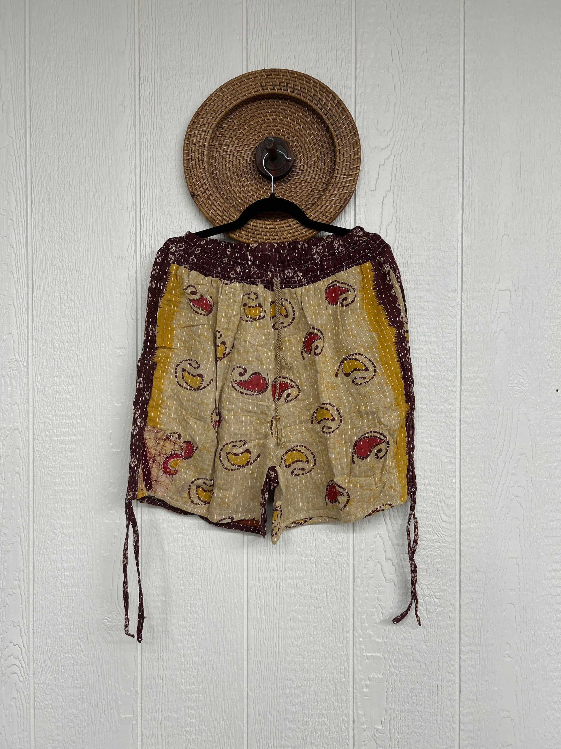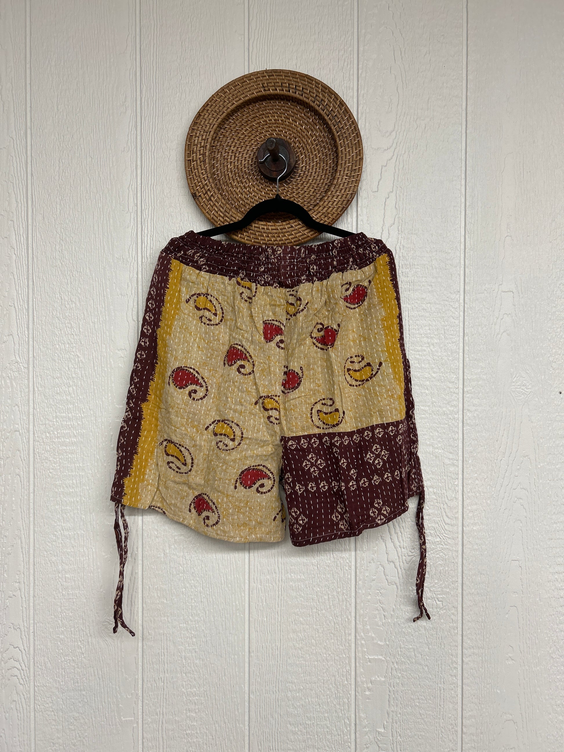 Crafted from our ultra lux vintage cotton Kantha stitched sari. Features interior pockets, a smocked waistband that is soft against the skin with an adjustable drawstring. This fully customizable piece also has a cinch drawstring on the outer leg so you can make the shorts longer or shorter. We are obsessed!
