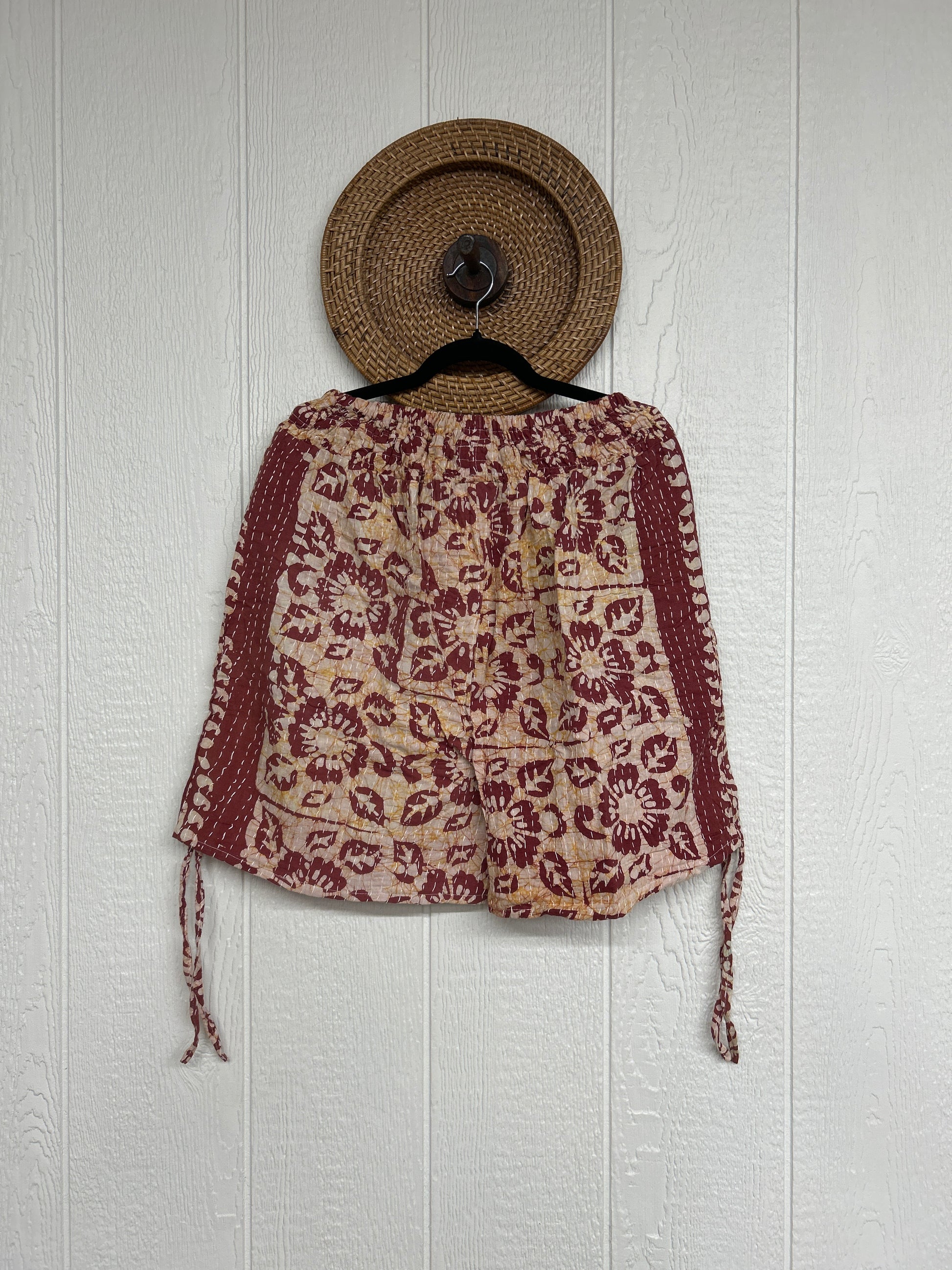 Crafted from our ultra lux vintage cotton Kantha stitched sari. Features interior pockets, a smocked waistband that is soft against the skin with an adjustable drawstring. This fully customizable piece also has a cinch drawstring on the outer leg so you can make the shorts longer or shorter. We are obsessed!