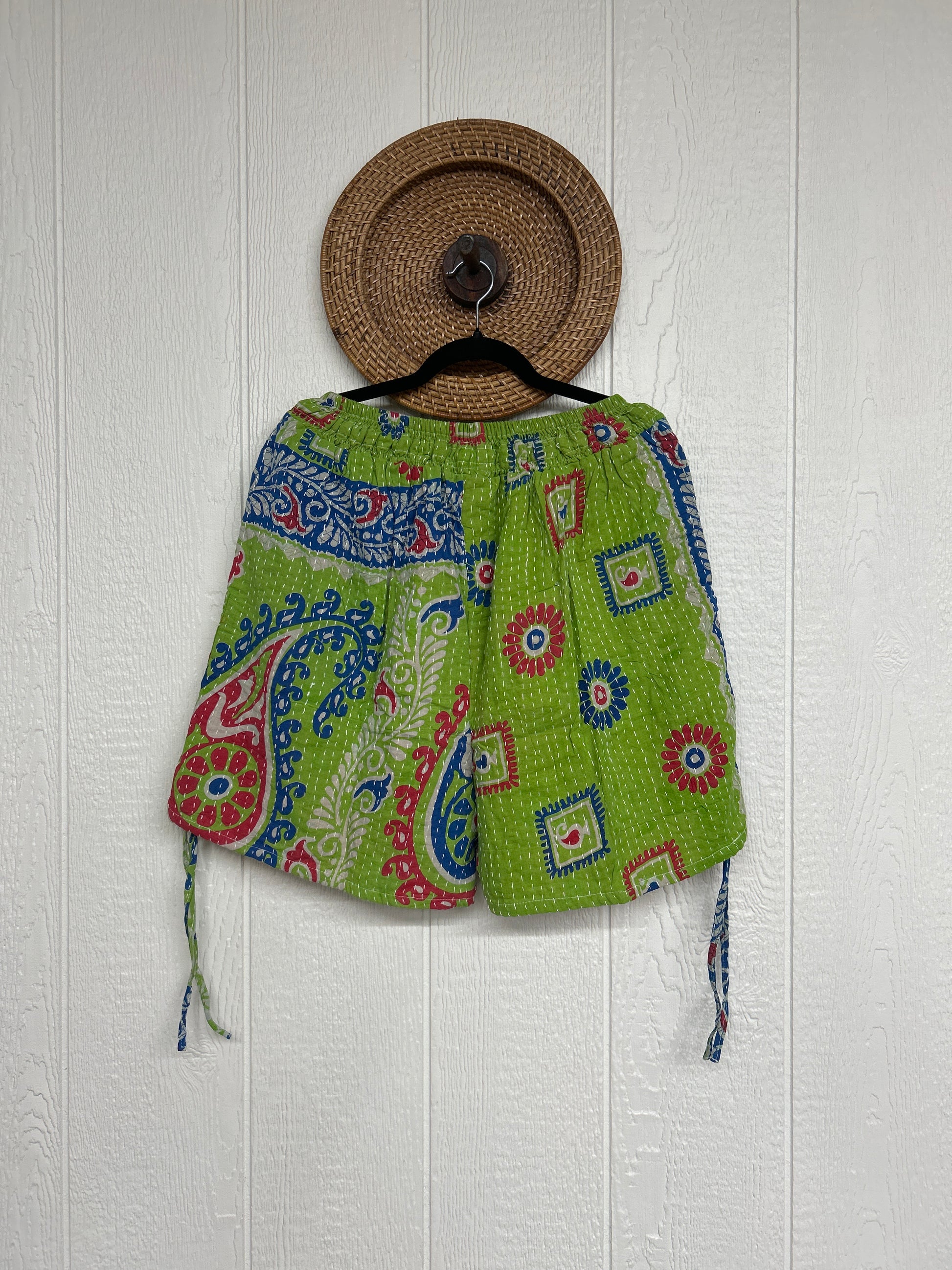 Crafted from our ultra lux vintage cotton Kantha stitched sari. Features interior pockets, a smocked waistband that is soft against the skin with an adjustable drawstring. This fully customizable piece also has a cinch drawstring on the outer leg so you can make the shorts longer or shorter. We are obsessed!
