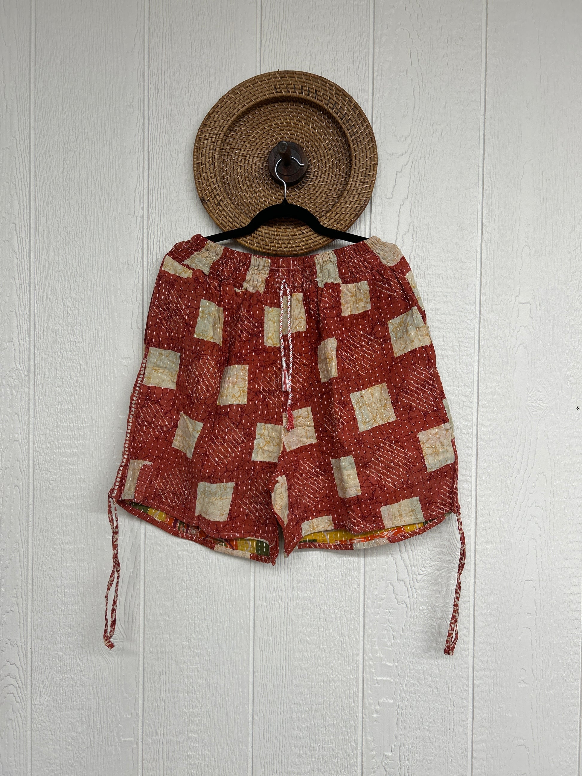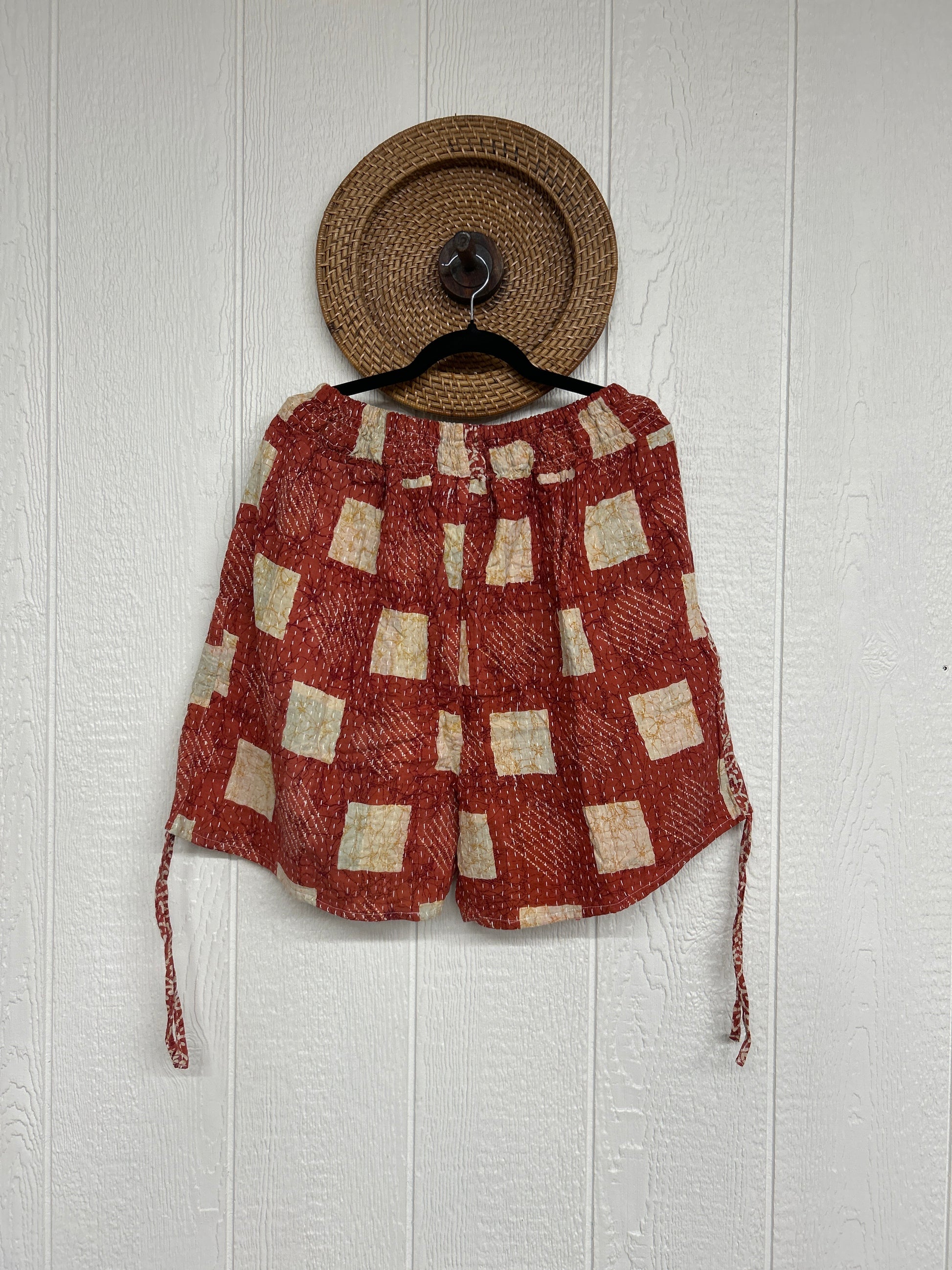 Crafted from our ultra lux vintage cotton Kantha stitched sari. Features interior pockets, a smocked waistband that is soft against the skin with an adjustable drawstring. This fully customizable piece also has a cinch drawstring on the outer leg so you can make the shorts longer or shorter. We are obsessed!