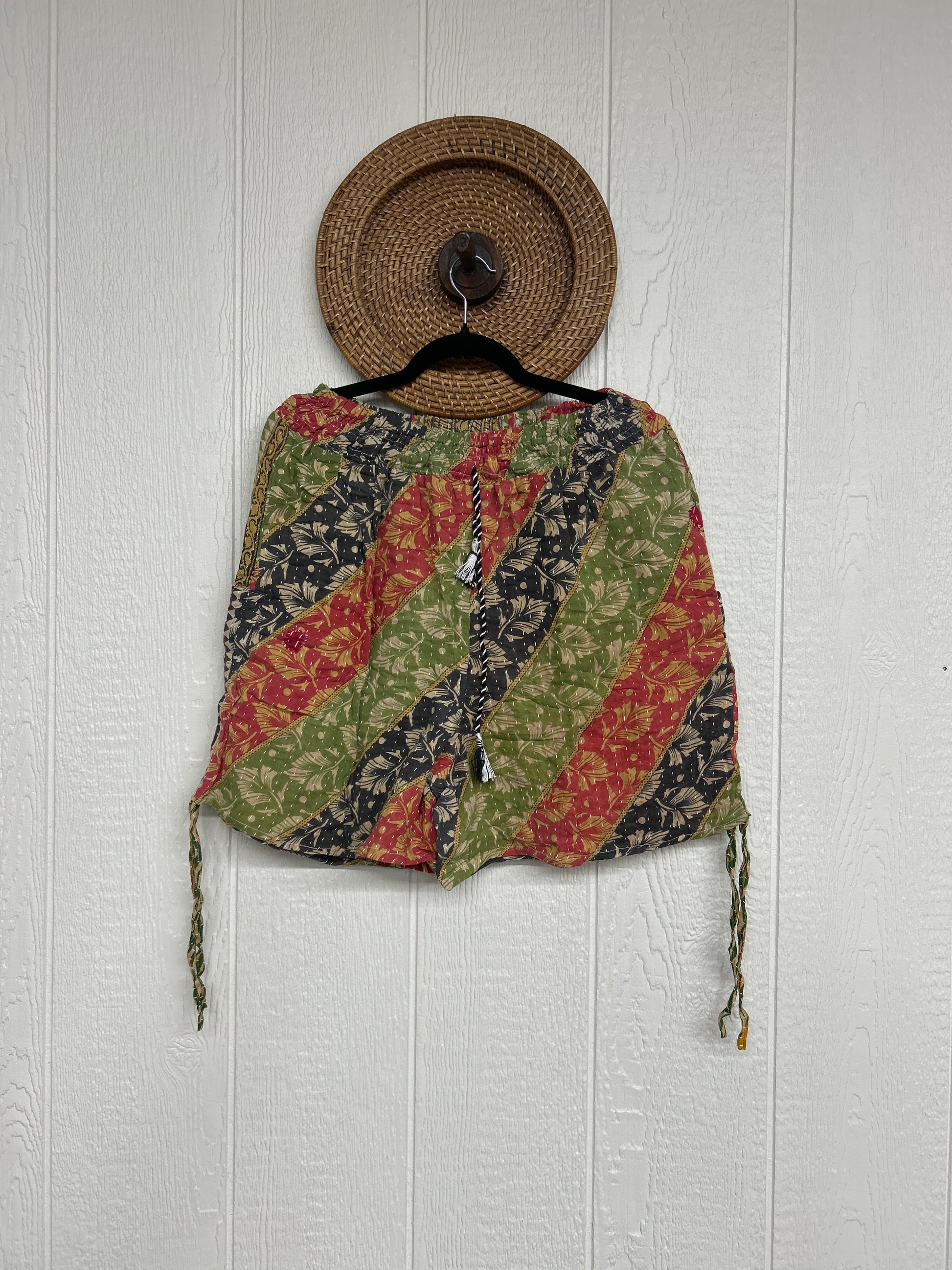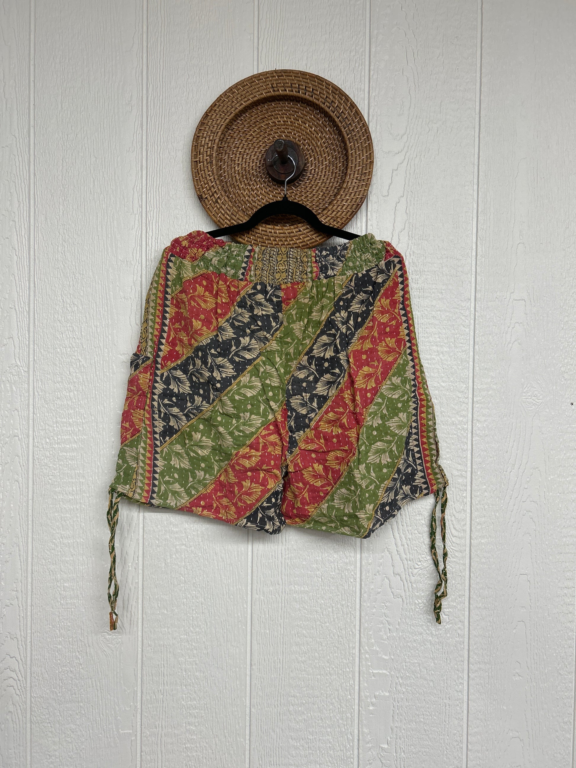 Crafted from our ultra lux vintage cotton Kantha stitched sari. Features interior pockets, a smocked waistband that is soft against the skin with an adjustable drawstring. This fully customizable piece also has a cinch drawstring on the outer leg so you can make the shorts longer or shorter. We are obsessed!