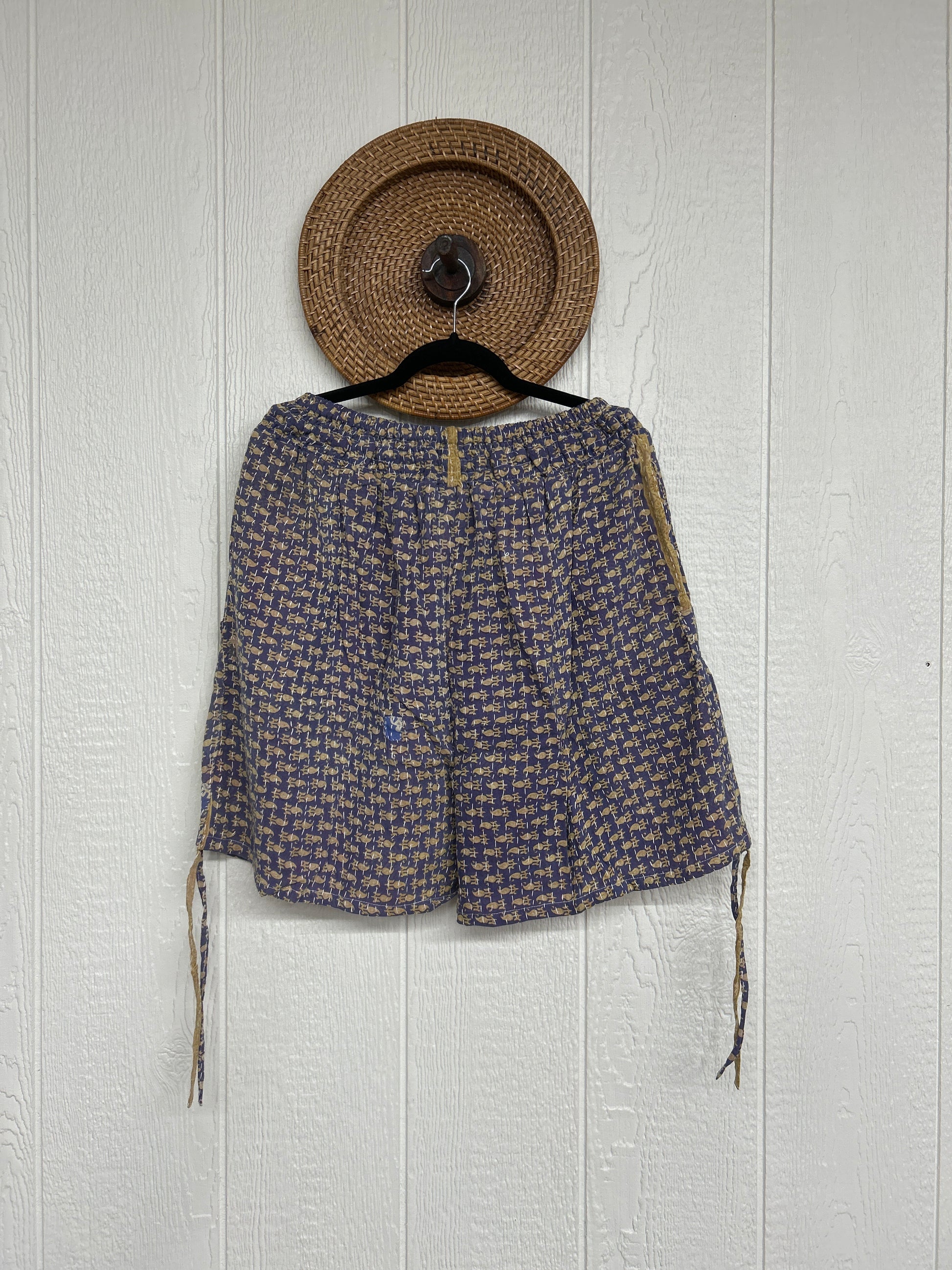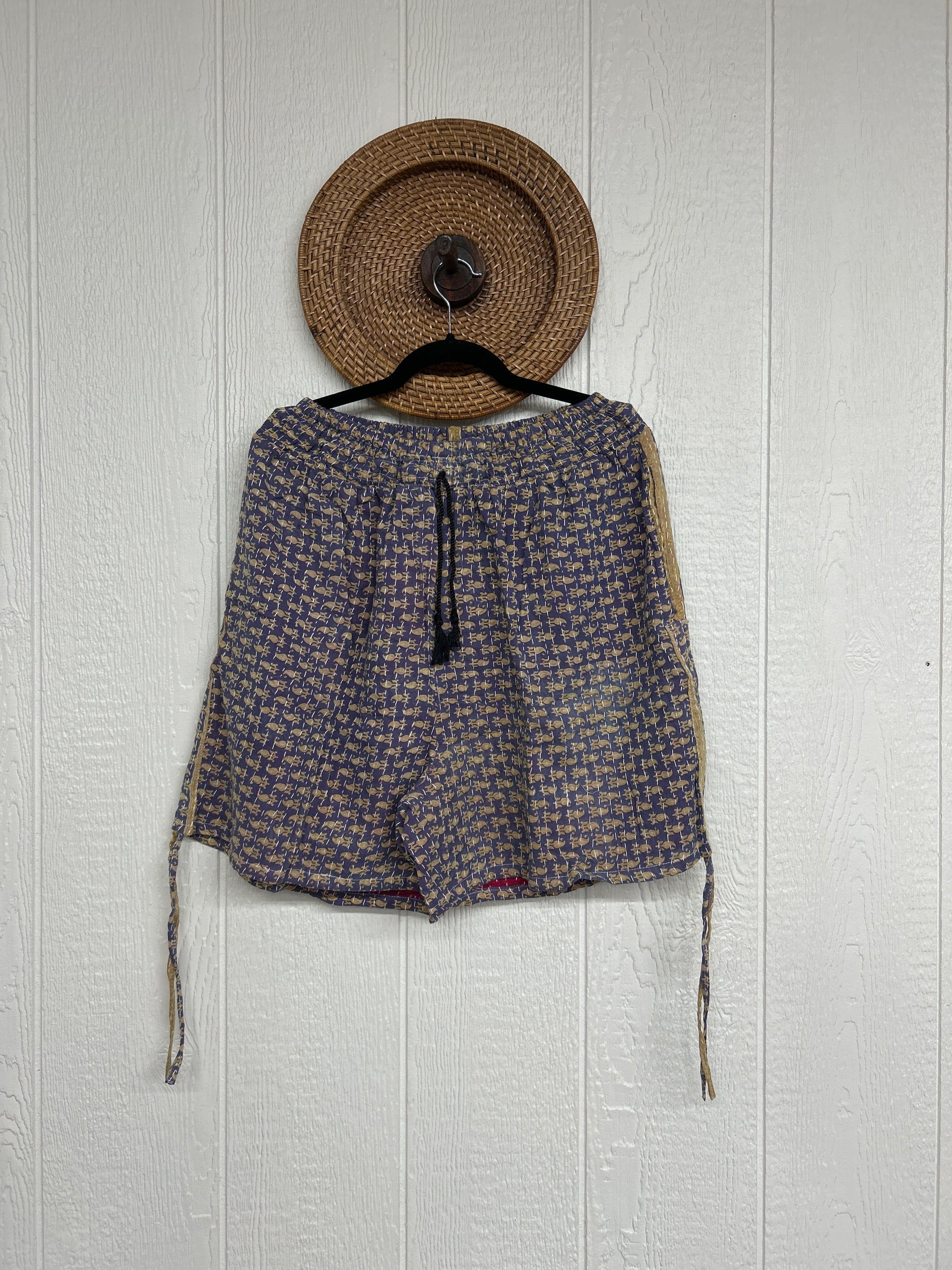 Crafted from our ultra lux vintage cotton Kantha stitched sari. Features interior pockets, a smocked waistband that is soft against the skin with an adjustable drawstring. This fully customizable piece also has a cinch drawstring on the outer leg so you can make the shorts longer or shorter. We are obsessed!