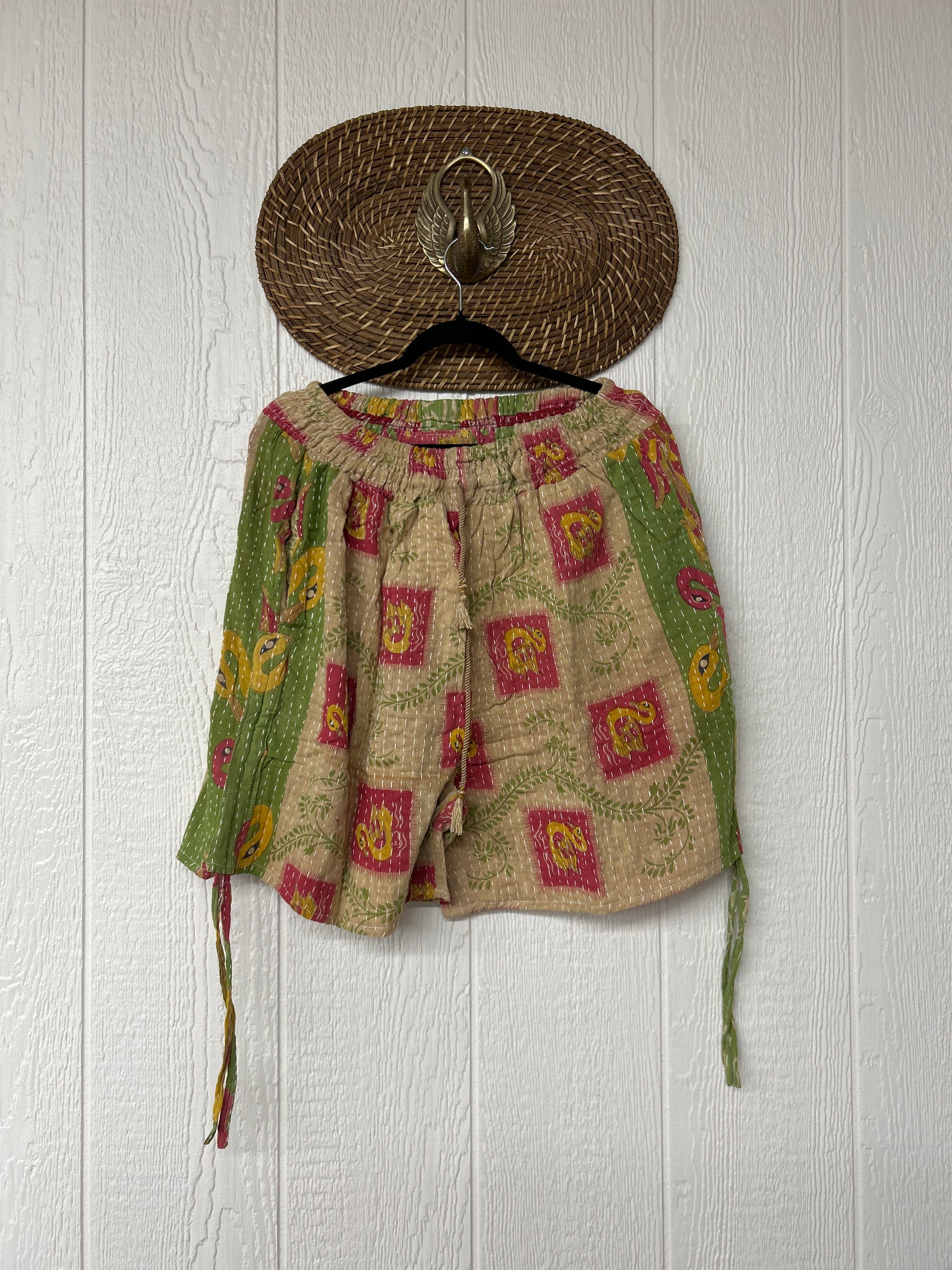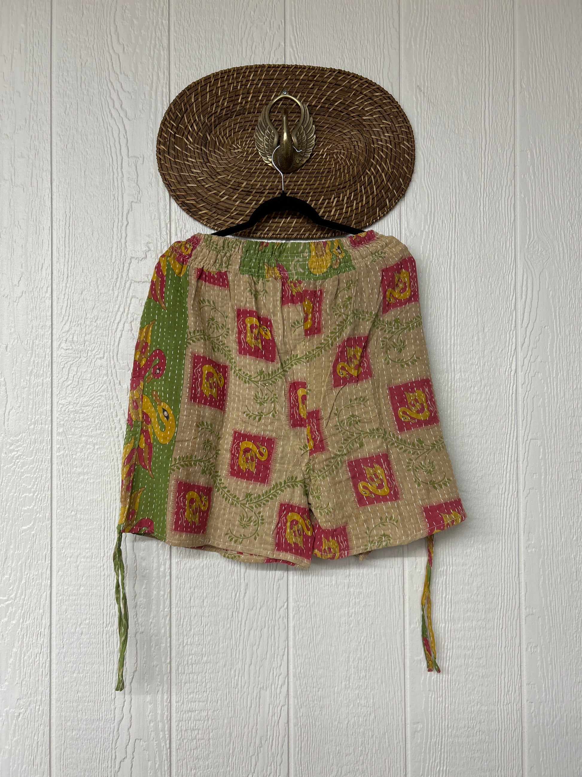 Crafted from our ultra lux vintage cotton Kantha stitched sari. Features interior pockets, a smocked waistband that is soft against the skin with an adjustable drawstring. This fully customizable piece also has a cinch drawstring on the outer leg so you can make the shorts longer or shorter. We are obsessed!