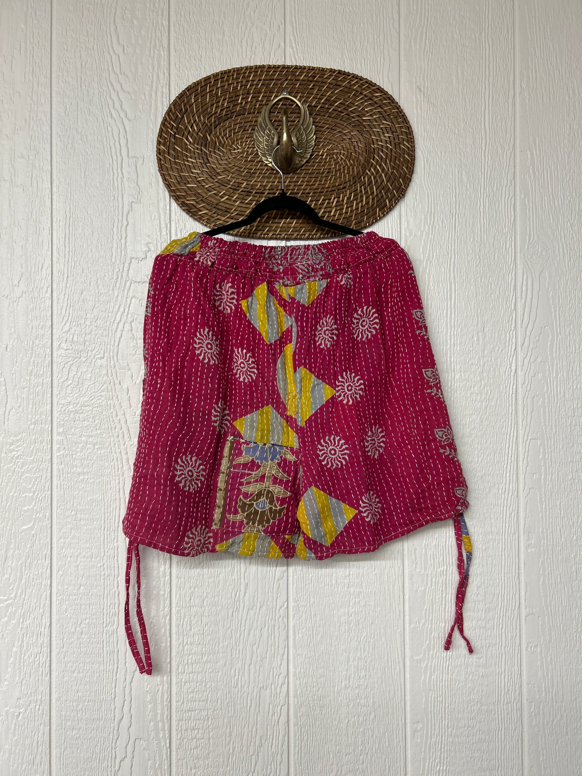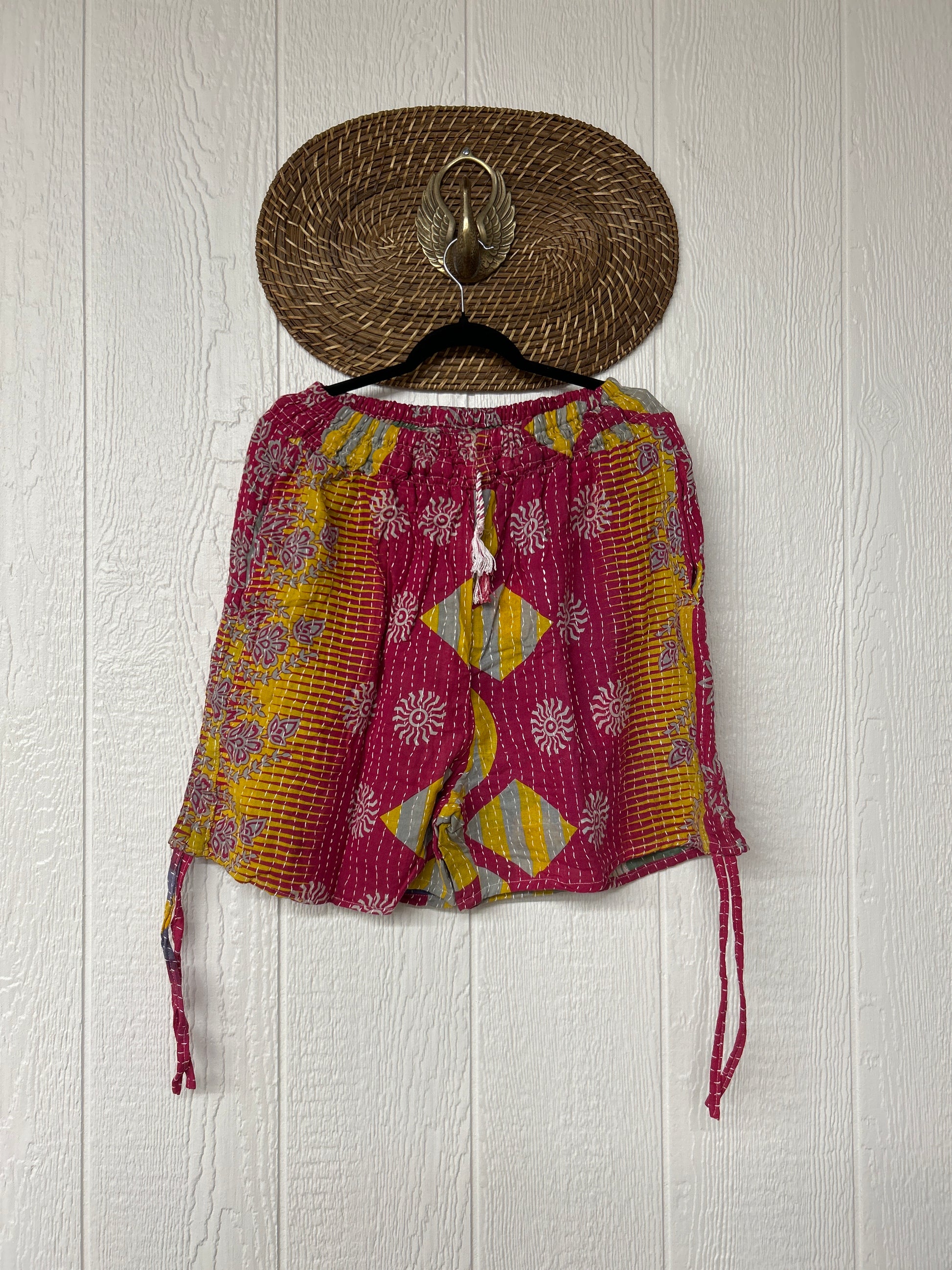 Crafted from our ultra lux vintage cotton Kantha stitched sari. Features interior pockets, a smocked waistband that is soft against the skin with an adjustable drawstring. This fully customizable piece also has a cinch drawstring on the outer leg so you can make the shorts longer or shorter. We are obsessed!