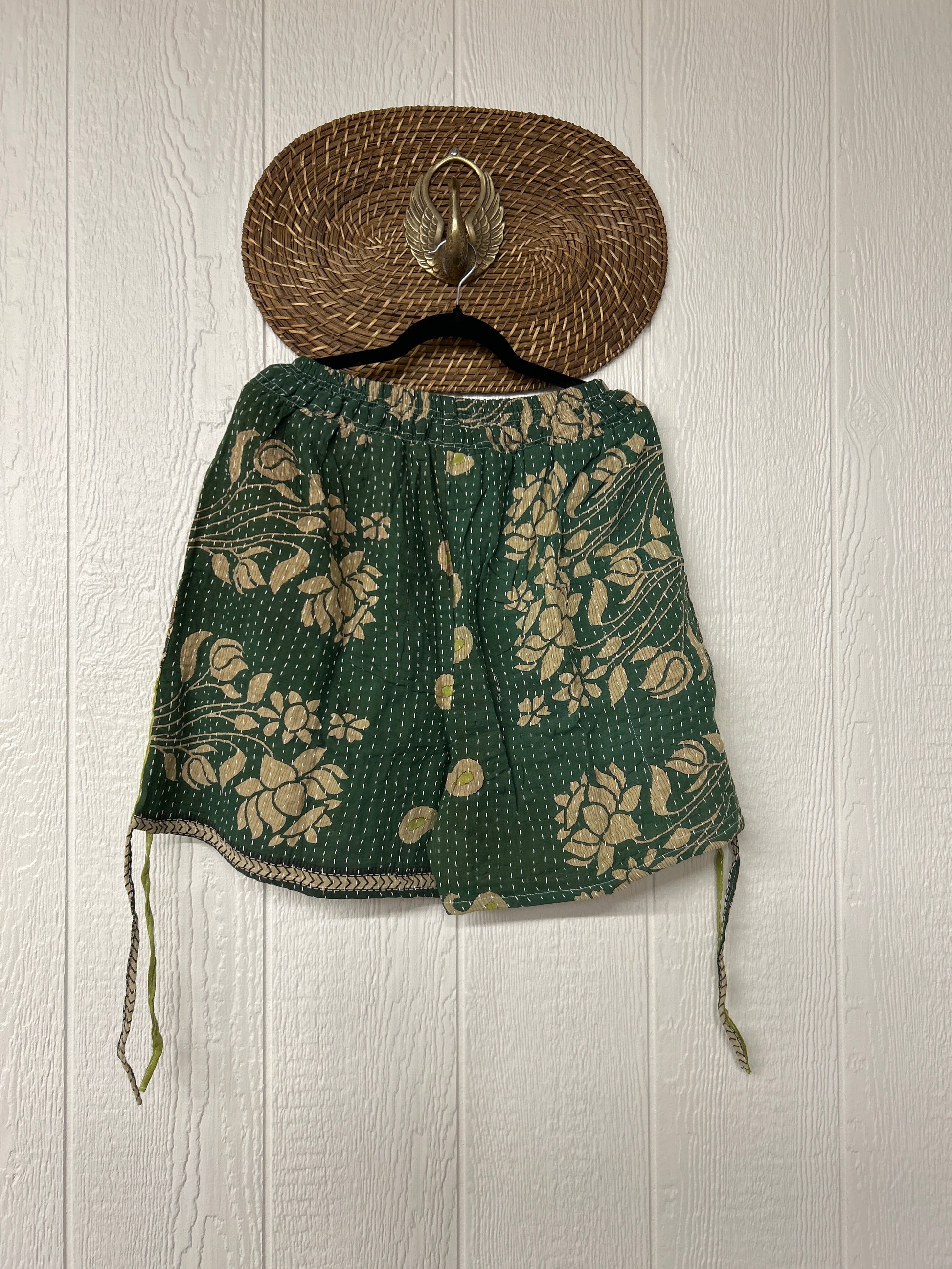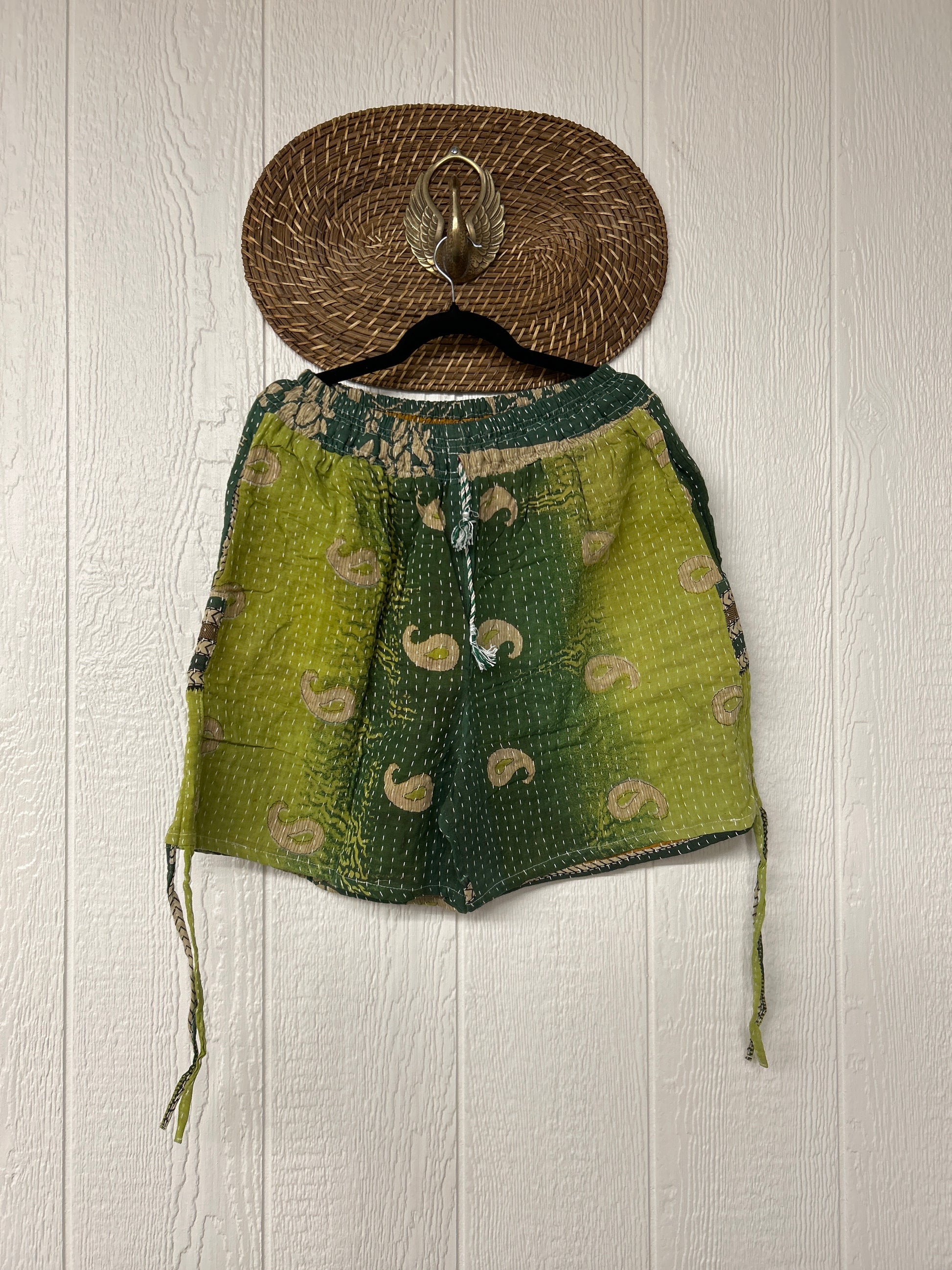 Crafted from our ultra lux vintage cotton Kantha stitched sari. Features interior pockets, a smocked waistband that is soft against the skin with an adjustable drawstring. This fully customizable piece also has a cinch drawstring on the outer leg so you can make the shorts longer or shorter. We are obsessed!