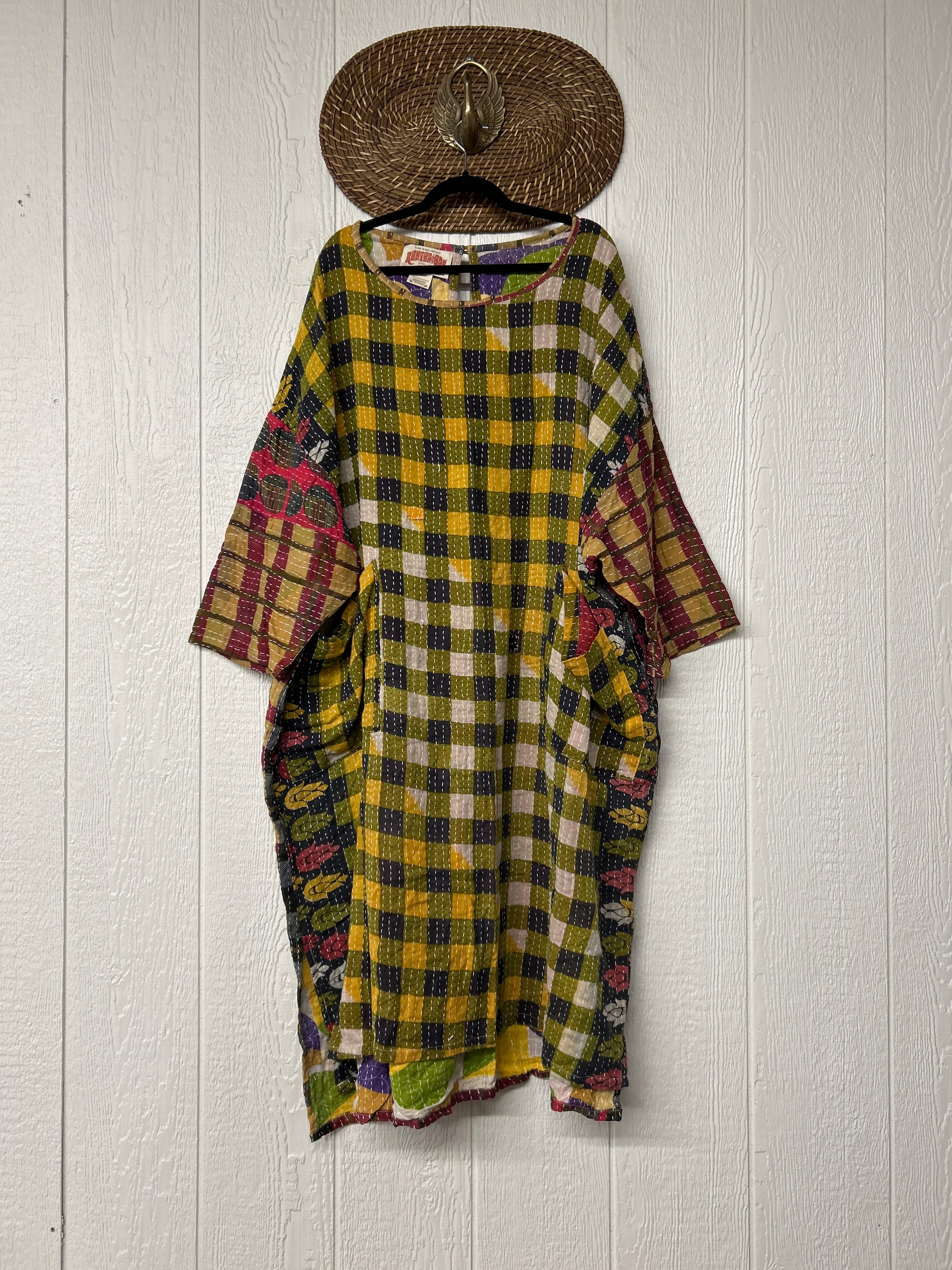Crafted from our ultra lux vintage cotton kantha stitched sari this tunic is based on our best selling dream line pullover as a maxi!