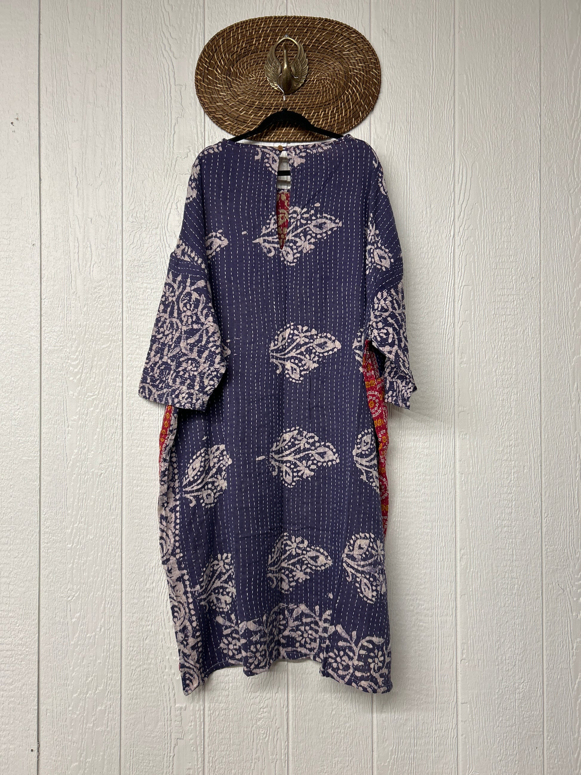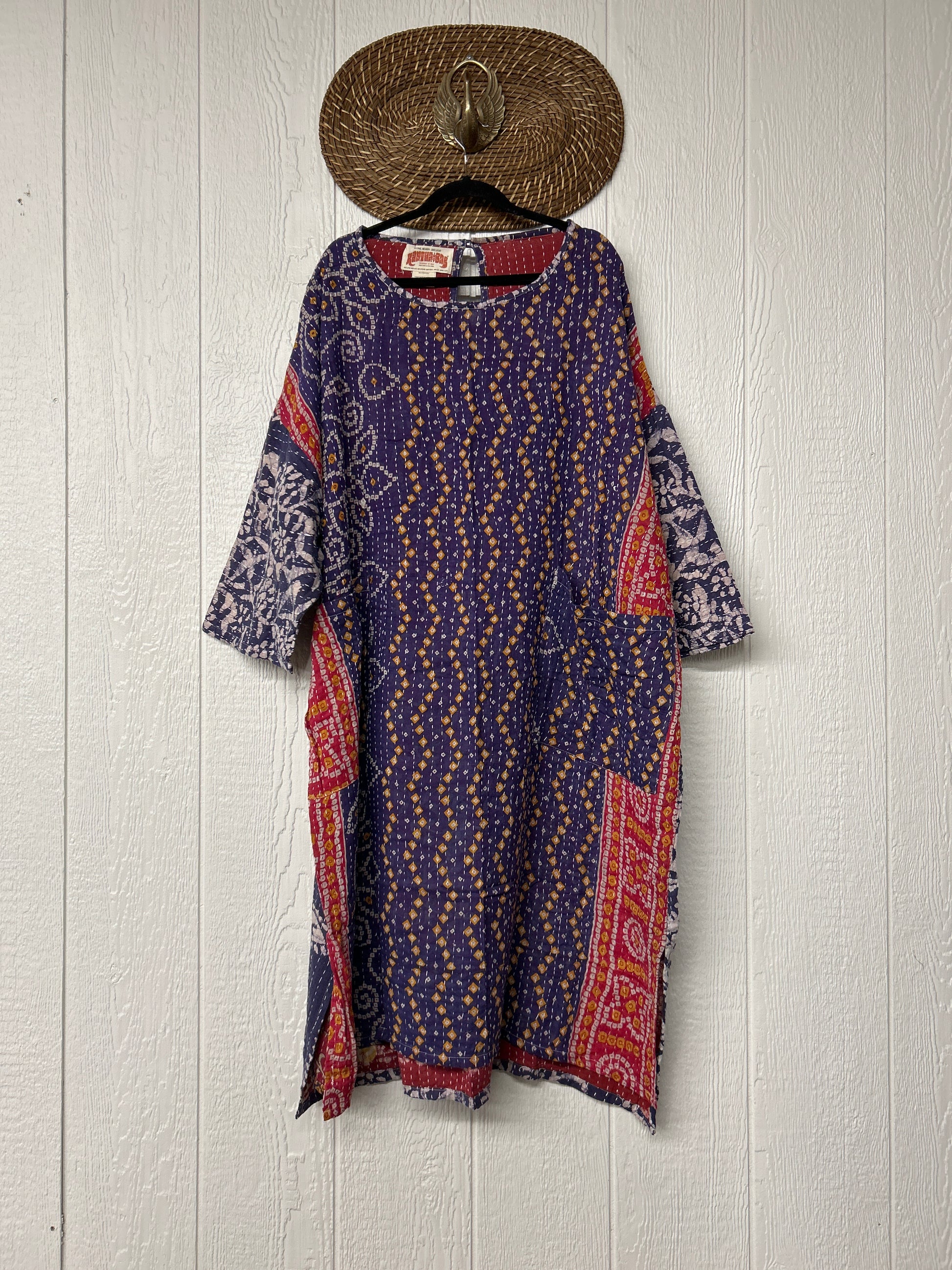Crafted from our ultra lux vintage cotton kantha stitched sari this tunic is based on our best selling dream line pullover as a maxi!