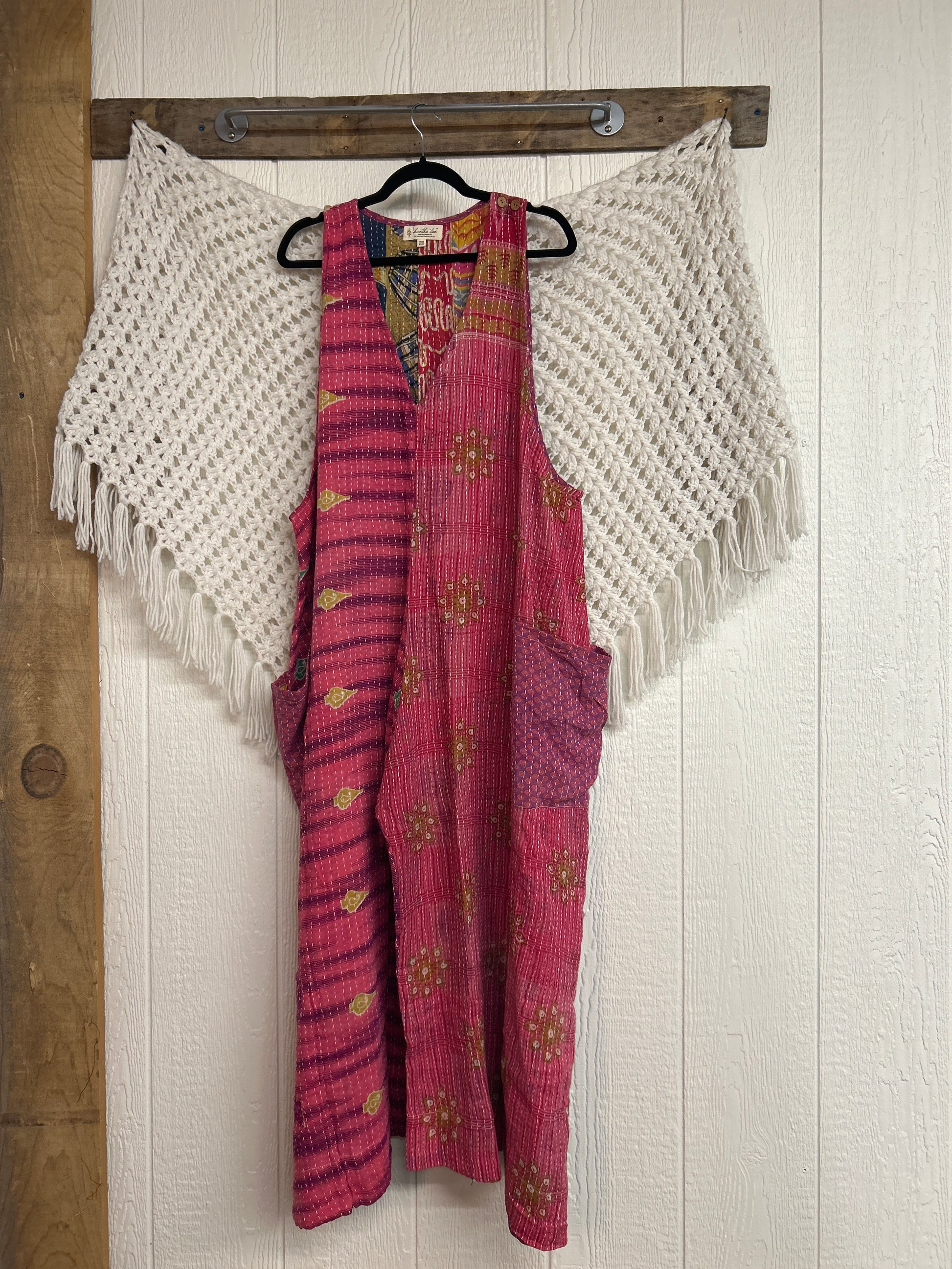 Our jumpsuit is made from our vintage kantha embroidered sari.