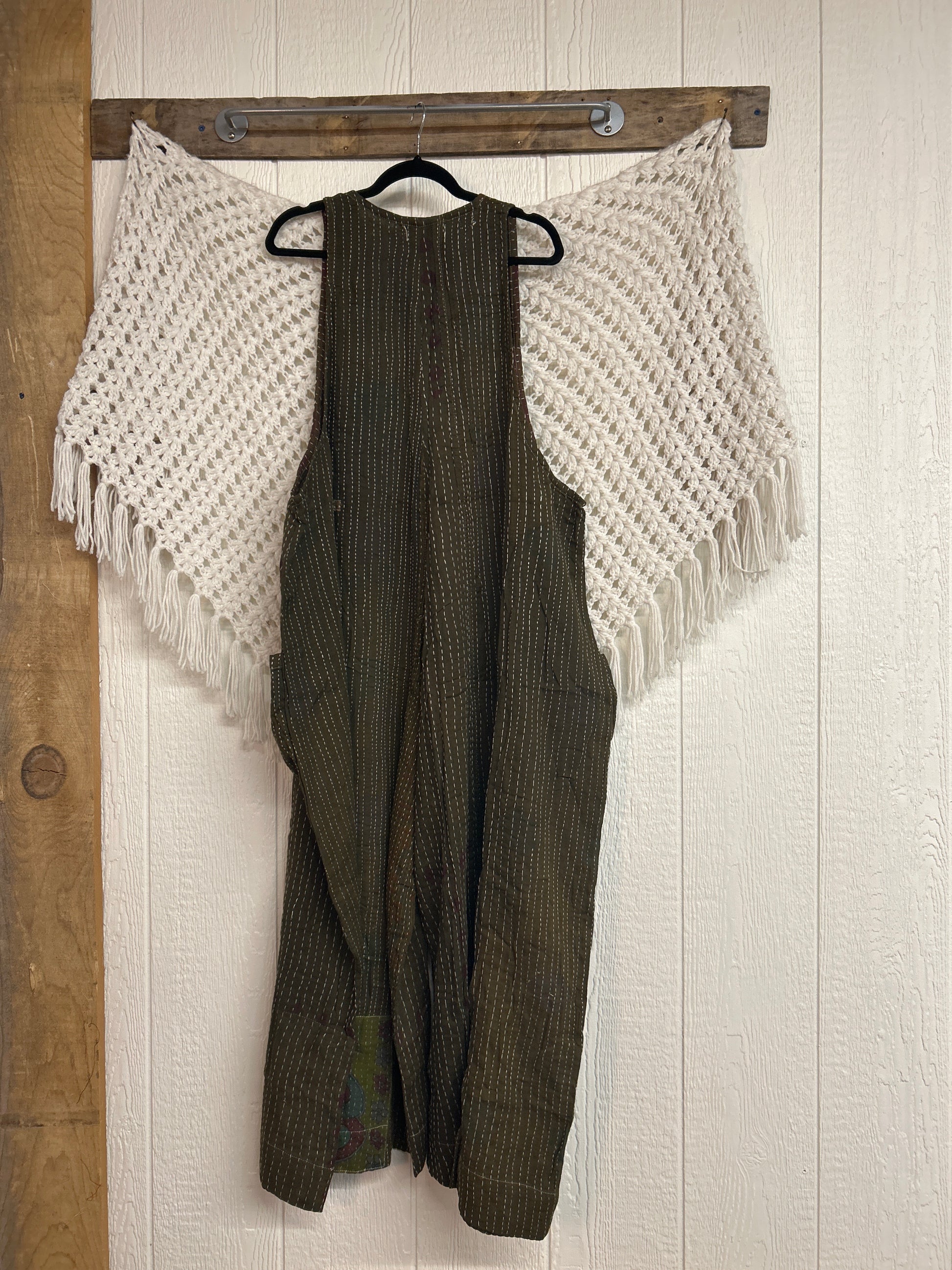 Our jumpsuit is made from our vintage kantha embroidered sari.