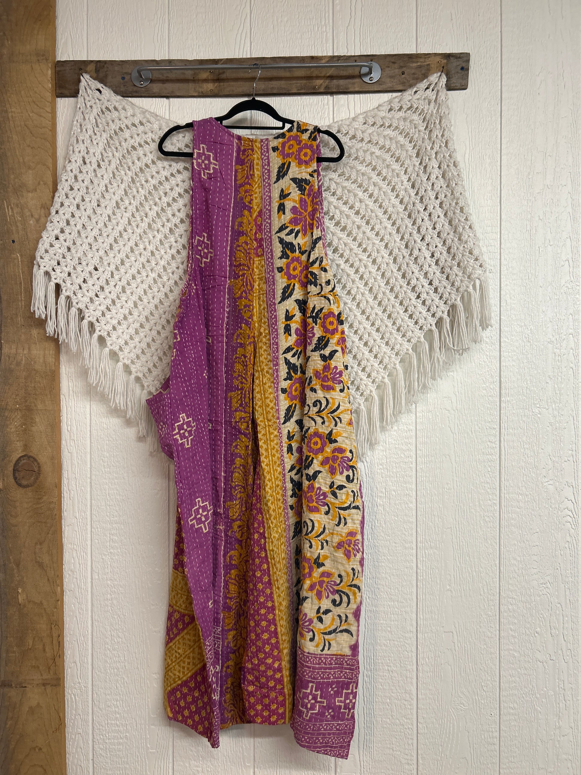 Our jumpsuit is made from our vintage kantha embroidered sari.