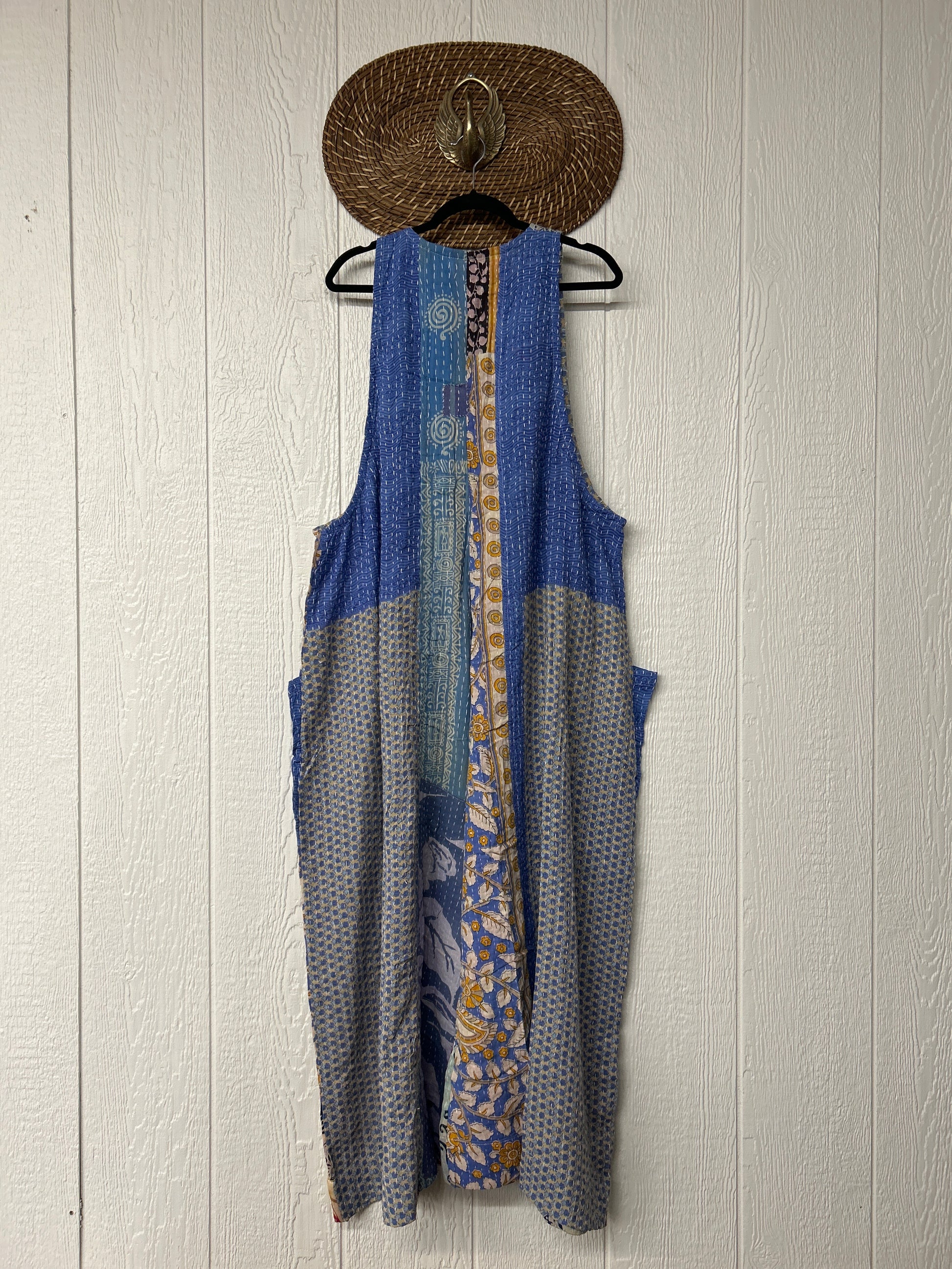 Our jumpsuit is made from our vintage kantha embroidered sari.