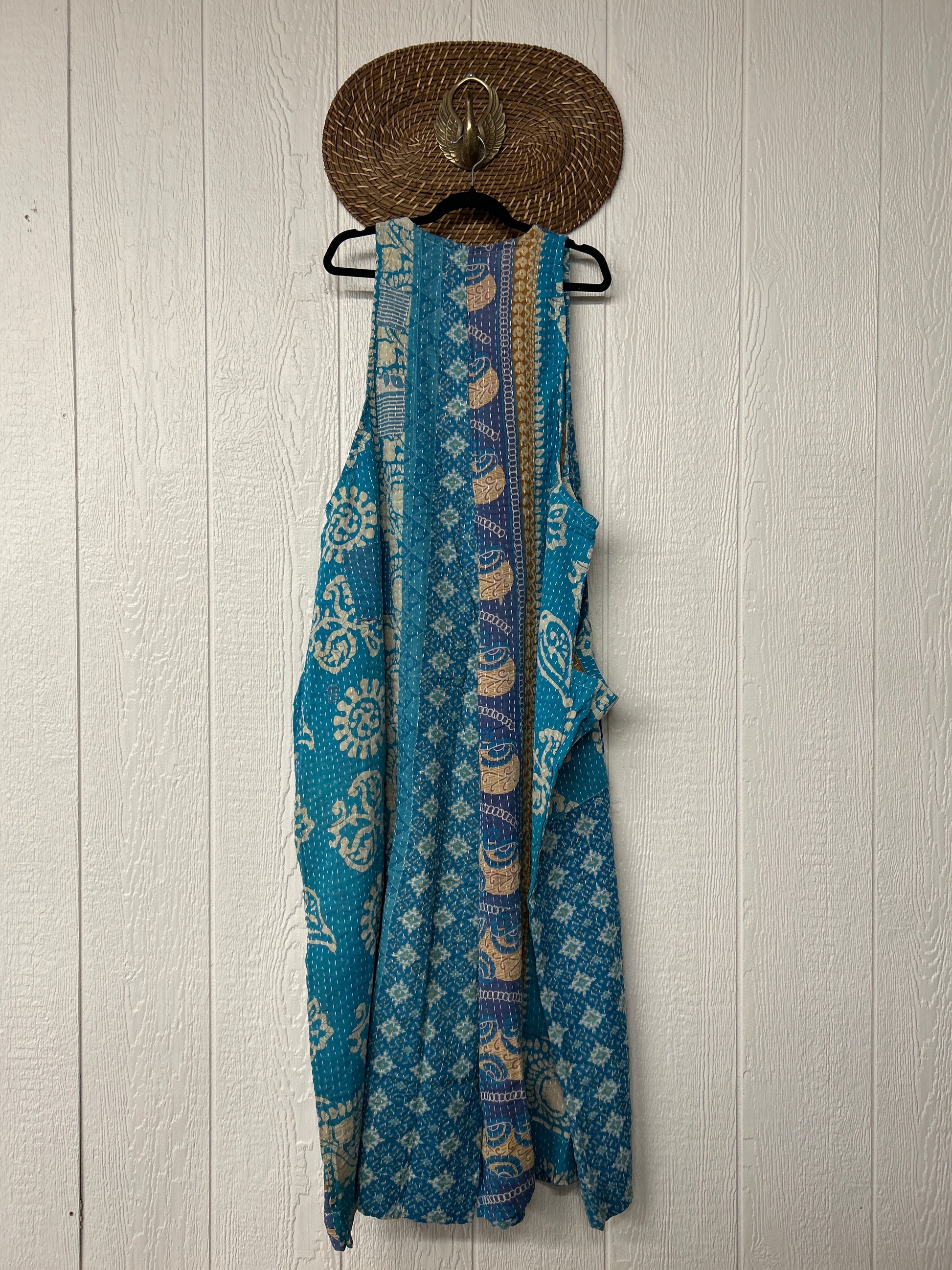 Our jumpsuit is made from our vintage kantha embroidered sari.