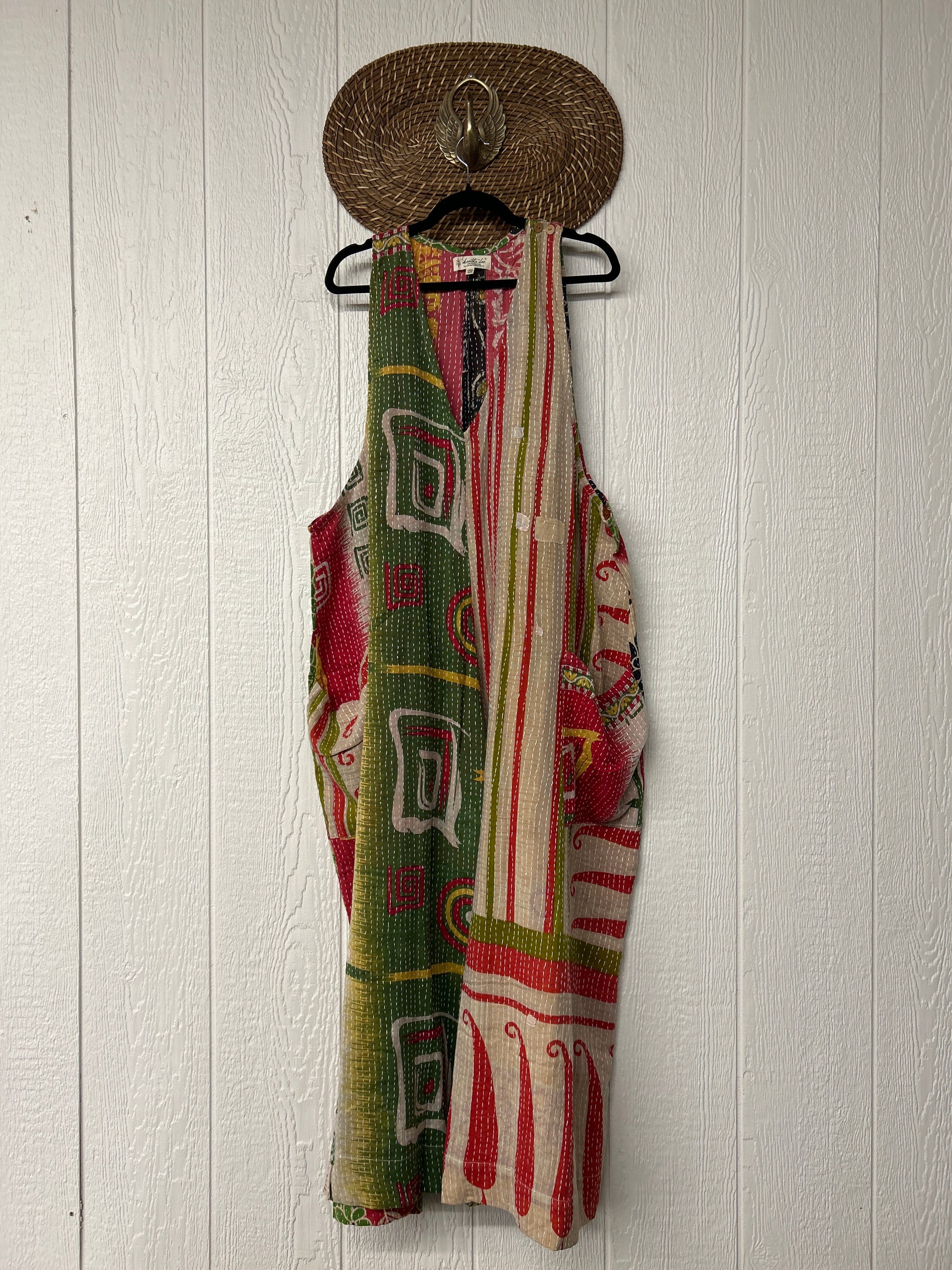 Our jumpsuit is made from our vintage kantha embroidered sari.
