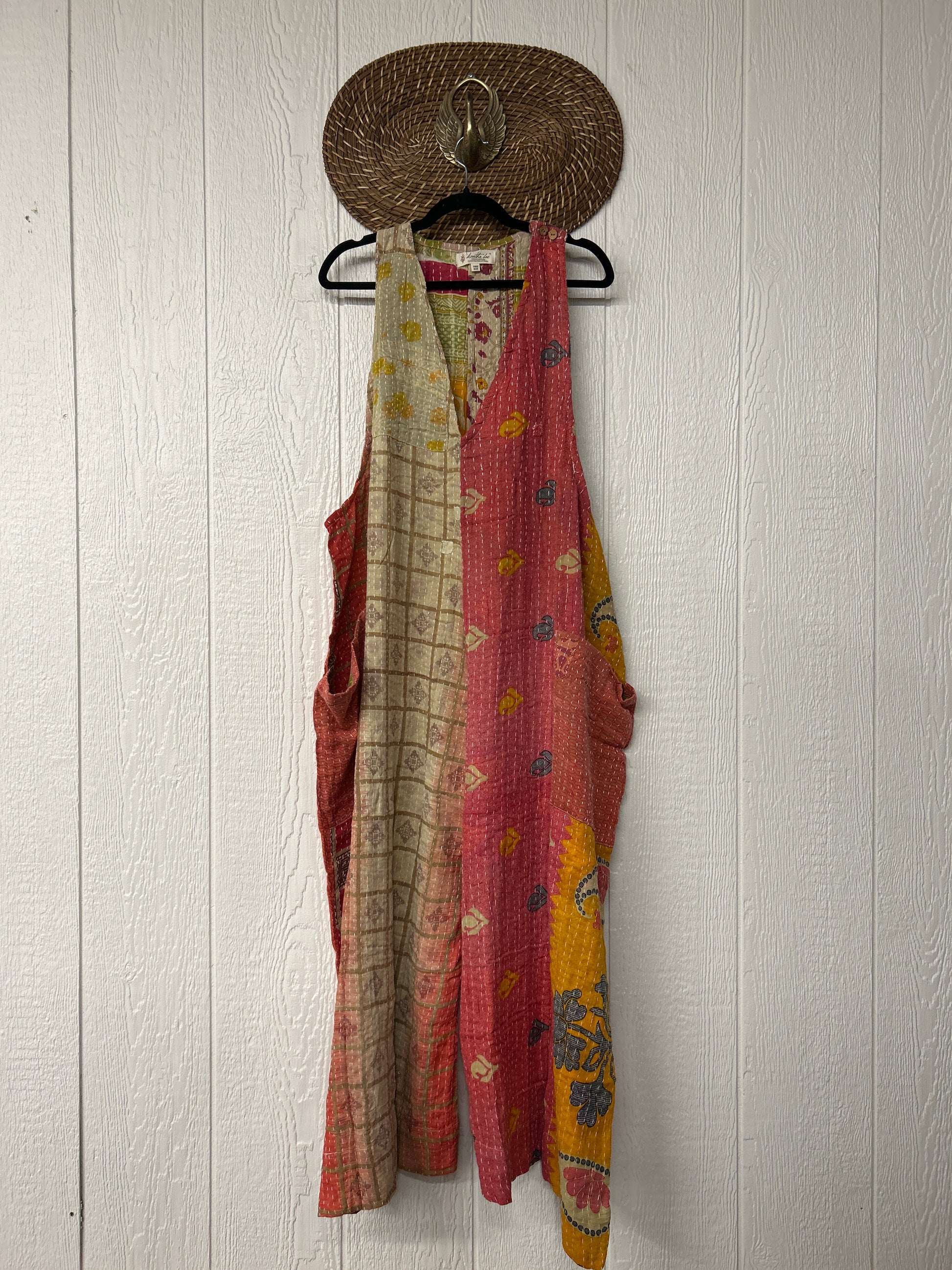 Our jumpsuit is made from our vintage kantha embroidered sari.