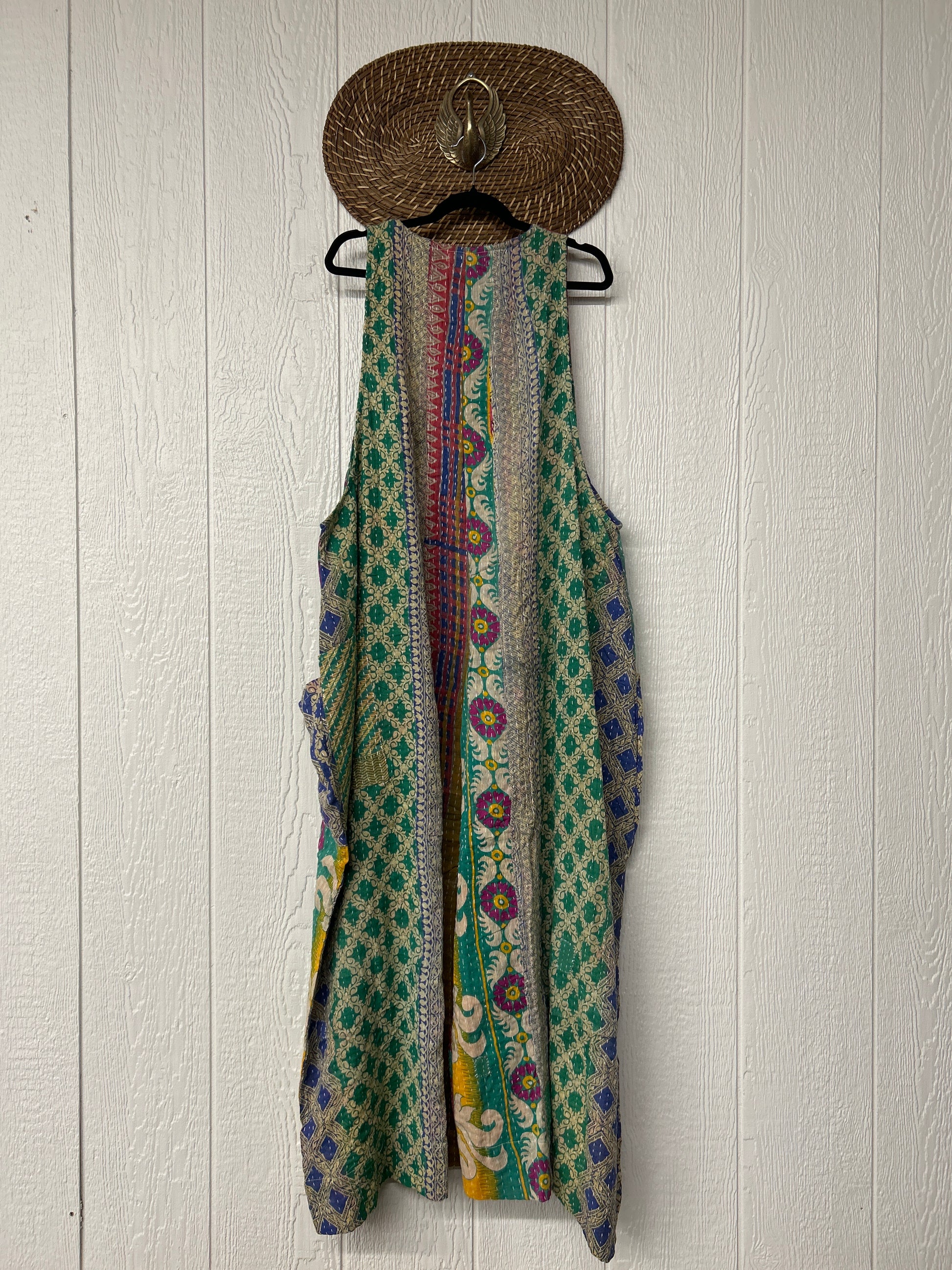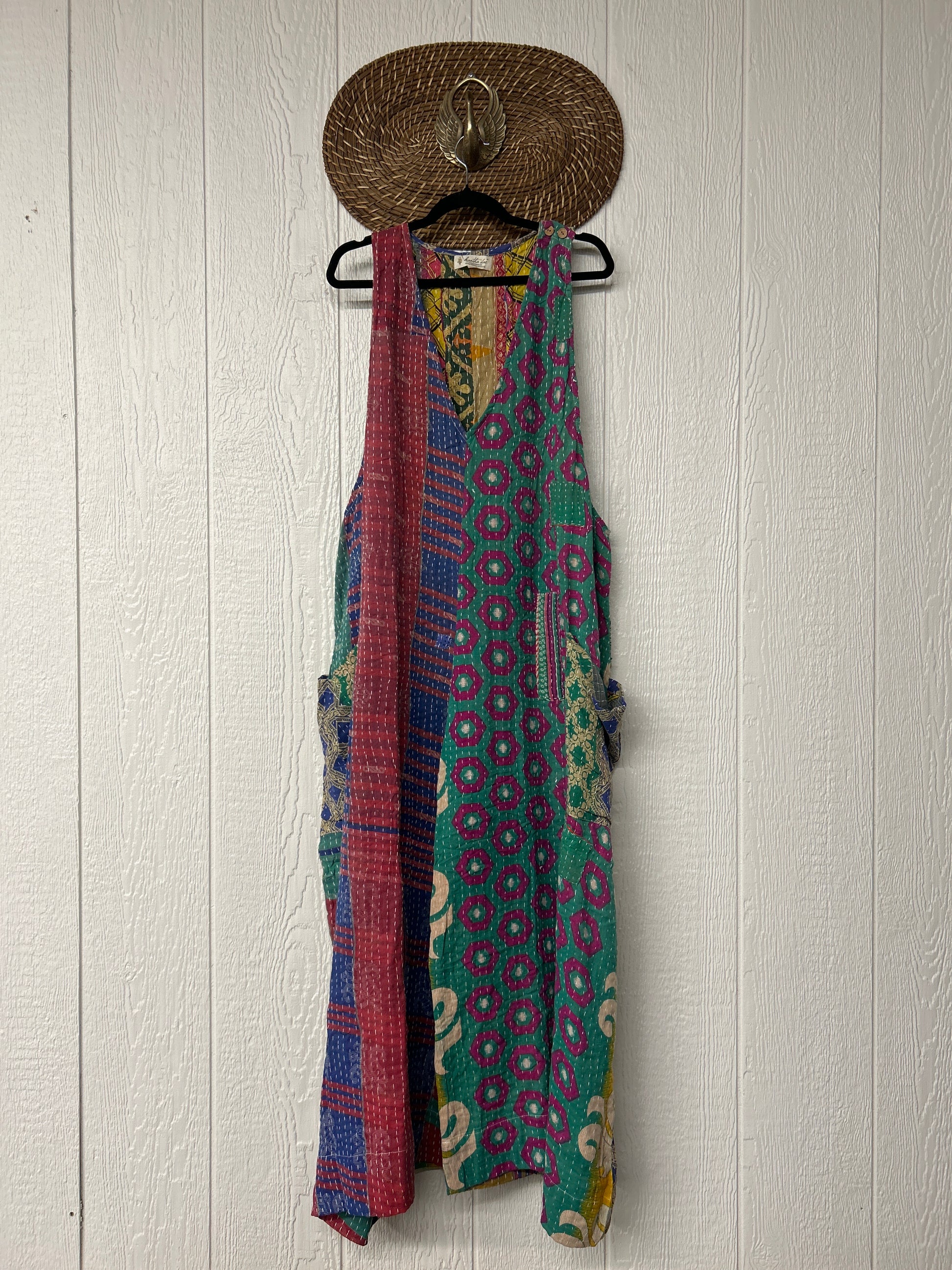 Our jumpsuit is made from our vintage kantha embroidered sari.