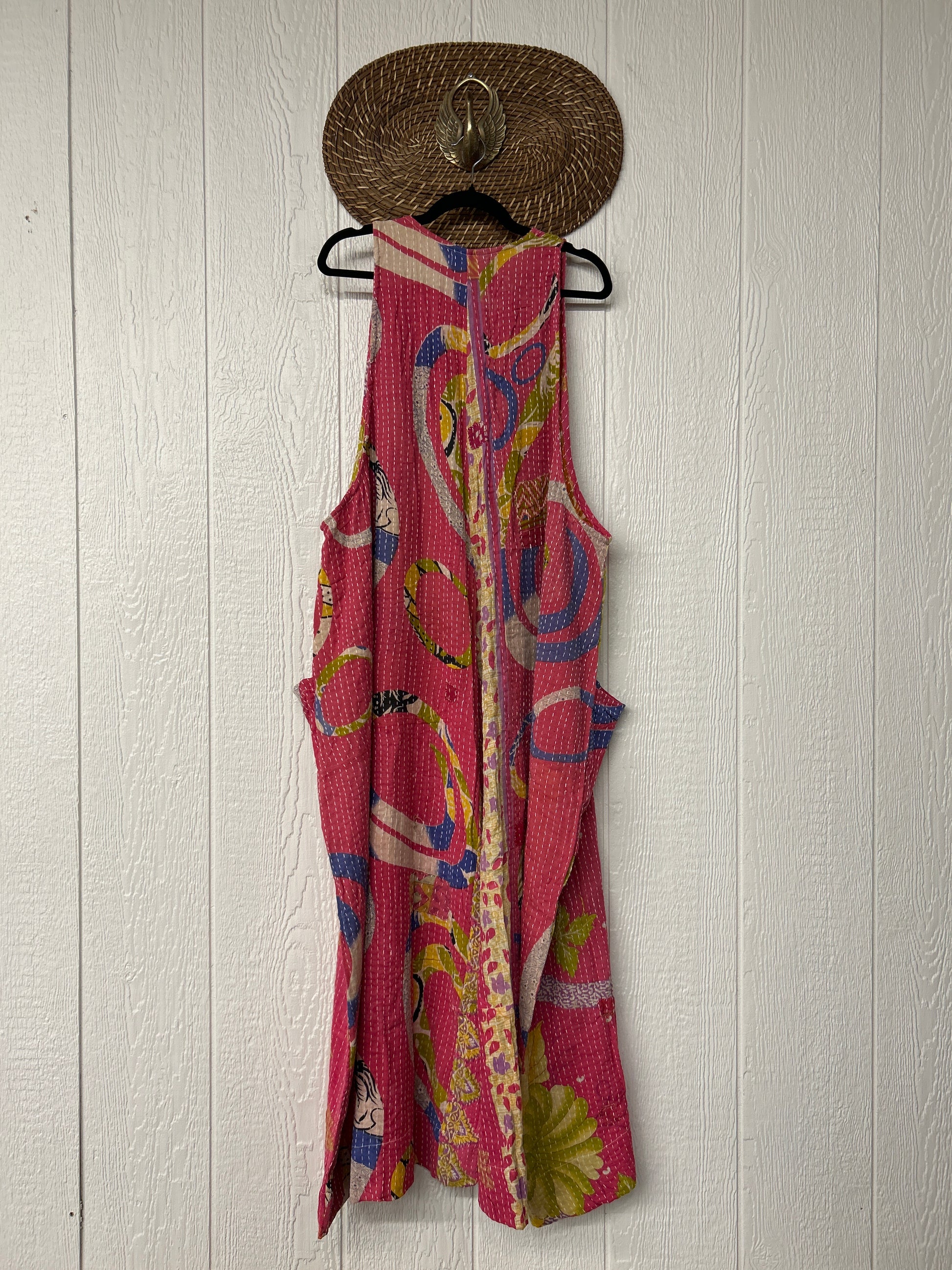 Our jumpsuit is made from our vintage kantha embroidered sari.