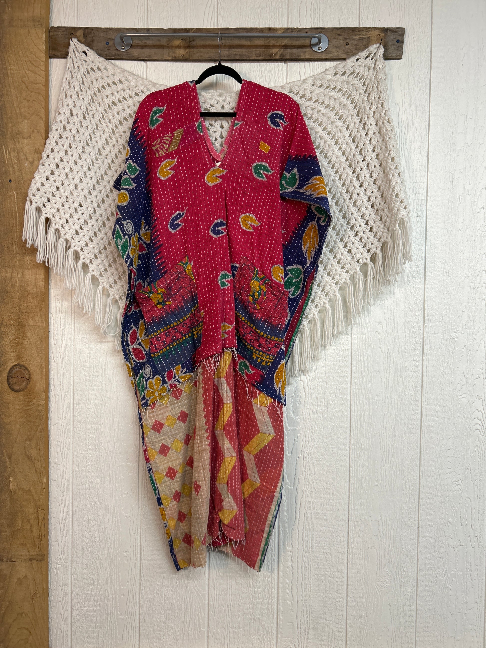 The Kantha Hi/Lo Tunic is a reversible, free-size, throw-on-and-go fashion must have! It features a gorgeous deep V-neck and long trailing back. Styles beautifully with your favorite vintage shorts, leggings, or bells.