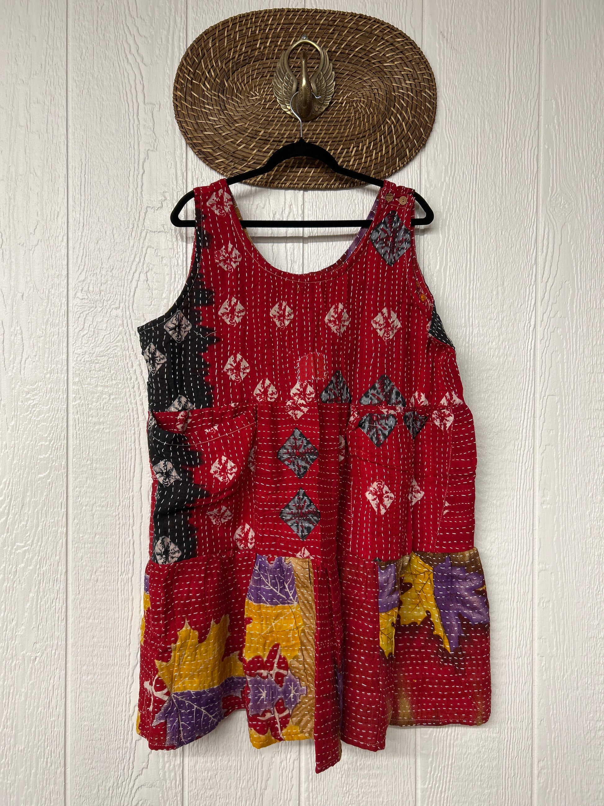 This sweet silhouette is crafted from our ultra lux Kantha stitched cotton sari. The Kantha Meadow Mini Dress features a button closure on the strap, deep interior front pockets, and a tiered bodice for extra twirling dimension!