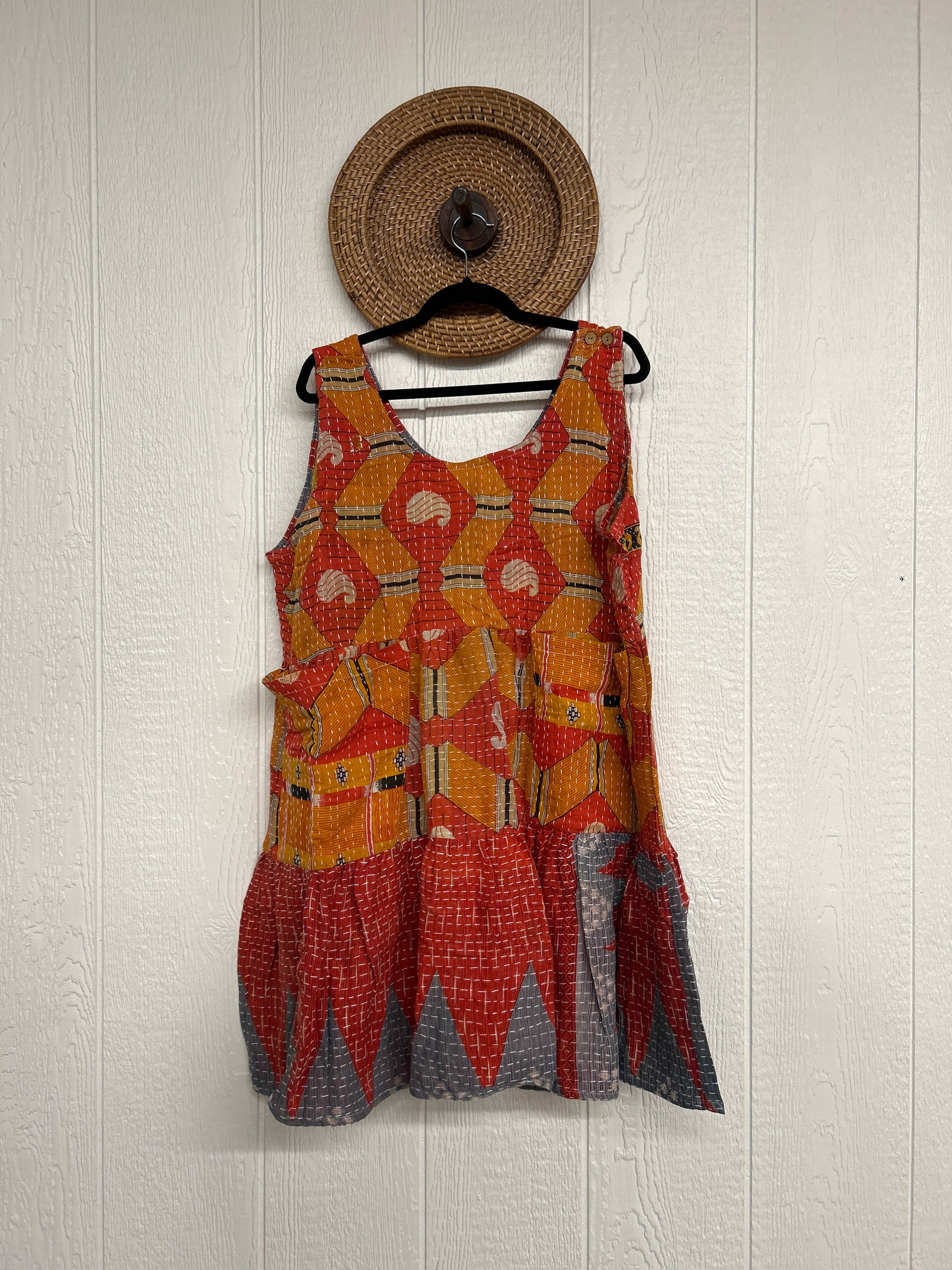 This sweet silhouette is crafted from our ultra lux Kantha stitched cotton sari. The Kantha Meadow Mini Dress features a button closure on the strap, deep interior front pockets, and a tiered bodice for extra twirling dimension!